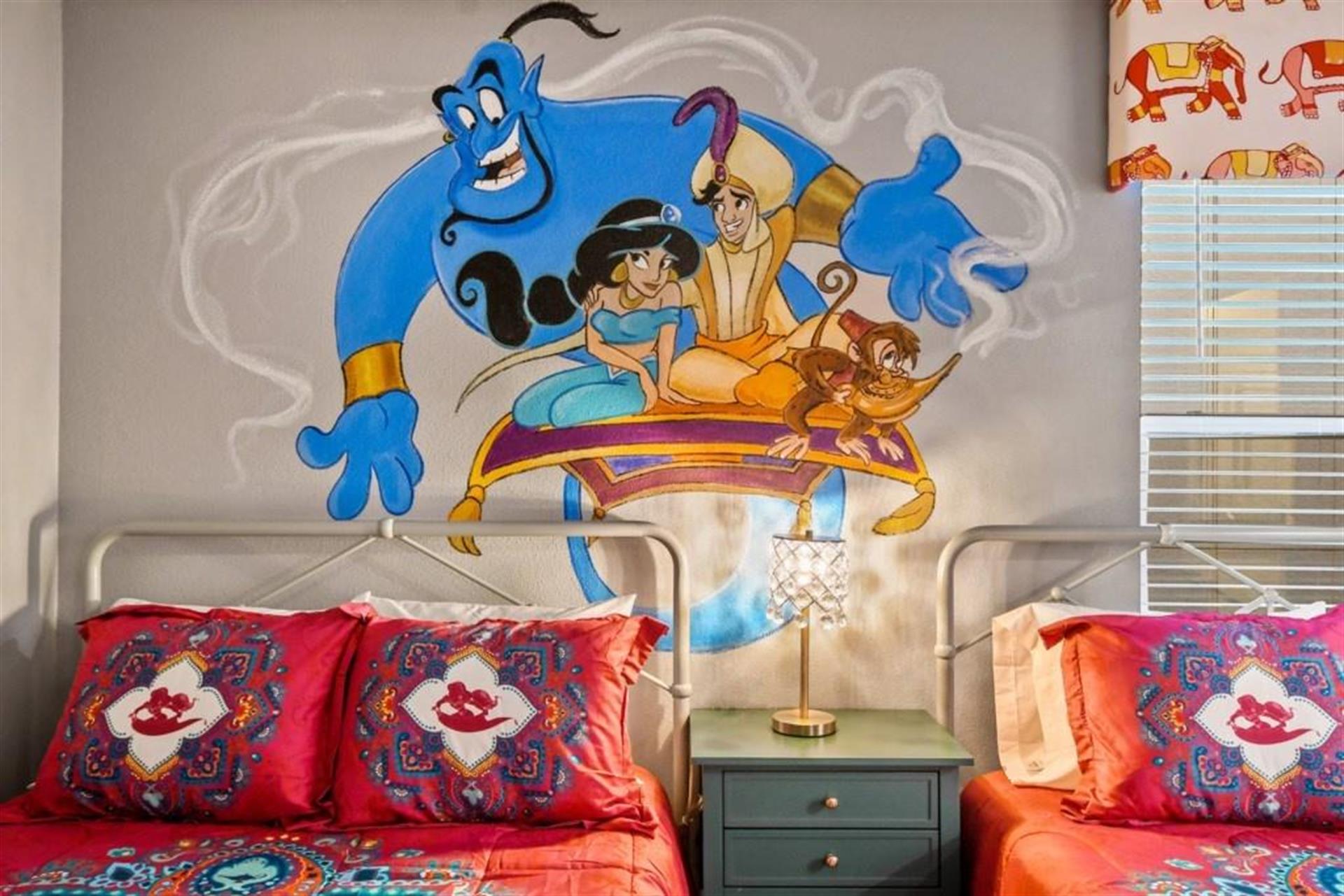 \- Guest Bedroom #5: Alladdin Bedroom 1 Twin & 1 Full size Bed, 48 "Flat