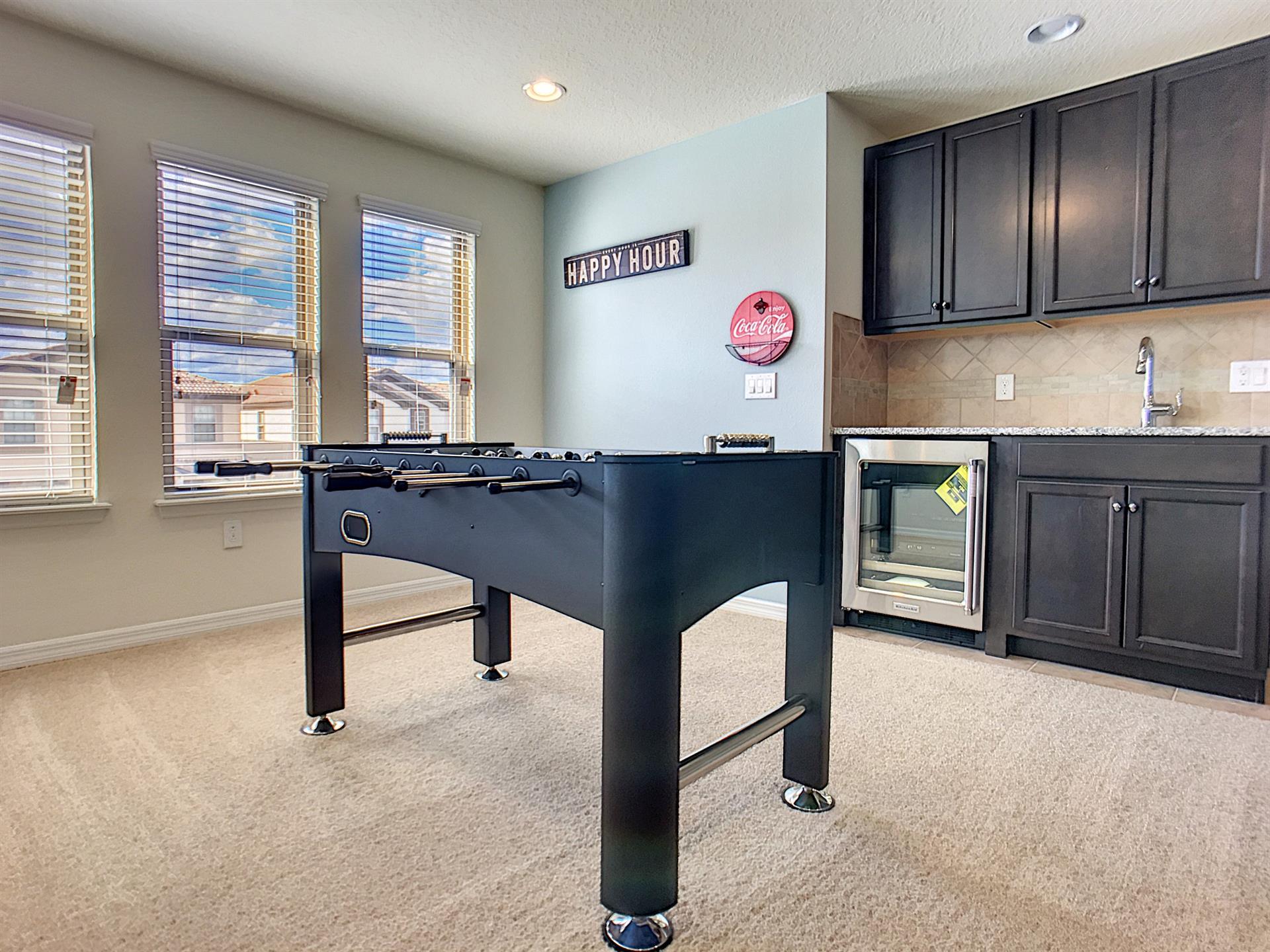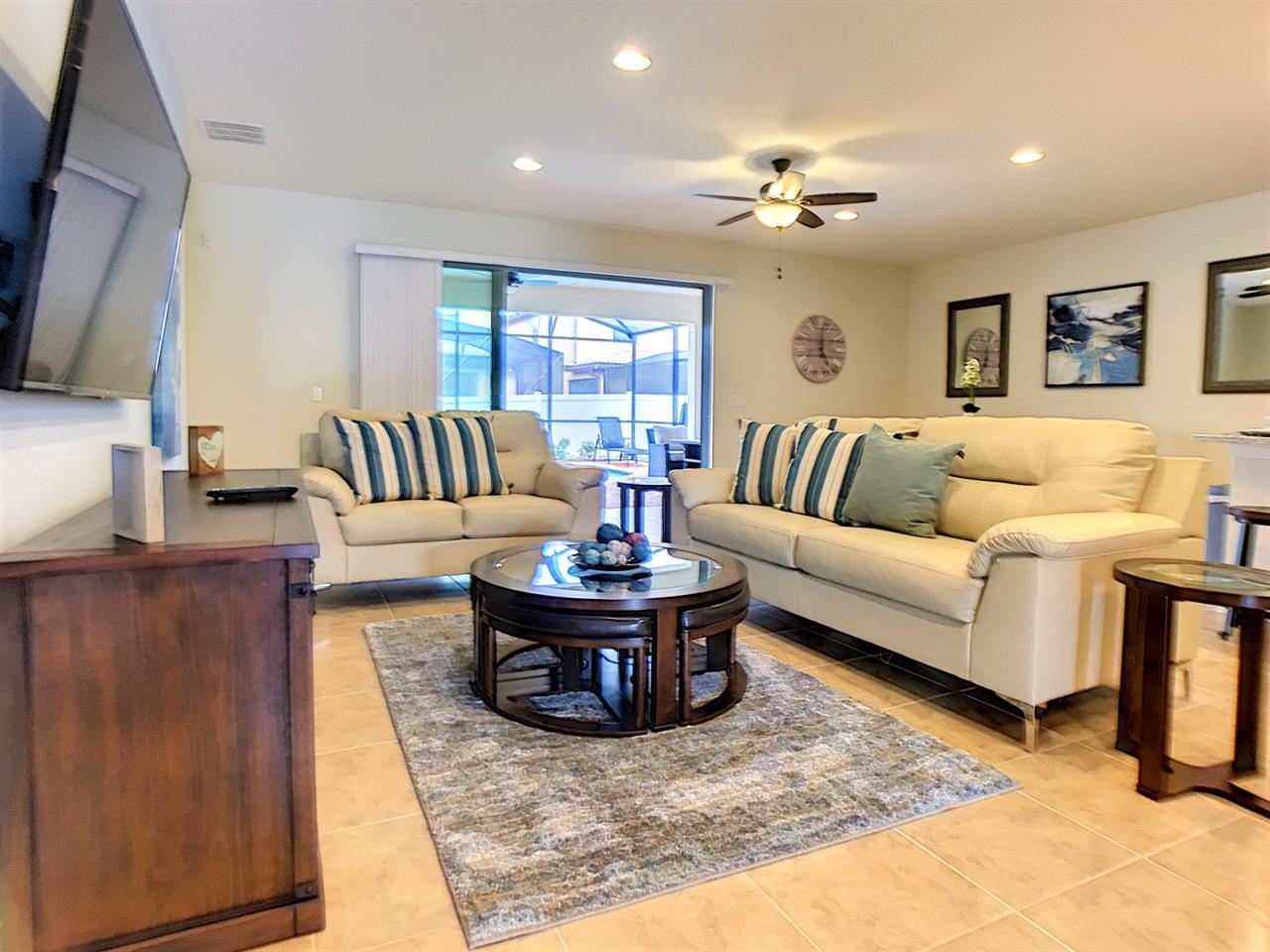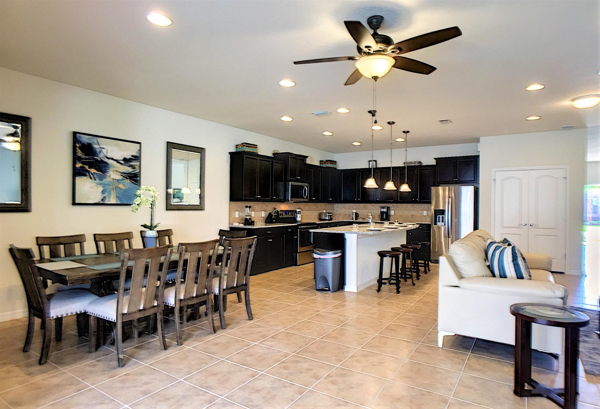 Lovely home, in great condition for a rental property. Of course there were some worn spots around this 9 bedroom home but overall in good condition. We found some ceiling pot lights burned out in the living room, a lamp or two in bedrooms that were broken and a cracked glass. The hot tub didn’t work for a few days upon arrival but eventually got fixed. This may sound like a lot of negatives but they are small things that did not ruin our vacation. The pool was in use daily, we were able to do laundry as needed and everyone had their own bedroom to go hide out in when not in family loving mode. The rooms were well sized and not tiny little spaces. The clubhouse across the road from the community entrance was a bonus. Lazy river ( we bought float rings as there aren’t many available) was a huge draw and everyone spent several hours in it. The pool and kids splash area were great as well. Loungers were plentiful during our stay so everyone could spread out and relax. The clubhouse also has a great fitness room and a game arcade that the kids can play in that costs nothing. They can just take a break from swimming and go play some arcade games. Drinks were pricey at the tiki bar and the mixed tropical ( daiquiri and colada) tasted awful-****** premade. There was ice cream for sale that the kids enjoyed. We never ate anything there as the menu was very limited and premade/frozen stuff. A Walmart supercenter was only a few miles away as well as a Publix grocery store so we stocked up on a lot of food items to enjoy meals at the home. The pots and pans are at a minimum so cooking big meals can be challenging but there are plenty of dish ware, glassware and silverware- thankfully also a working dishwasher. You get a starter pack of dishwasher det., laundry det, and paper products ( toilet paper, paper towels) so you will want to bring some if you have enough room to pack it or buy upon arrival. I luckily read the reviews and packed a bag of detergent pods and