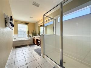 large en-suite including corner tub and large walk-in shower. Master bedroom