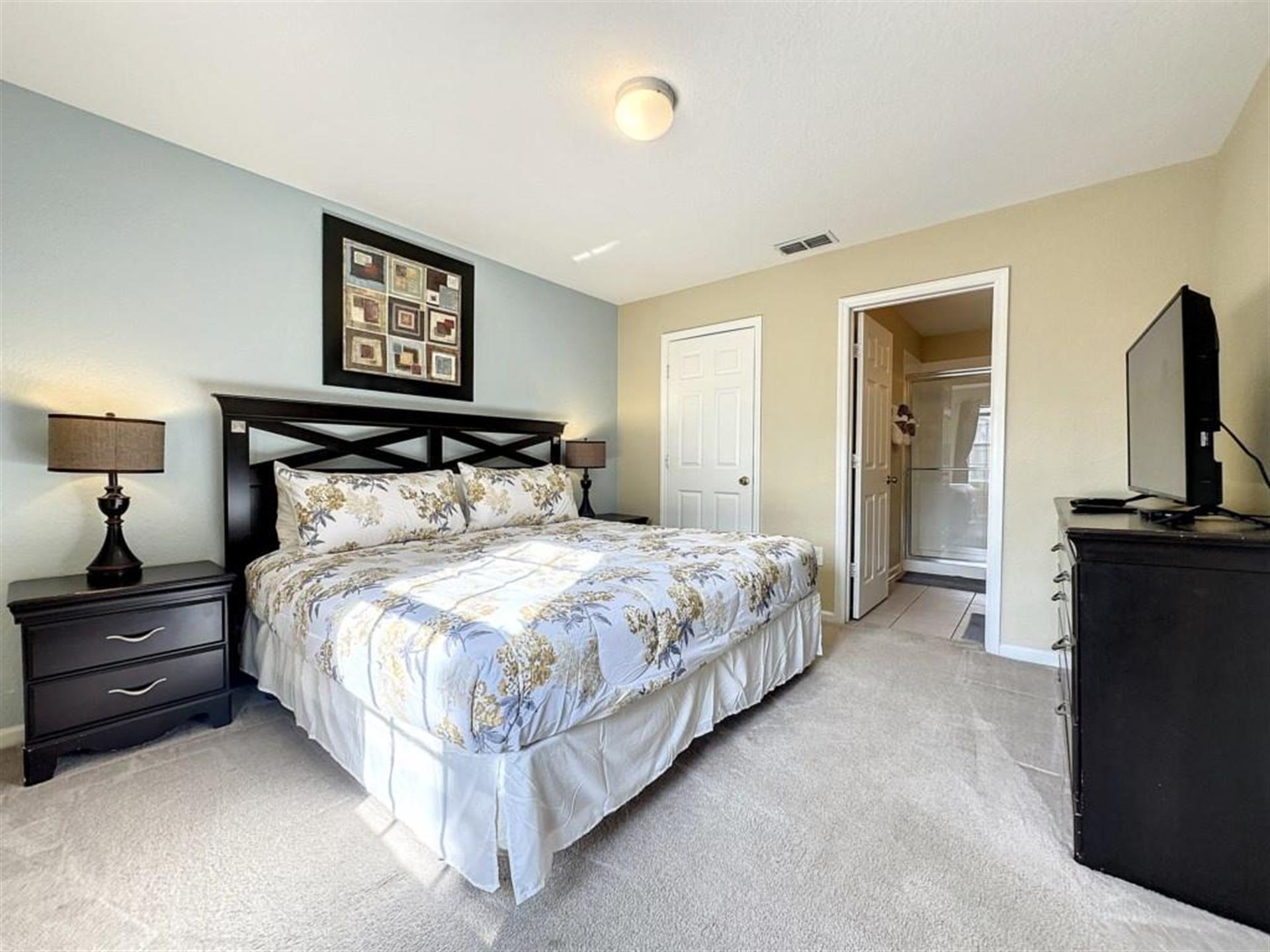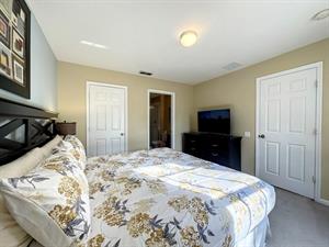 The first master bedroom features a large king bed with walk in wardrobe and