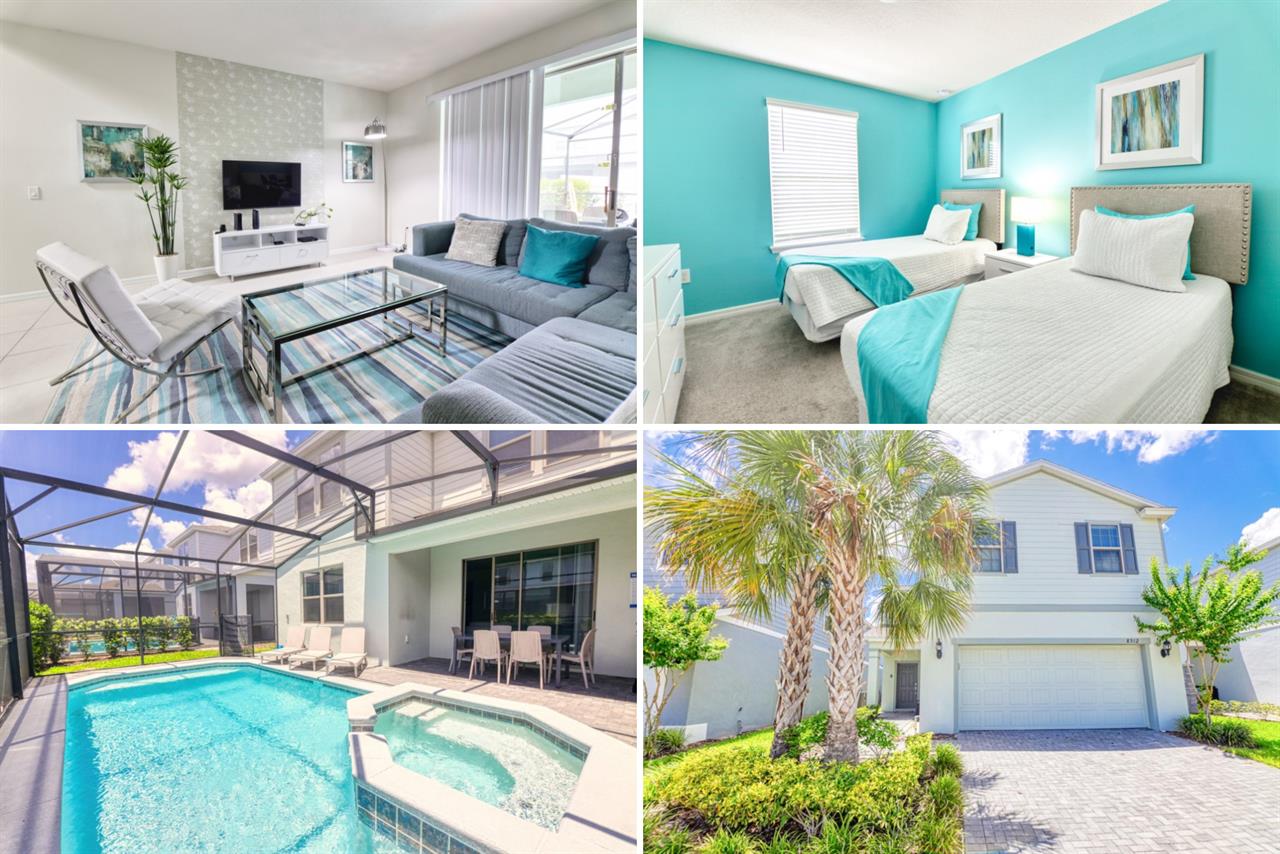 Located in Windsor at Westside, this 5-bedroom, 4-bathroom luxury vacation home is sure to impress all who stay here! The living room is large and spacious. It has a large L-shaped sofa and large flat screen TV mounted to the wall—perfect for watching all your favorite Disney movies on. Directly behind the living room area is the kitchen. It has dark cabinet, granite countertops, and stainless-steel appliances. It also comes with all the pots, pans, utensils, and small kitchen gadgets that you would need to put together tasty home-cooked meals. When it’s time to eat, you can do so at either the breakfast bar or at the dining table, which seats between 6 people comfortably. If you’re looking for fun things to do here, you have a couple of awesome options. Firstly, there is a games room in the converted garage. Here, you’ll find an air hockey table and a pool table. If you want some outdoor entertainment, head to screened-in pool area at the back. Here, you’ll find a large, refreshing pool and spa. For those who want to work on their tan, there are sunbeds dotted around the pool. And for those who want to enjoy the Florida weather, but in the shade, there is a lanai with some outdoor seating underneath it. There are five bedrooms. The first bedroom has a queen-sized bed. The second bedroom has a king-sized bed. The third bedroom has a king-sized bed. The fourth bedroom, which is themed to Disney’s Mickey Mouse, has two single/twin beds. And the fifth bedroom also has two single/twin beds. All bedrooms have their own TV. This property also comes with free Wi-Fi Internet access and in-unit laundry facilities.