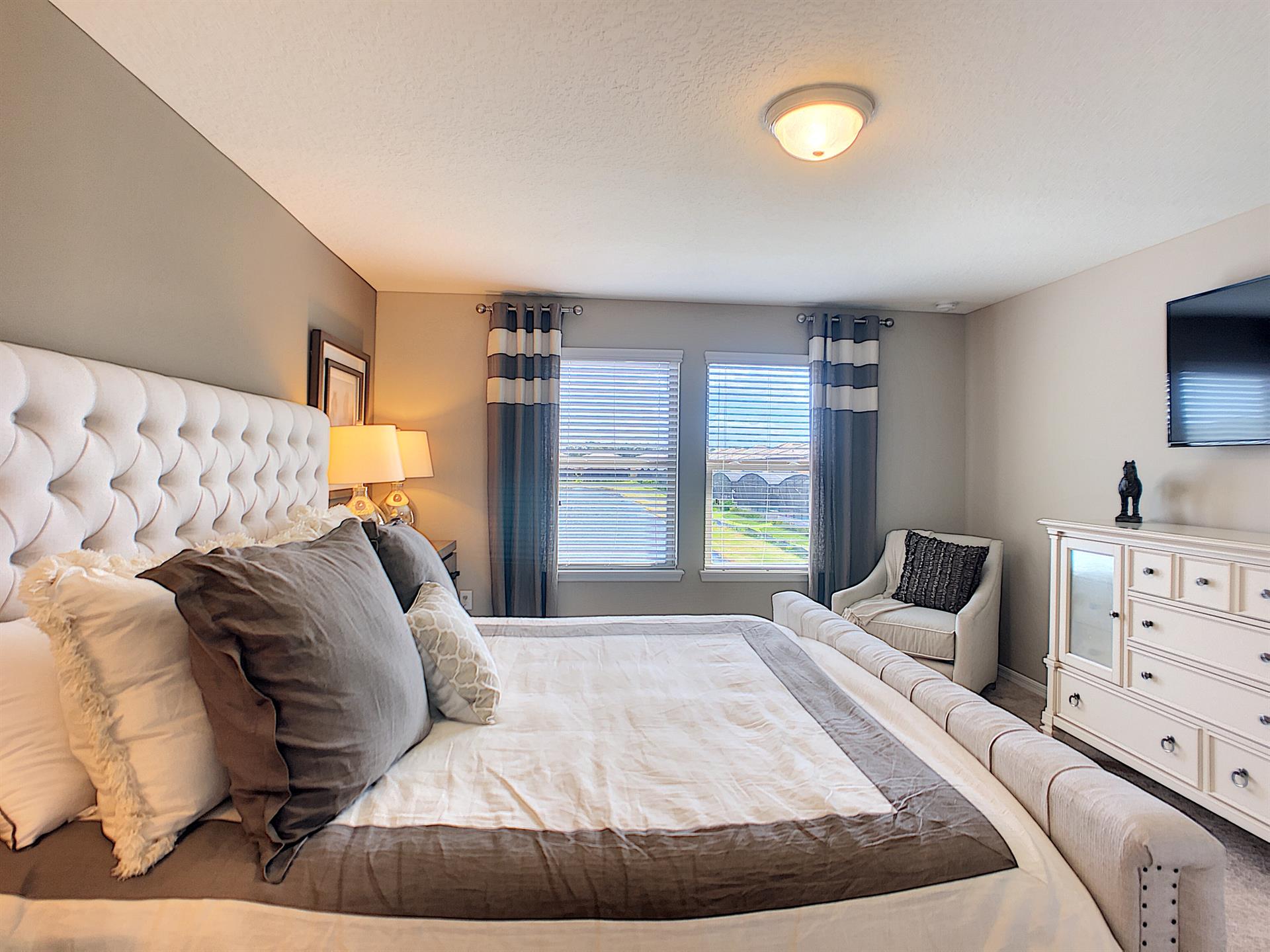 When staying in this house, you have access to al the resort amenities! Windsor at Westside is located in the Kissimmee area with easy access to Orlando’s theme parks, dining, and shopping. Just 30 miles from Orlando international airport, Windsor at Westside features resort amenities such as a 5,000 sq. ft clubhouse, huge pool with slide and tiki bar. You will also find a fitness center, Volleyball court, sundry shop and video arcade.