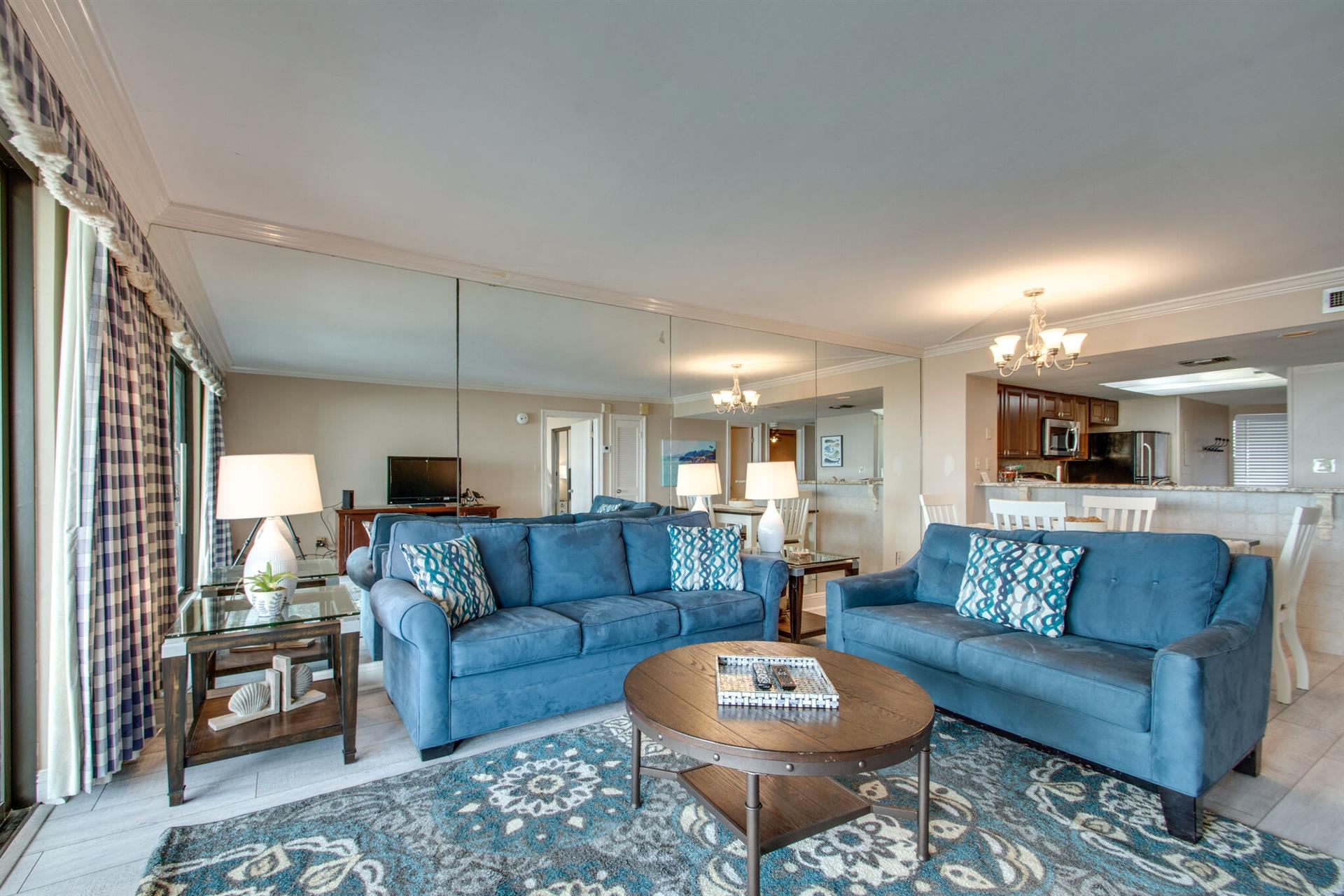 Large 2 Bedroom 2 Bath corner unit faces east on the 8th floor providing you with everything you need! Updated Kitchen with granite countertops is perfect for cooking! The living room and primary bedroom both have amazing views of the gulf! The primary bedroom has a huge king sized bed and access to the balcony. Open those drapes and lie in bed and enjoy the morning sunlight and awesome views all while sipping your morning coffee. The master also has its own bath. The second bedroom has a queen bed and a guest bath. The den has a sofa sleeper as well. The unit sleeps a total of 6!