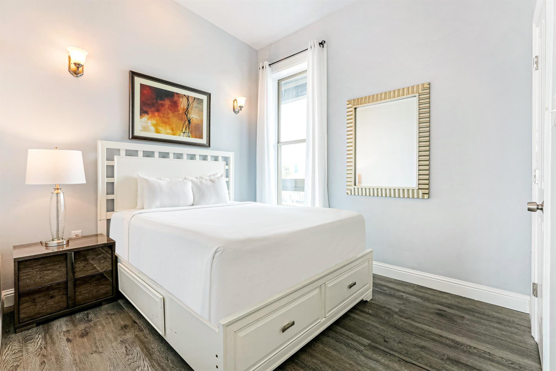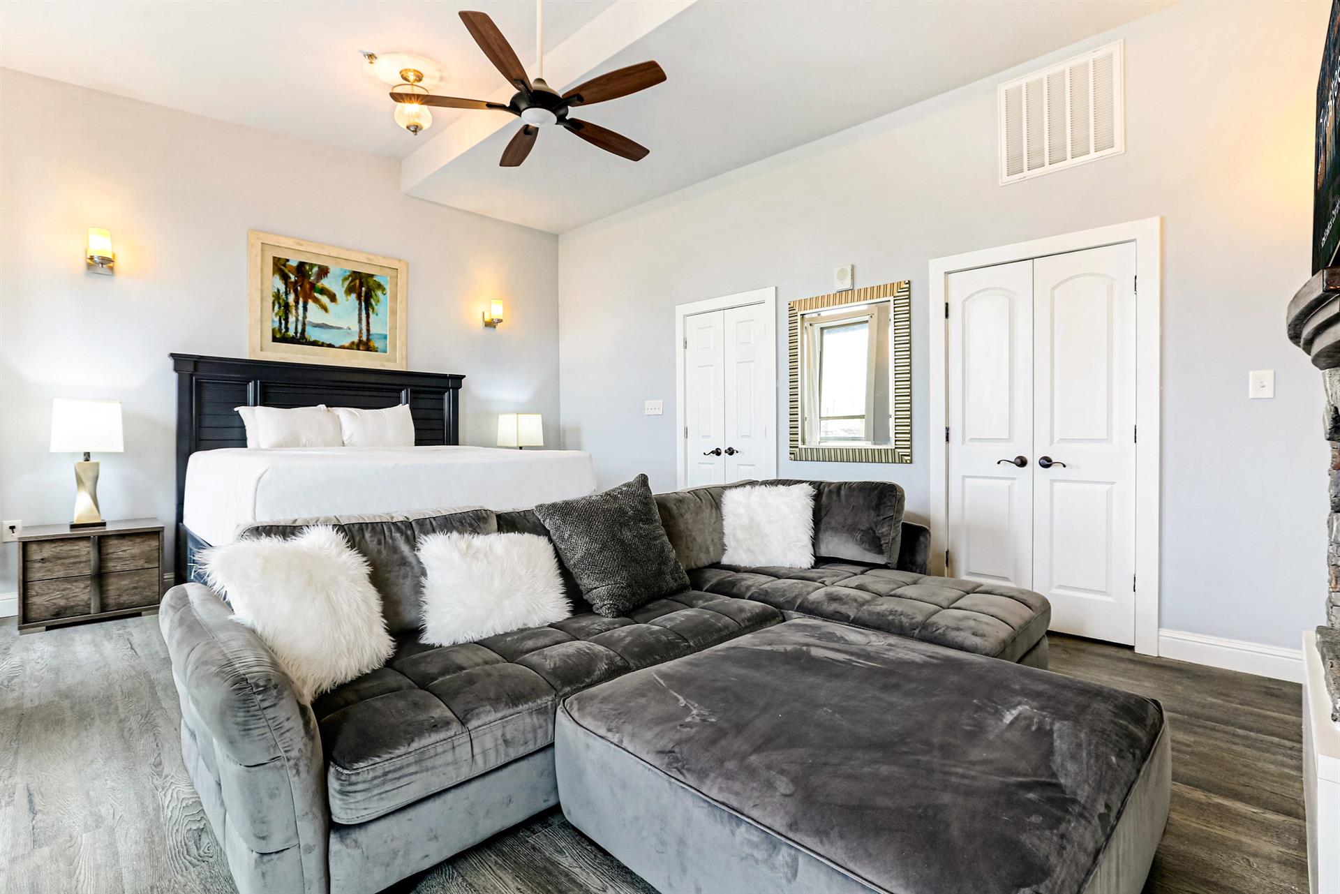 • Master bedroom features a King bed and a private bedroom with a Jacuzzi (hot tub) and standing shower