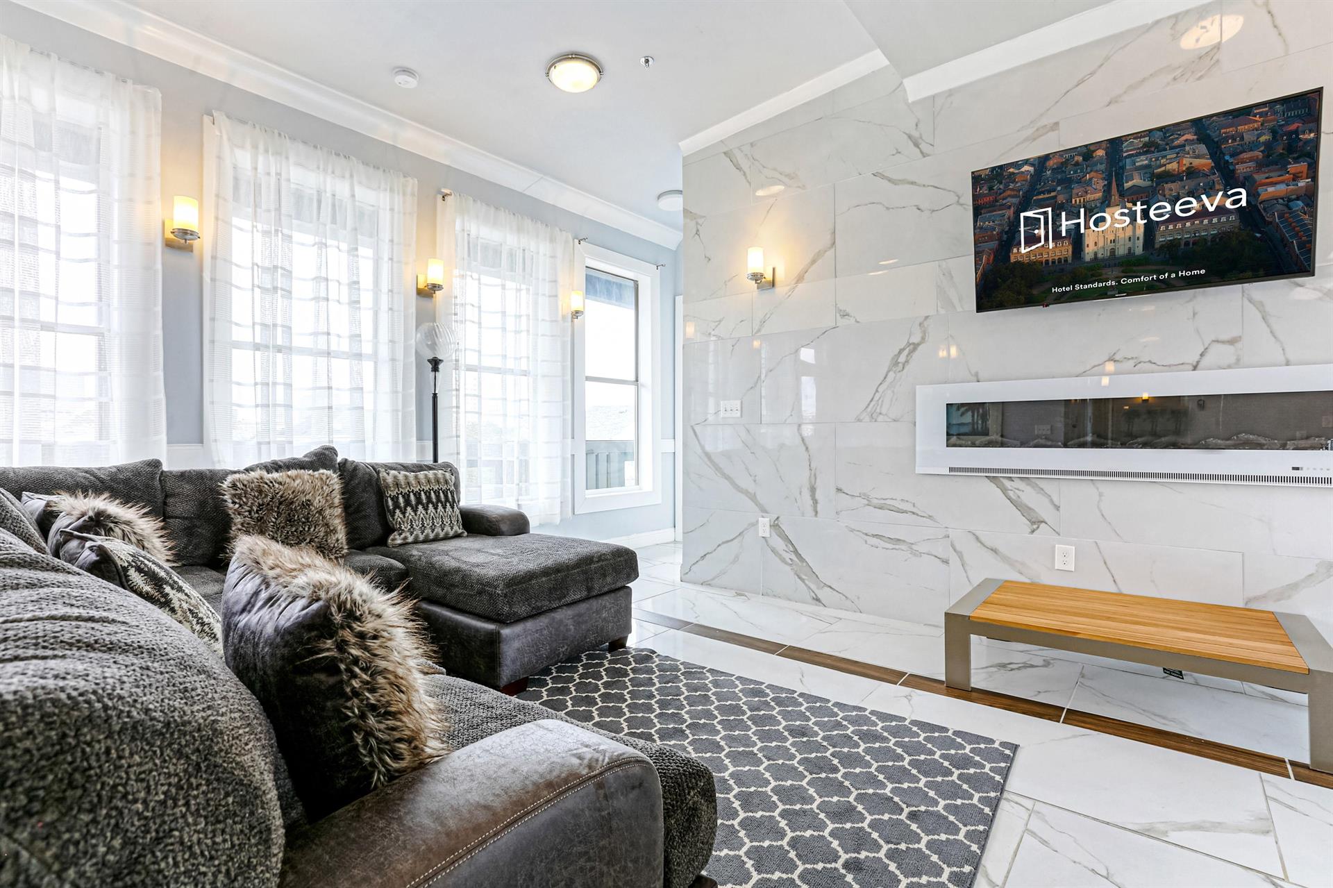 • Beautiful electric fireplace for cozy evenings
