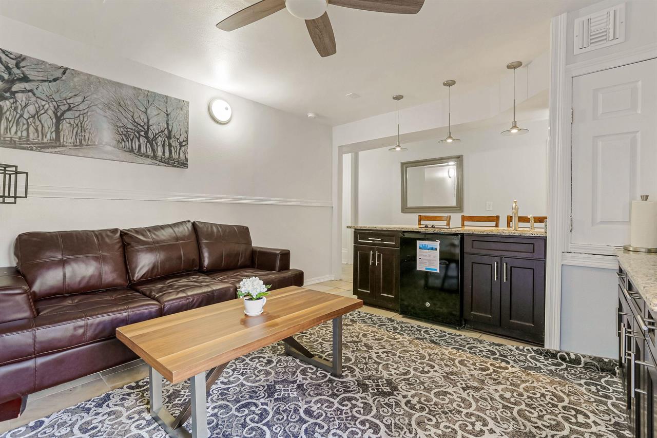 Features and amenities • The living room features plenty of seating with couches and leather armchairs