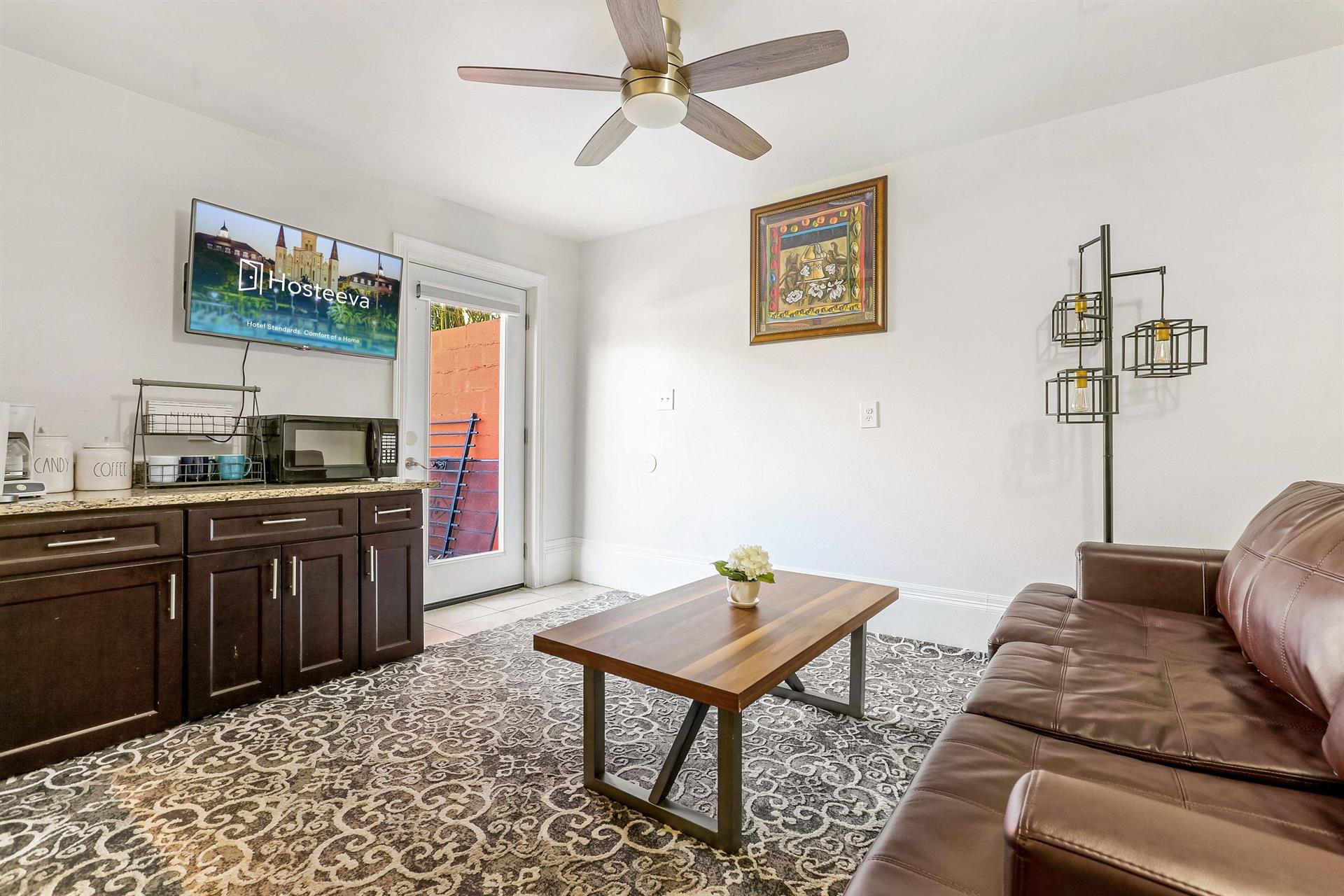 • Common deck/patio area Parking • Only street parking is available on a first-come-first-serve basis. Please do not park in the parking lot. Your vehicle will be towed. There is only street parking available on a first-come, first-serve basis on Carondelet street.Things to know • Please note: this condo is on the 2rd floor with the master bedroom located on the upper level and requires stairway access. The unit is not handicap accessible.