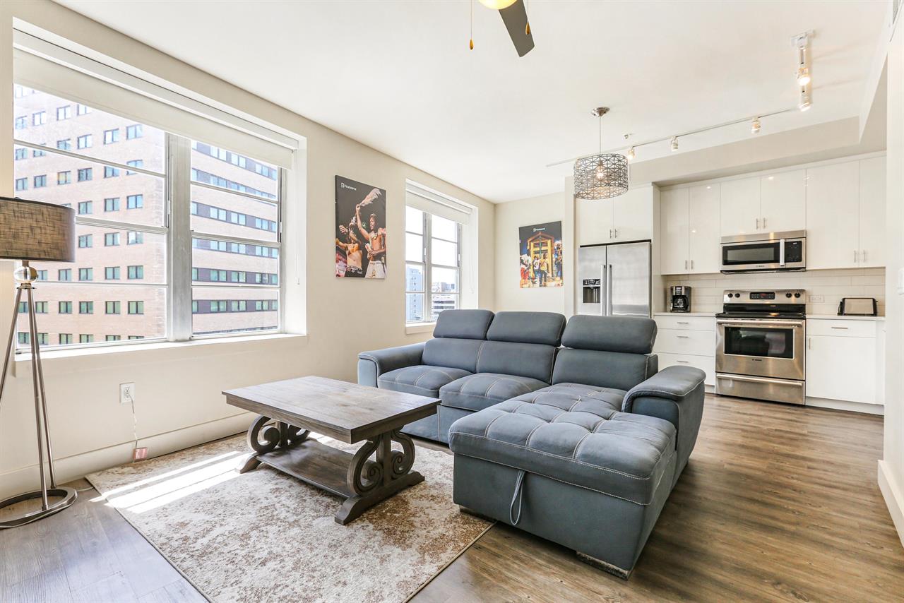 This luxurious and spacious 1 bedroom condo by Hosteeva comes equipped with an amazing city view from the rooftop where you can enjoy your morning coffee or an afternoon cocktail, modern design with high ceilings, full kitchen and bathroom amenities, bedroom with walk-in closet, a full bathroom and a spacious living room with a soft pull out sofa.