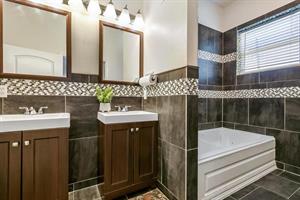When it's time to relax and unwind after a day of exploring the city, head to your master bedroom where you can grab a book or a glass of wine (or both) while cuddling up in a comfortable armchair in front of a wood-burning fireplace. You can also relax in a king-size bed while watching TV. And to top the day with some major pampering, enjoy your master bathroom that features two vanity sinks, a shower stall, and a bathtub, plus granite tile throughout the entire bathroom.