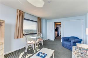 This beautiful oceanfront 1 bedroom, 1 bathroom condo with a private balcony will allow you to wake up to the sound of the ocean and the views of sugar-white sandy beach. As a guest of this resort, you'll enjoy year-round swimming in the spacious indoor pool and soothing indoor whirlpools. Your kiddos can splash their way through their very own indoor pool. And if laps in the pool and swimming in the ocean is not enough to keep you active, there is a fully-equipped fitness center available for your enjoyment.