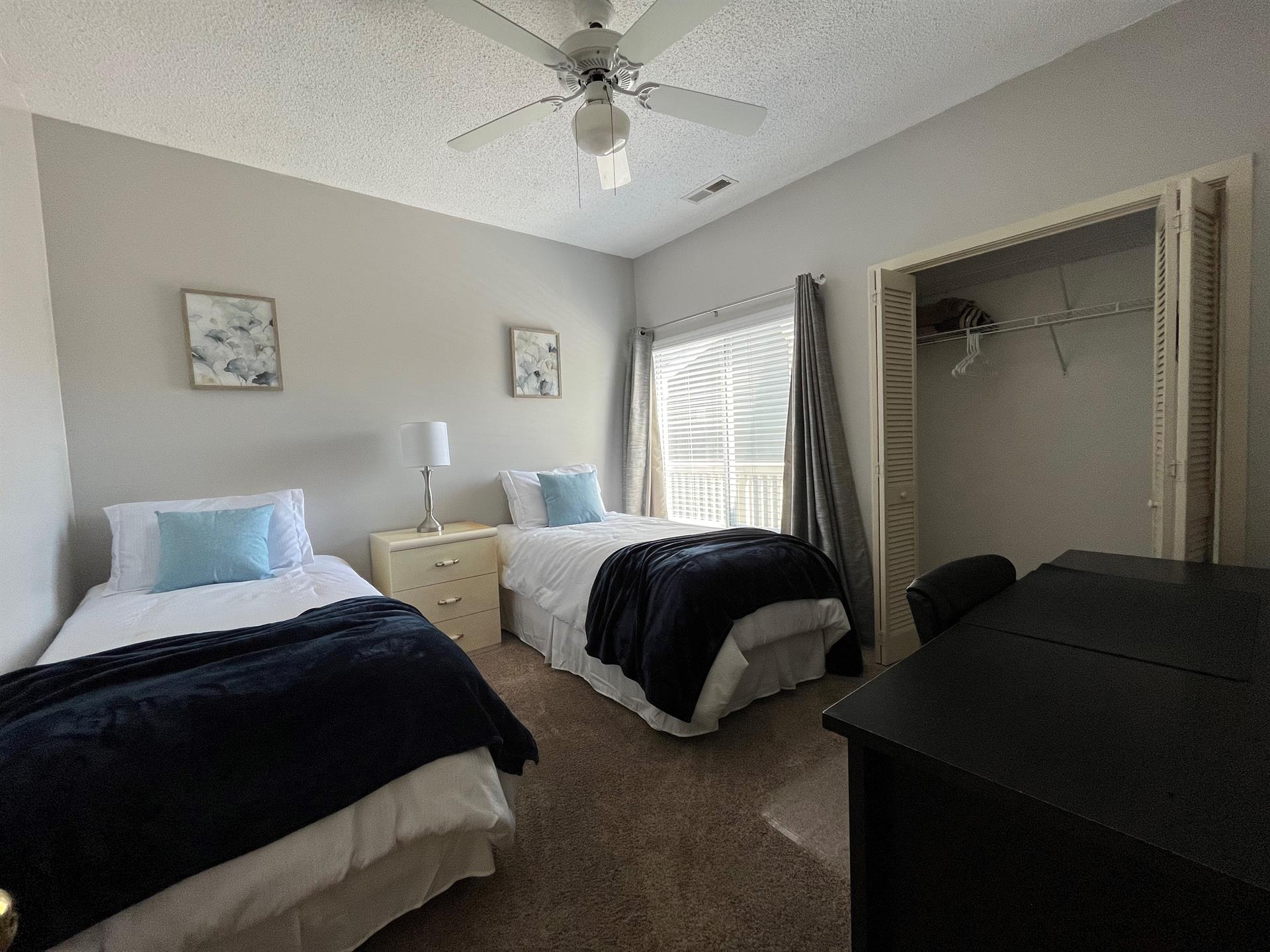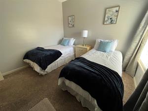 In the second bedroom, there are two twin beds with a flat-screen television and drawer to help store your belongings.