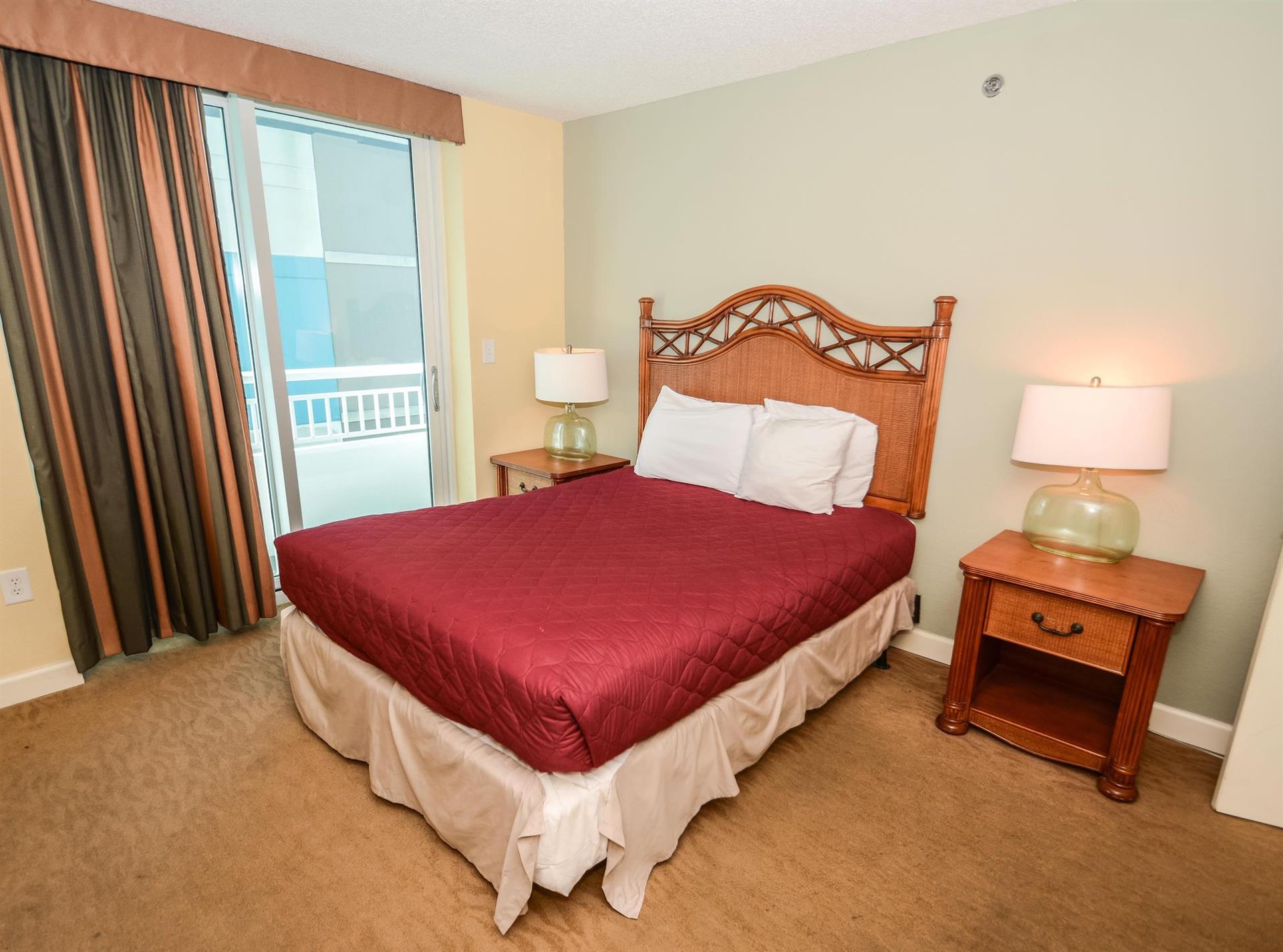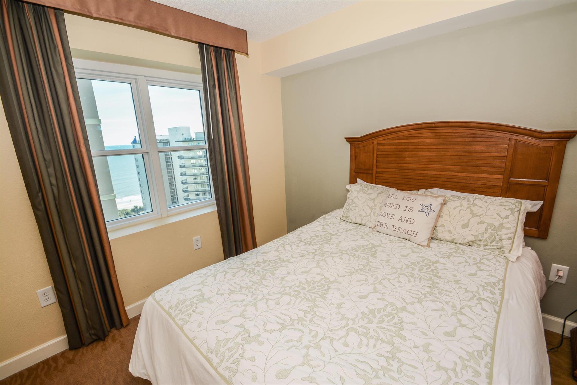 In the second bedroom, you will find a comfortable queen-size bed with access to the outdoor balcony. In the third bedroom, there are two queen-size beds with breathtaking views of the Myrtle Beach area.