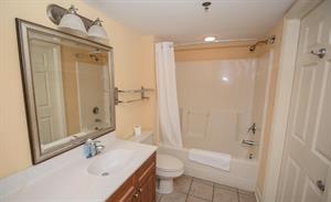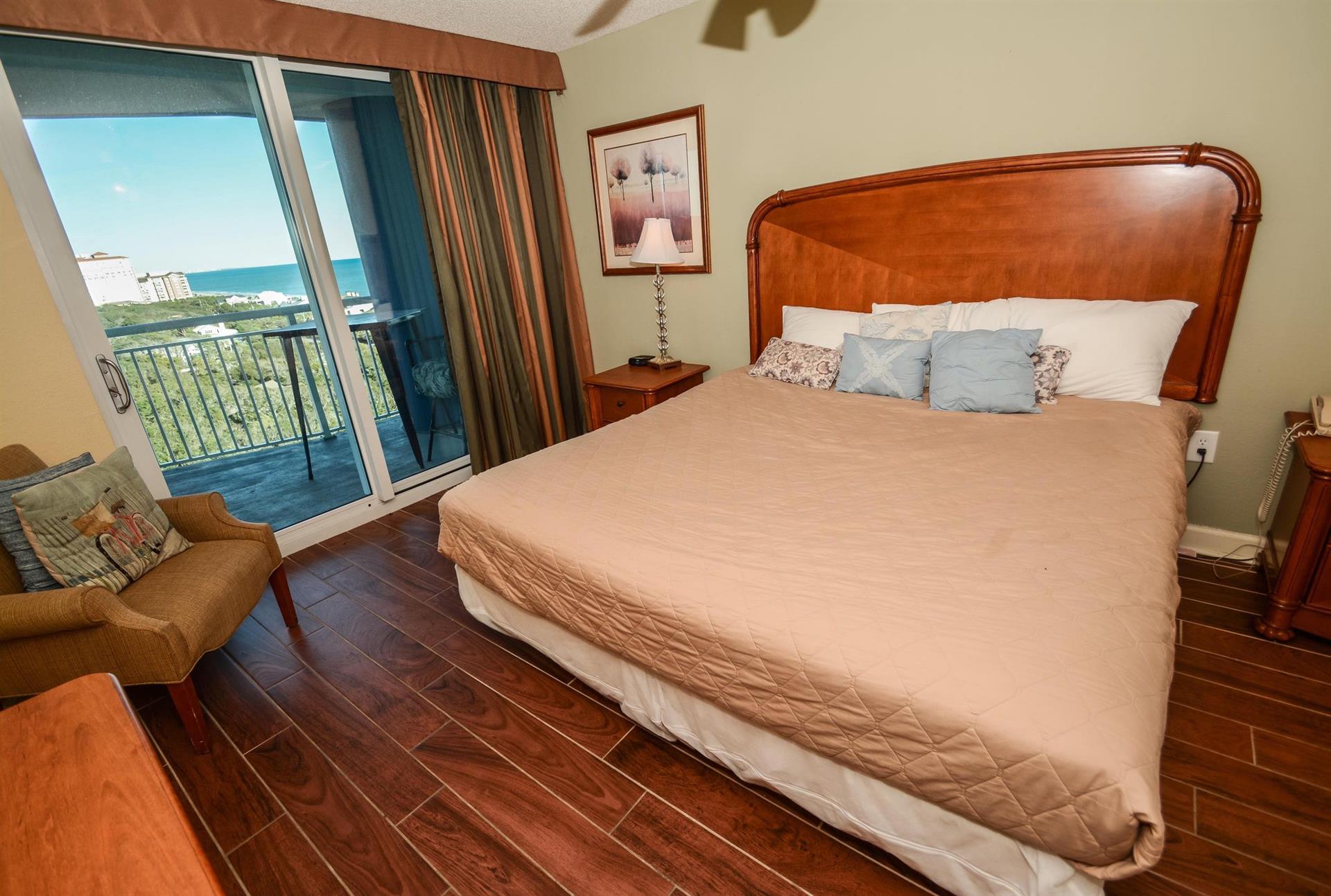 In the master suite, you will find a luxurious king-size bed with access to your seventh story balcony. Be amazed at the elegant master bathroom with the posh vanity area and tub/shower combo.
