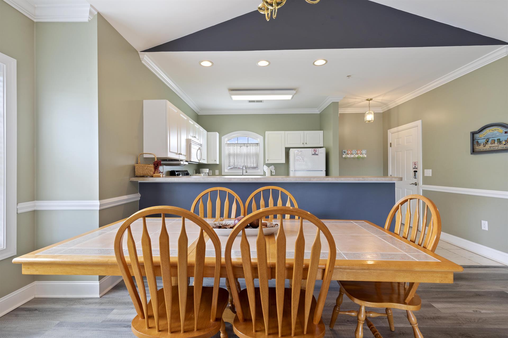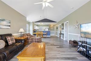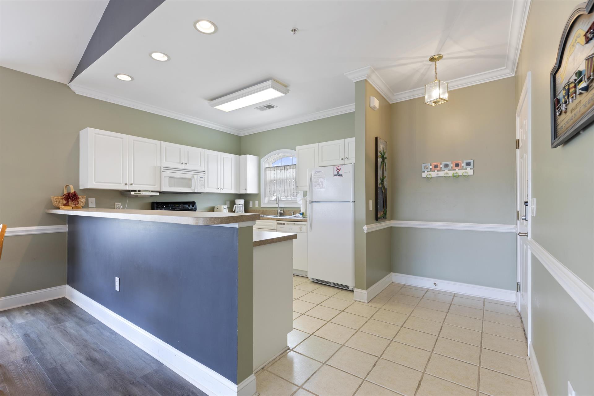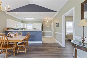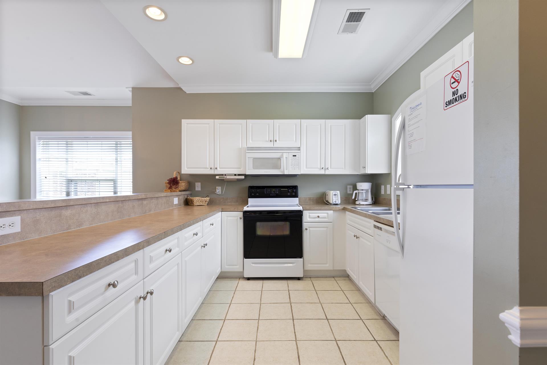 The full kitchen is equipped with all appliances, white cabinets, a large breakfast bar, and a dining area that seats 6 so you will have room for the whole family.