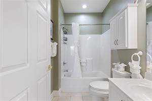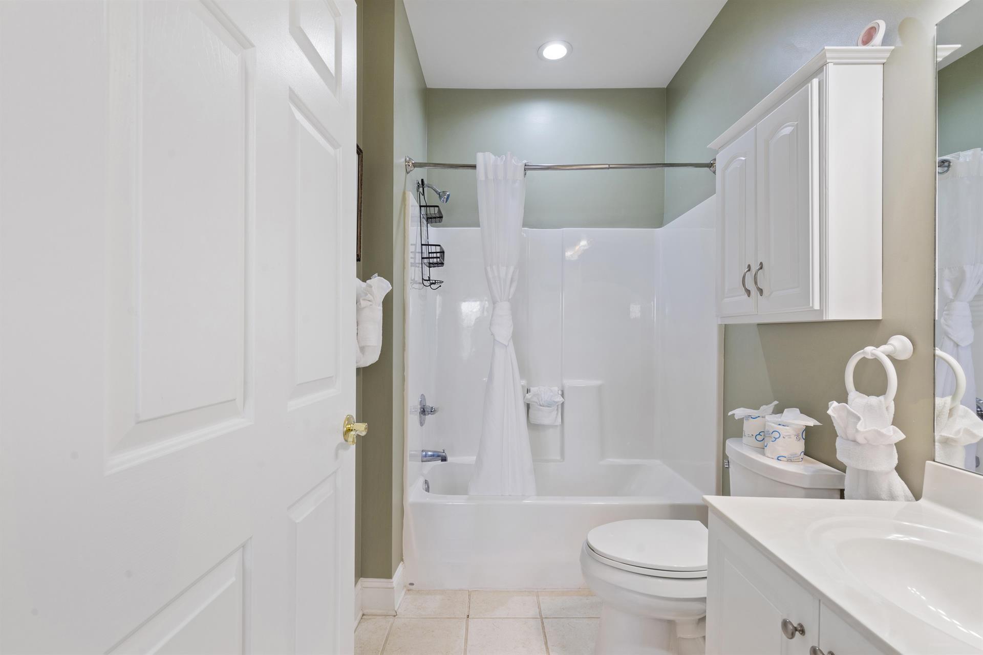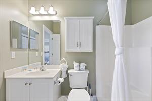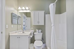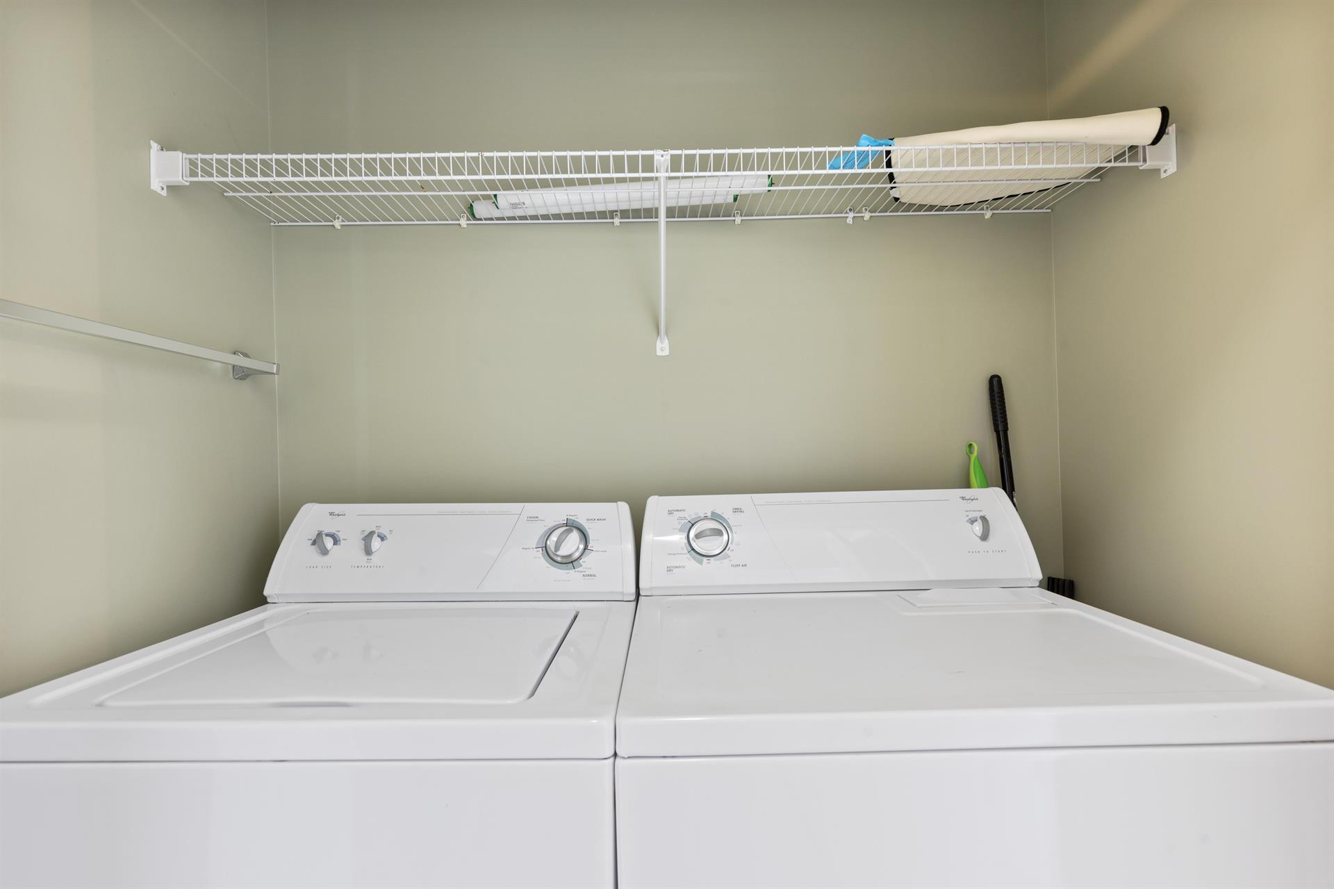 The full kitchen is equipped with all appliances, white cabinets, a large breakfast bar, and a dining area that seats 6 so you will have room for the whole family.