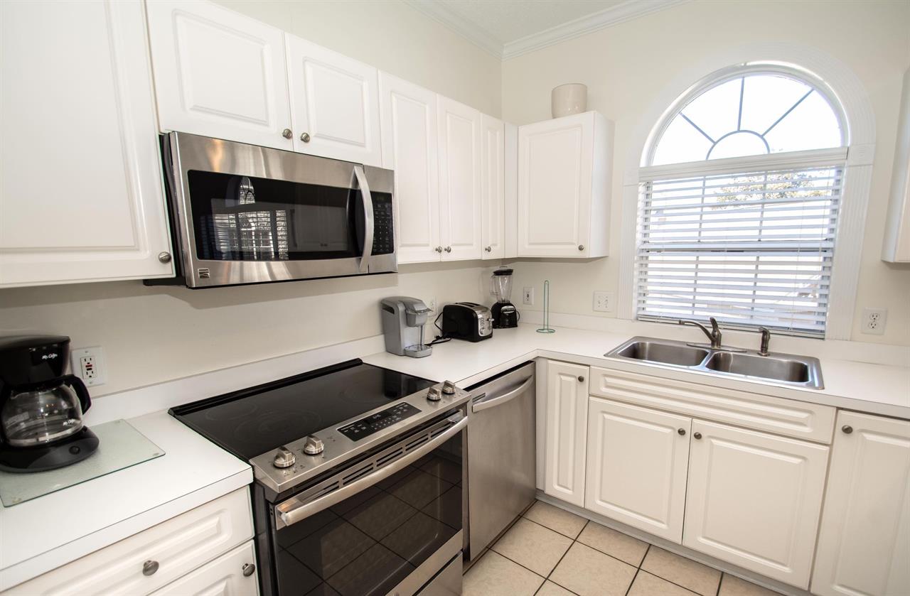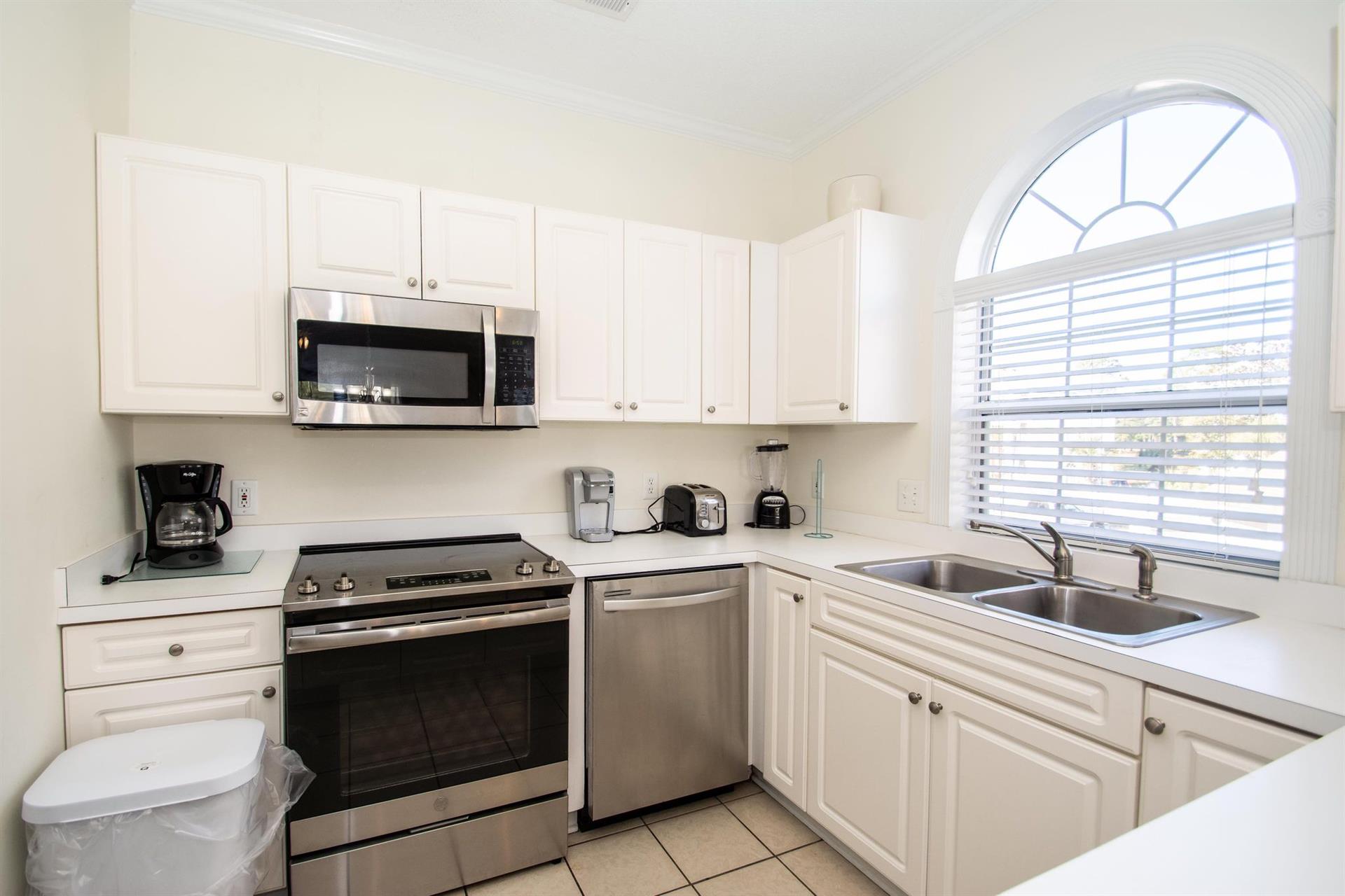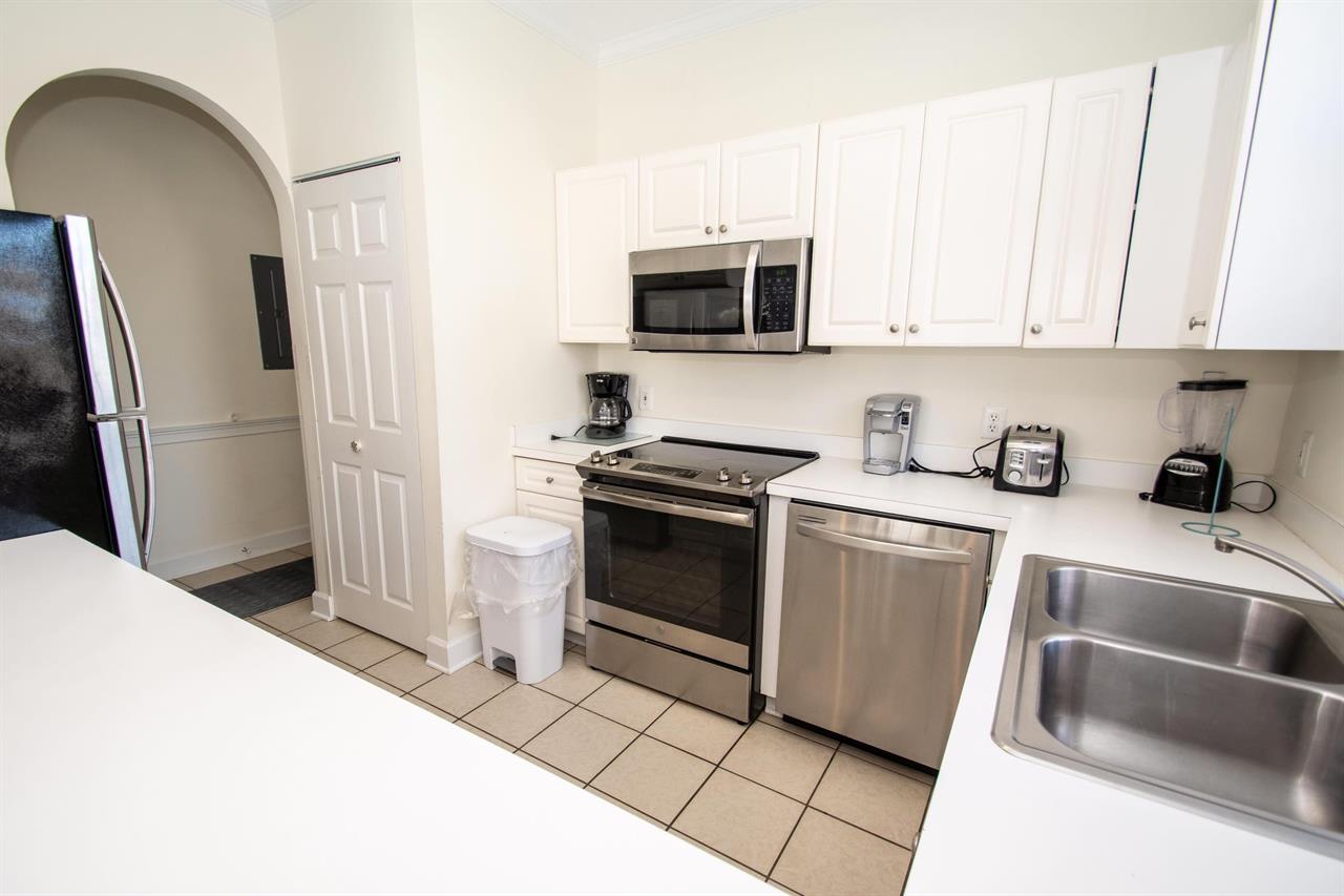 There is a flat-screen TV in the living area and both bedrooms. The kitchen is fully stocked with all of the necessary utensils and appliances for your vacation getaway. There is a private balcony with captivating views of the Magnolia Place pool area right off of the living area!