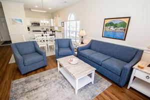 In the master bedroom, there is a king bed with an attached full master bathroom! The second bedroom has two twin-size beds with access to the second bathroom. Both bedrooms have ample space for all of your vacation belongings. There is also a sleeper sofa available in the living area - making this unit able to fit up to six guests. You will be able to find comfort and solitude while residing at Magnolia Place 202/4703.