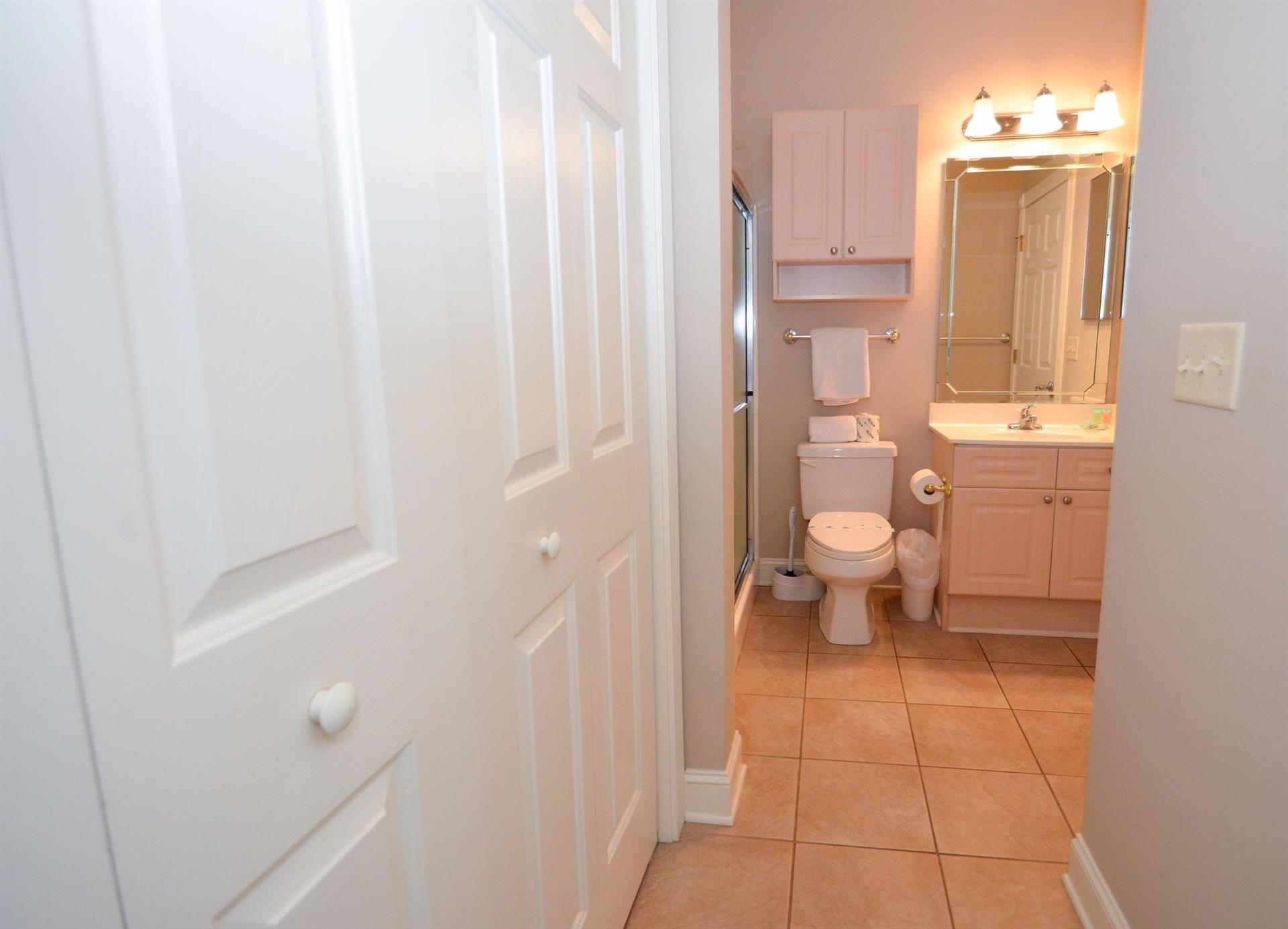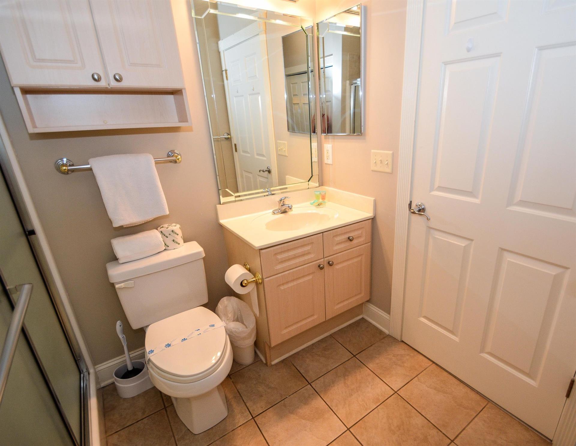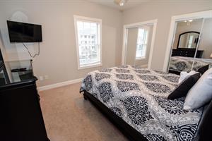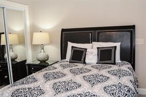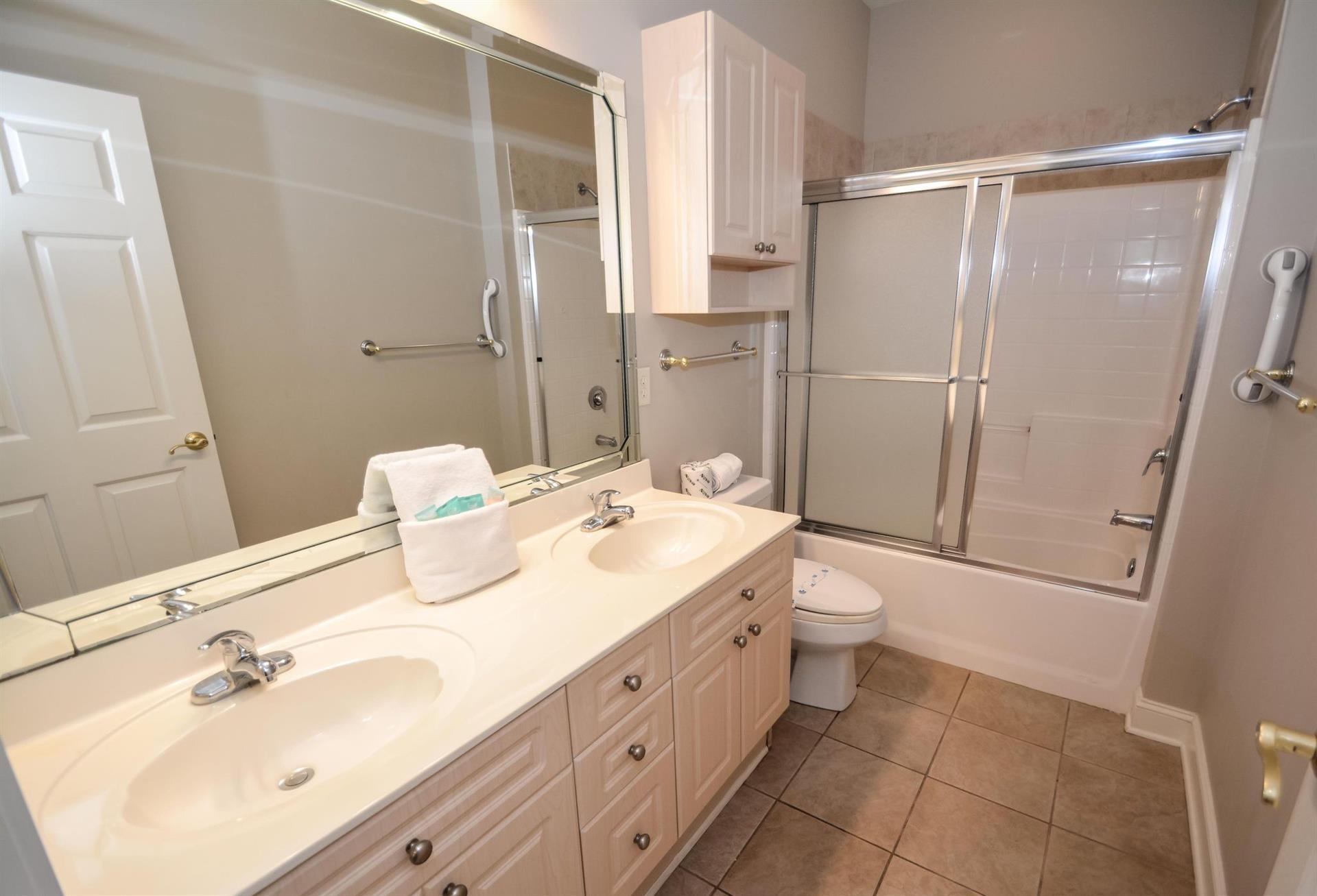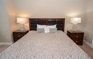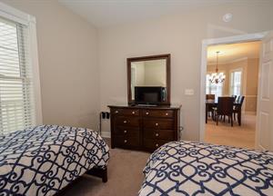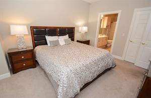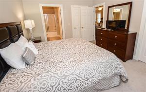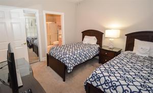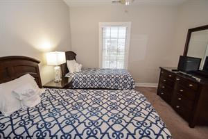 In the master bedroom, there is a king-size bed with an attached full bathroom. The second bedroom has two twin-size beds with an attached bathroom. The third bedroom has a queen-size bed!