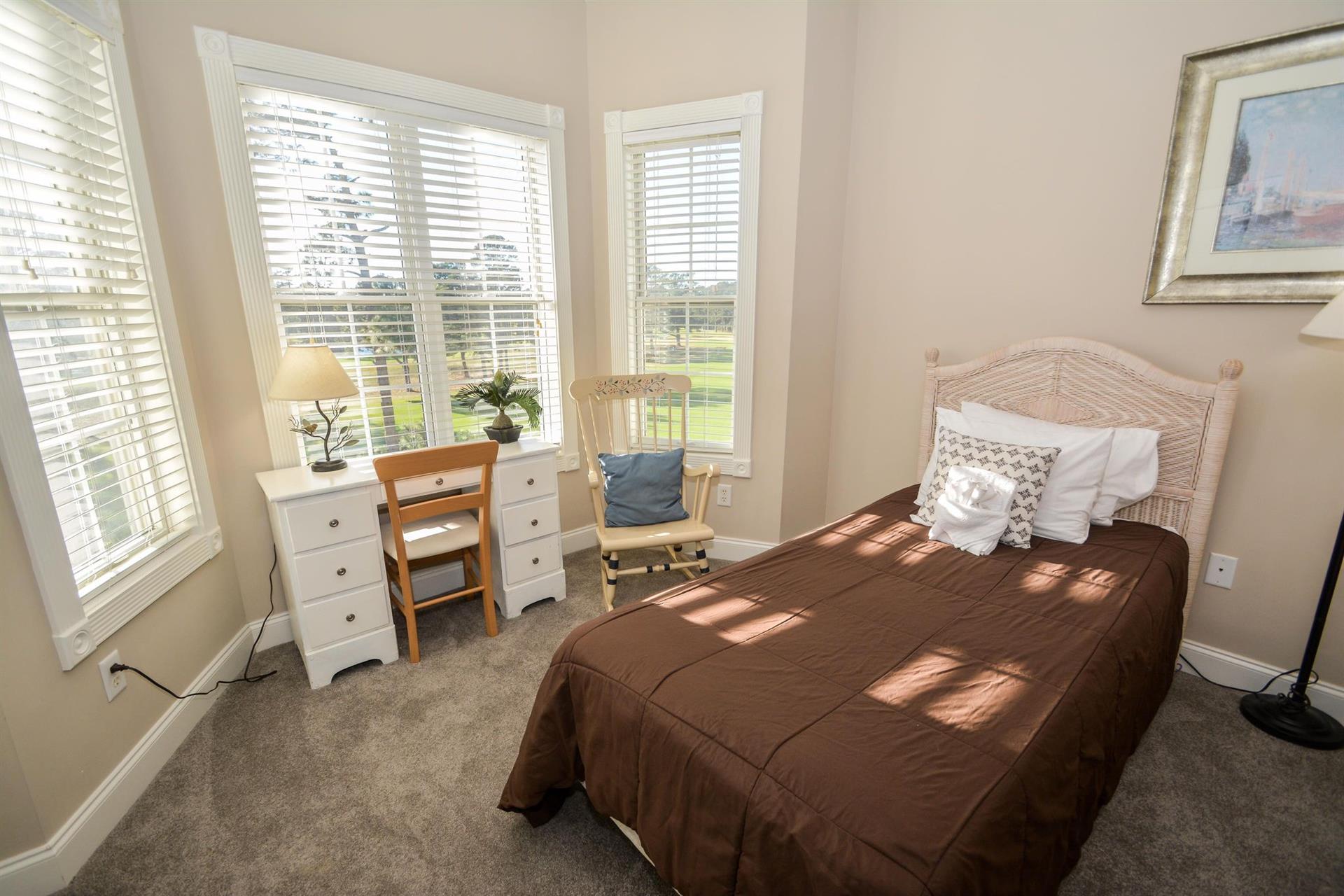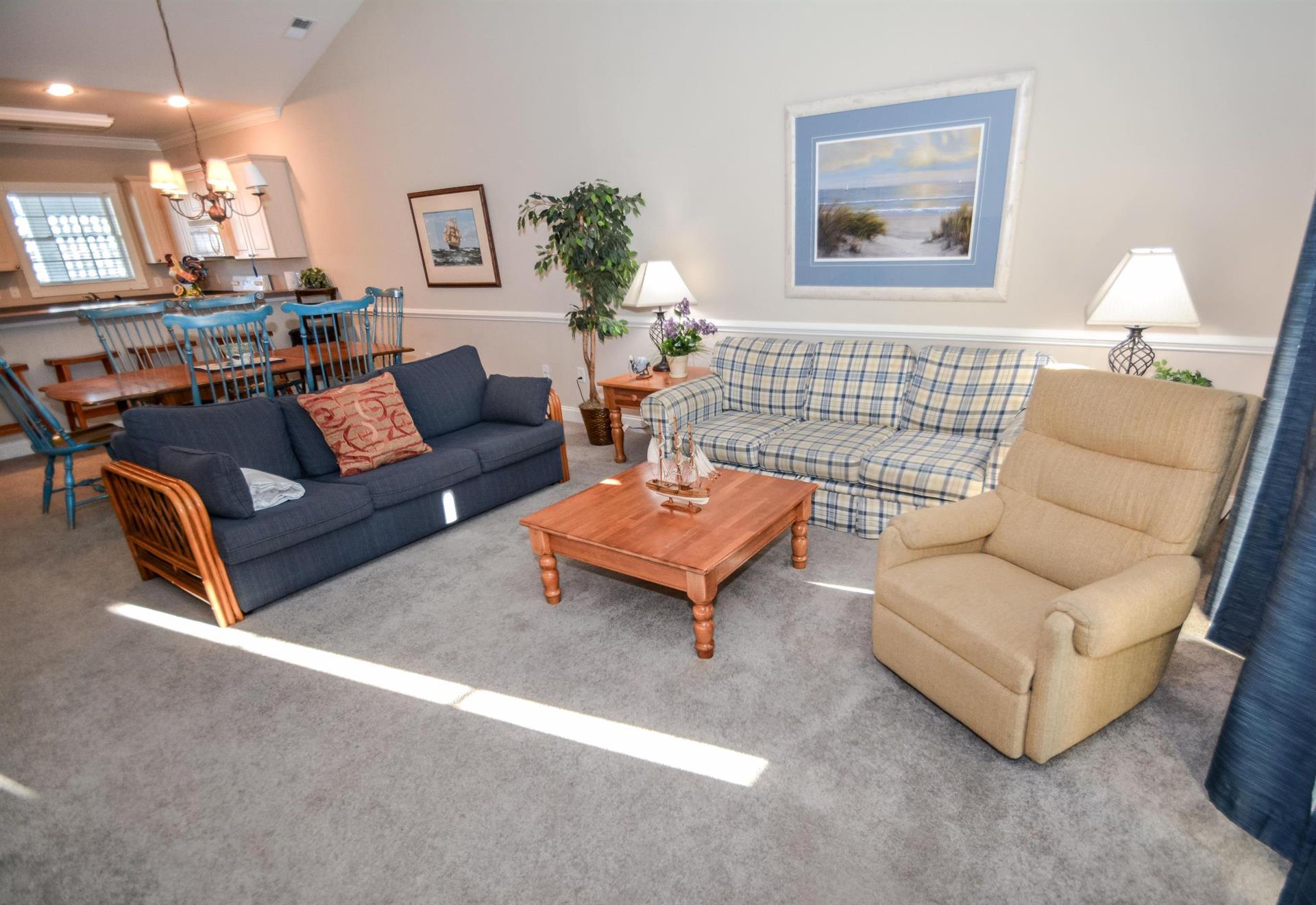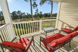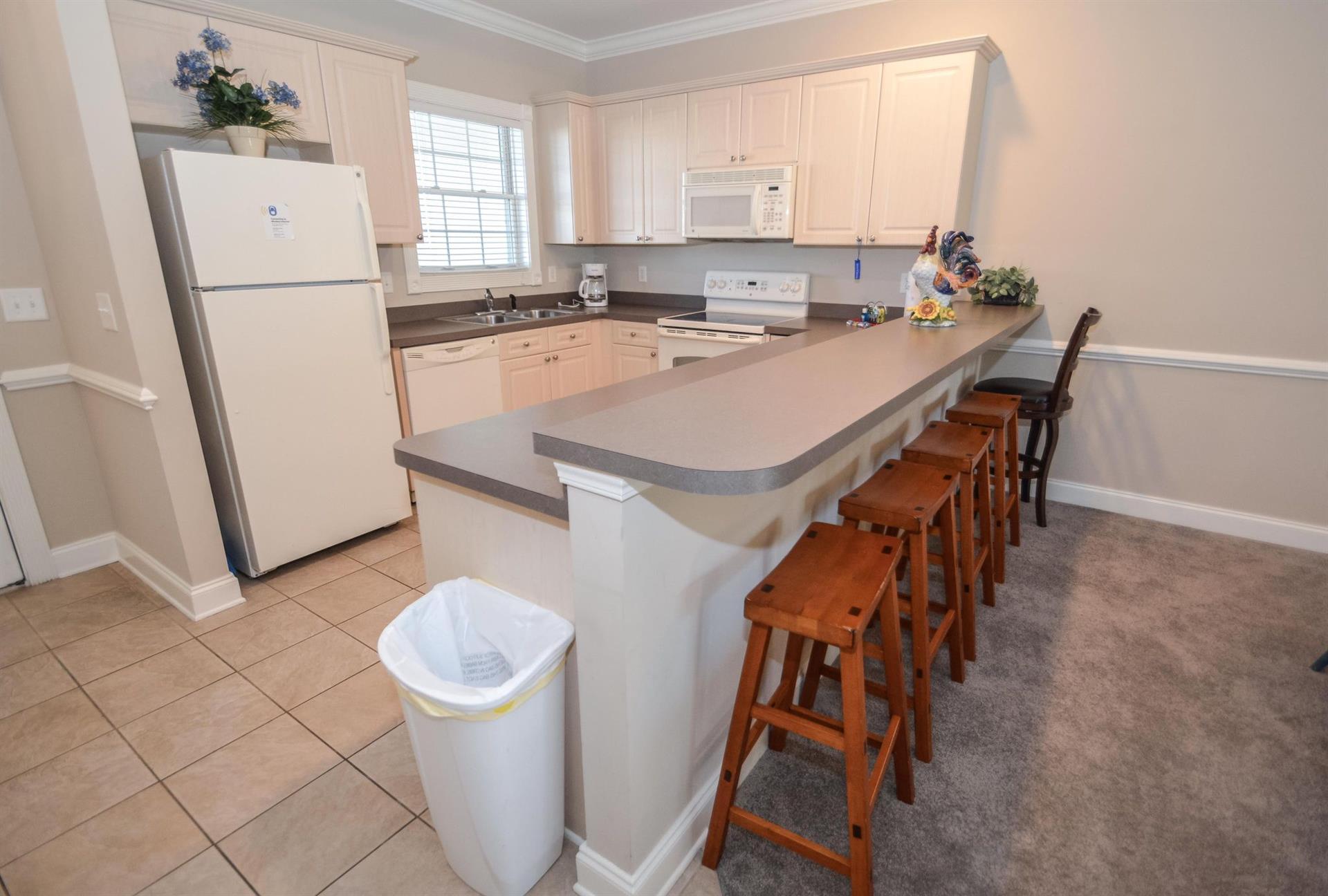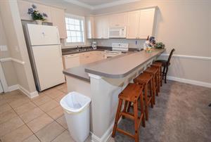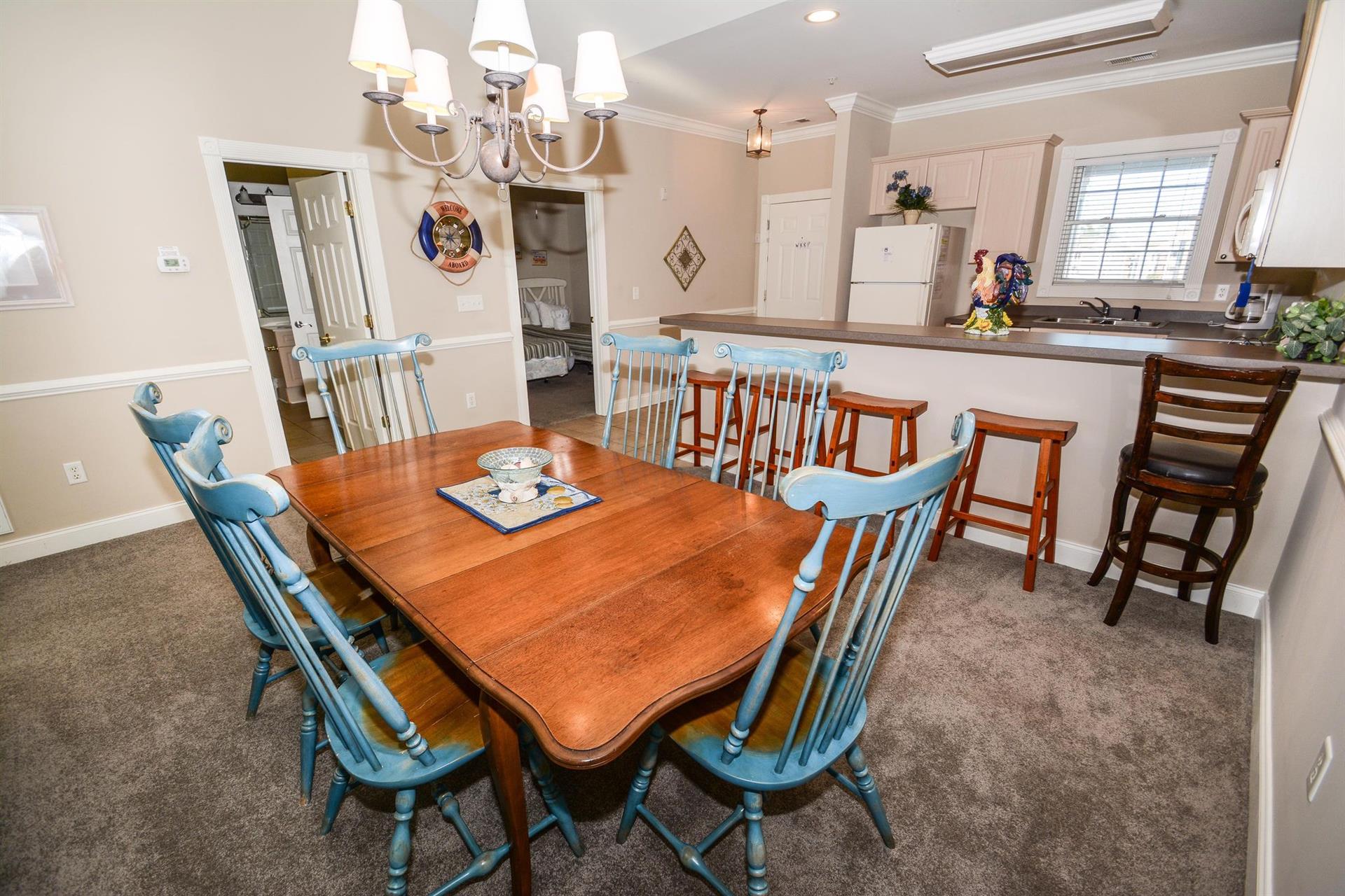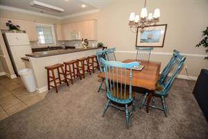 With high ceilings and comfortable furniture, the living area is spacious and roomy, and all of the pieces are centered around the large flat-screen TV. The dining area, located next to the great room, has a very nice wooden table and six chairs, as well as four matching bar stools. This Myrtle Beach condo comes with all the appliances and utensils you need to prepare a gourmet meal or a PBJ sandwich.