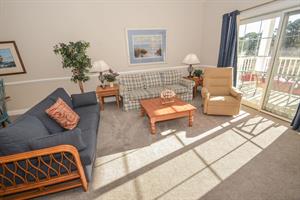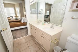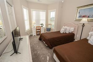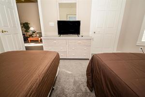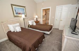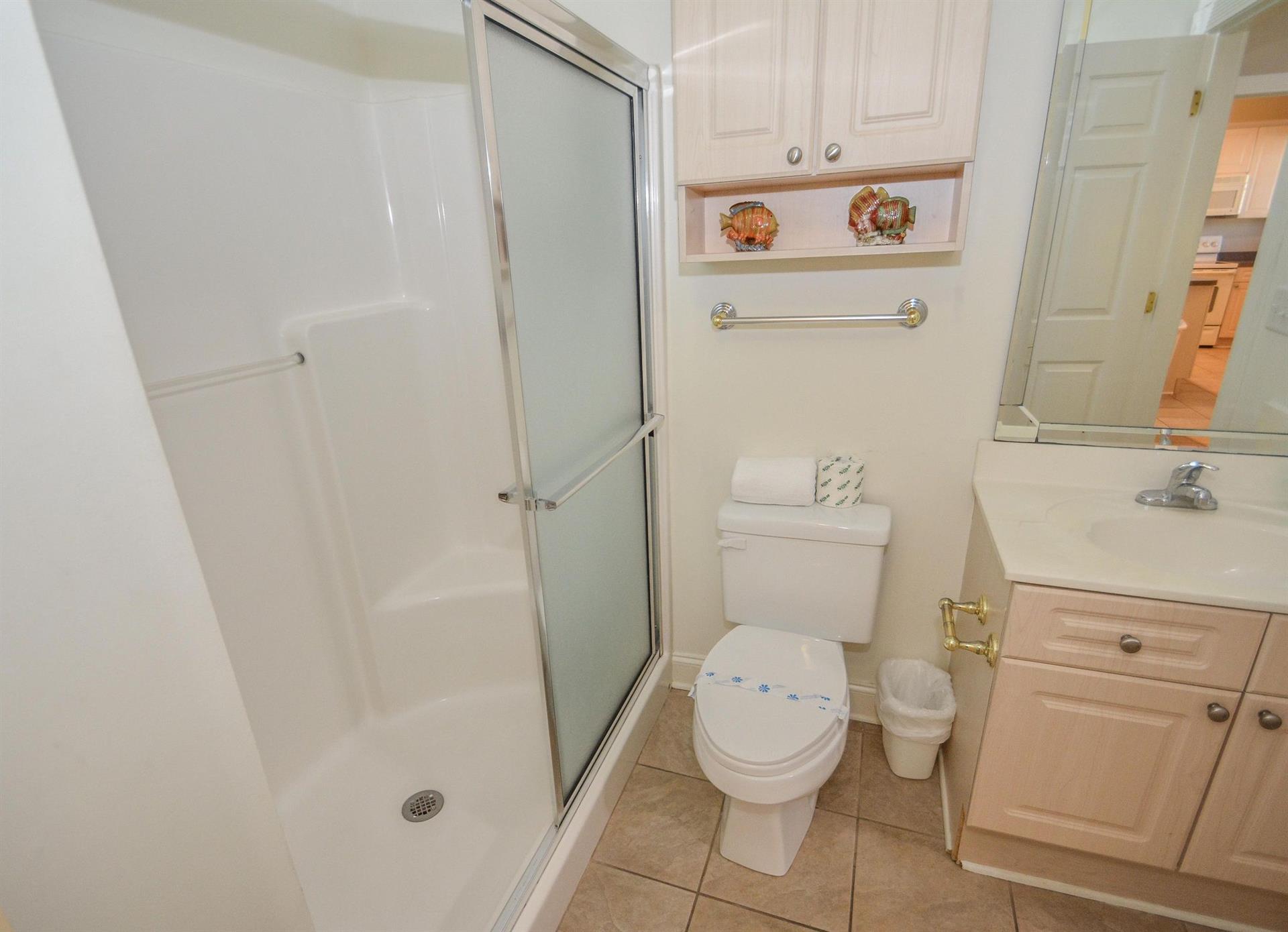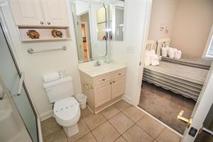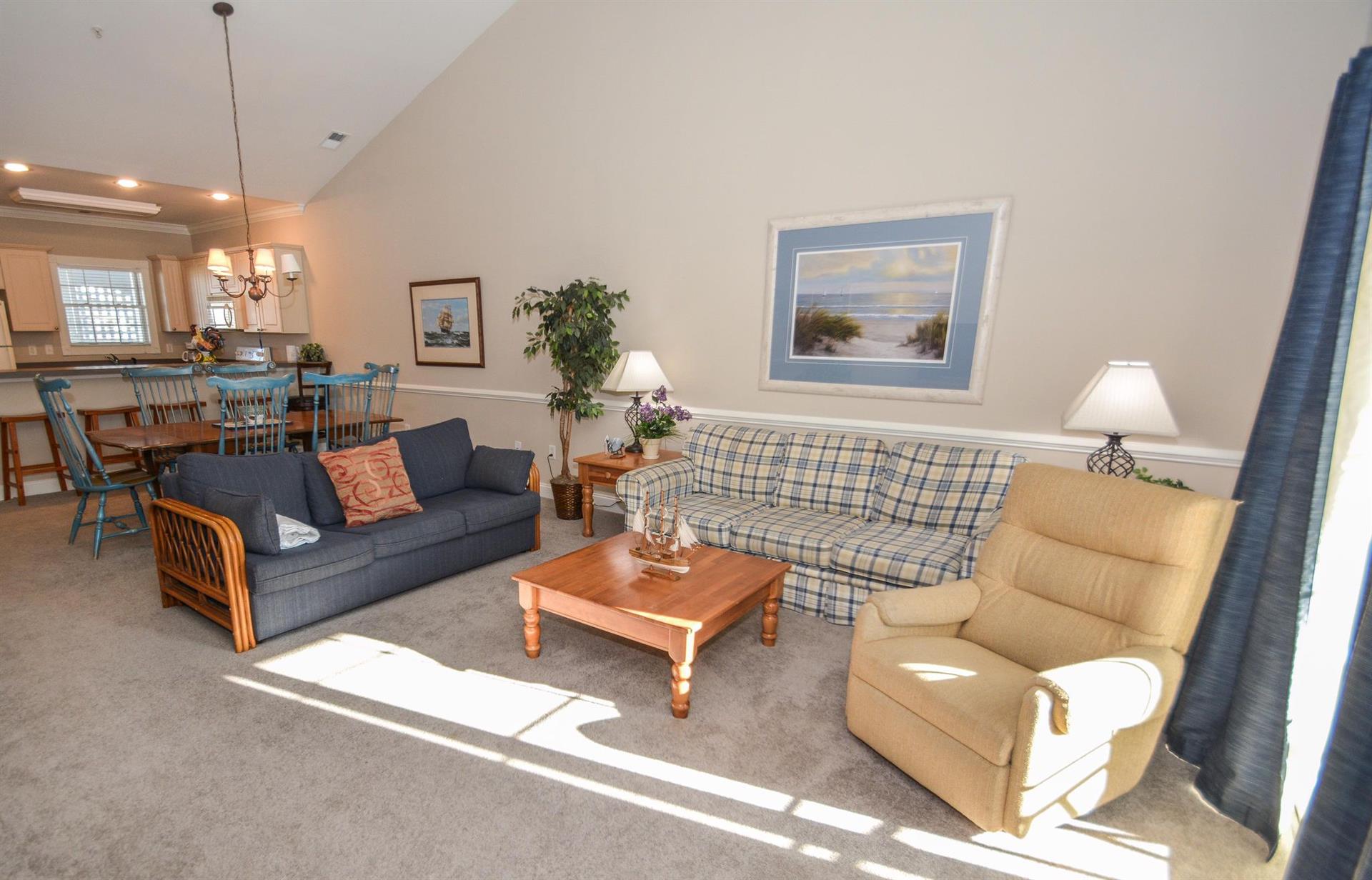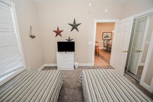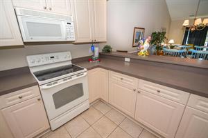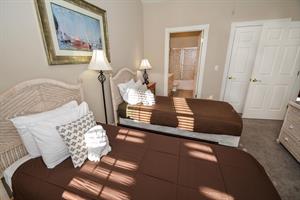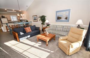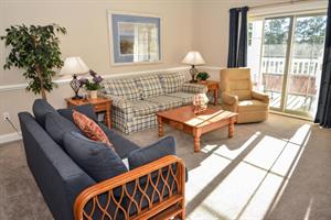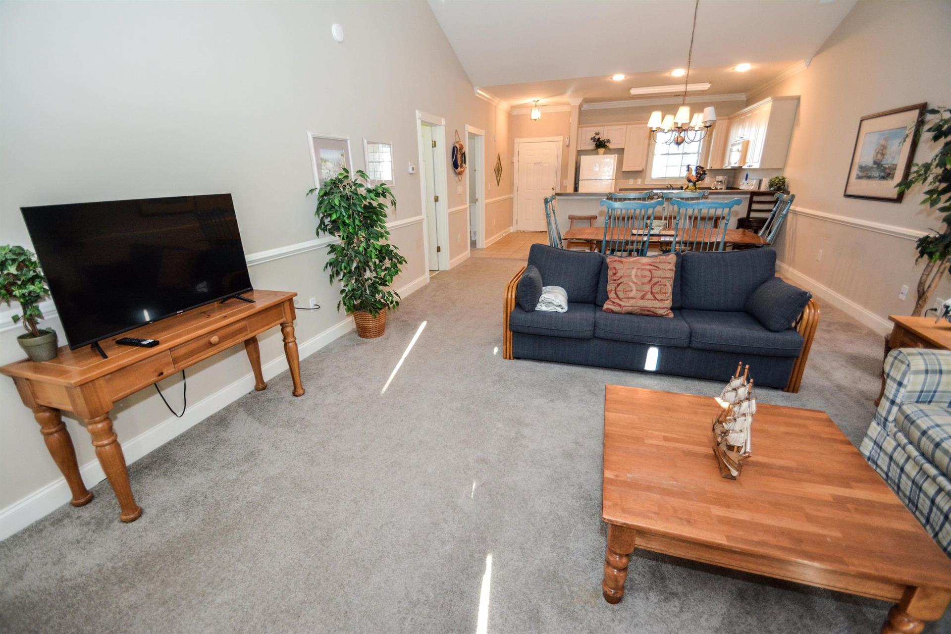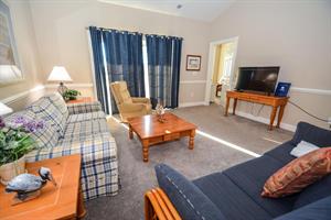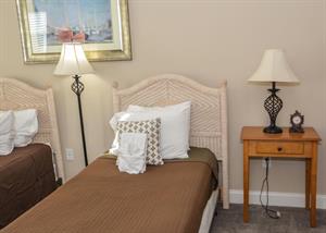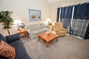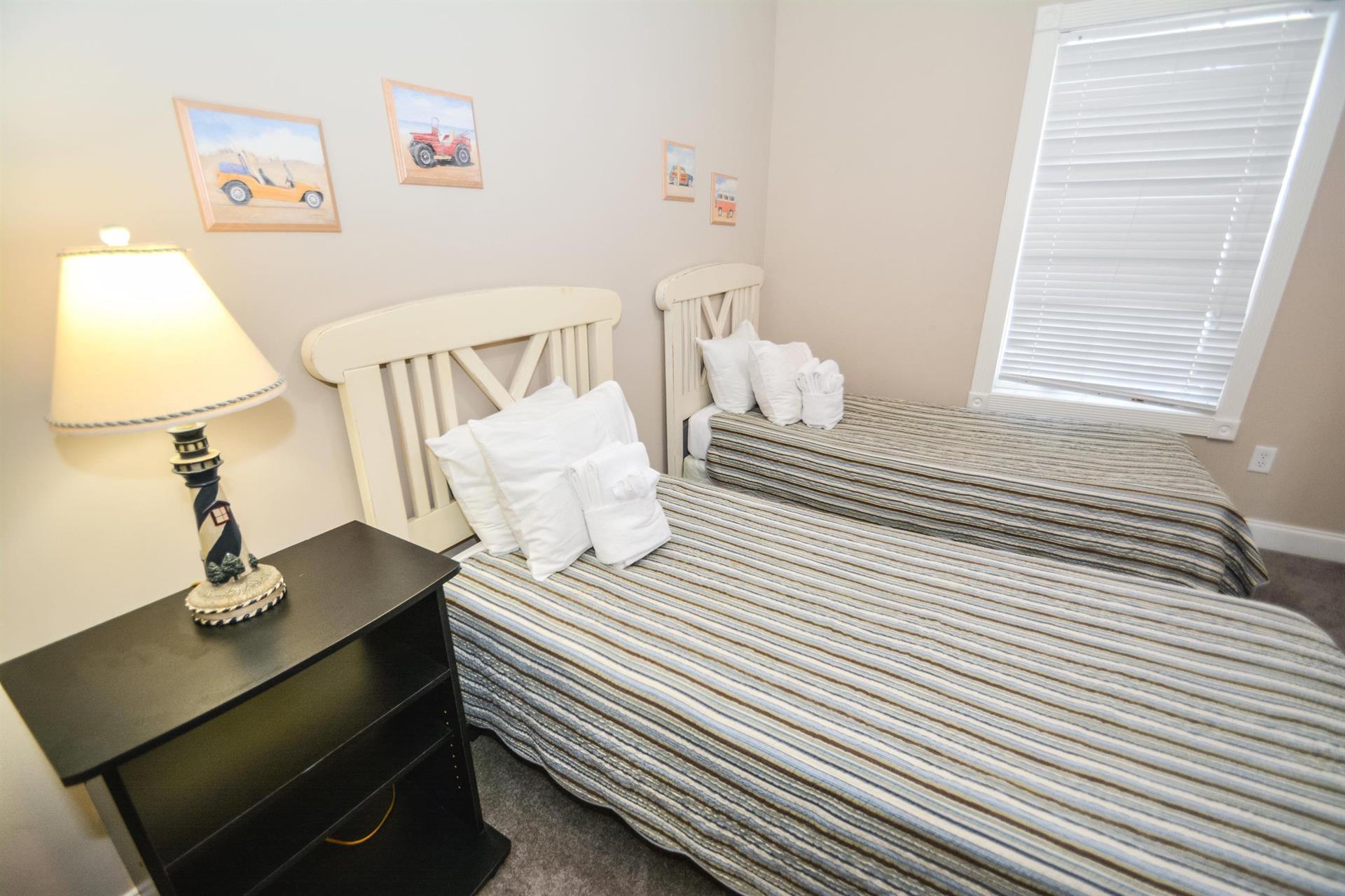 With high ceilings and comfortable furniture, the living area is spacious and roomy, and all of the pieces are centered around the large flat-screen TV. The dining area, located next to the great room, has a very nice wooden table and six chairs, as well as four matching bar stools. This Myrtle Beach condo comes with all the appliances and utensils you need to prepare a gourmet meal or a PBJ sandwich.