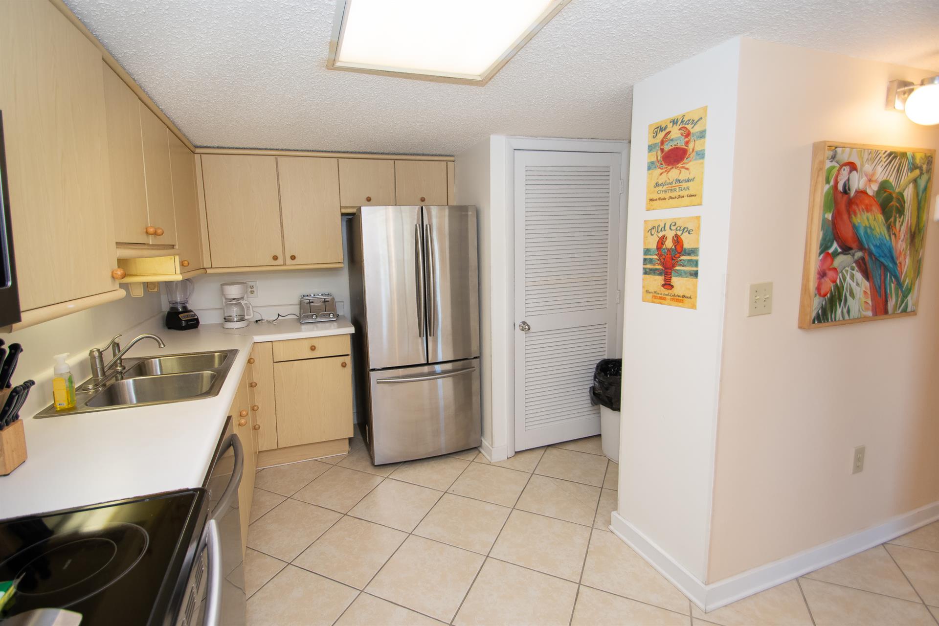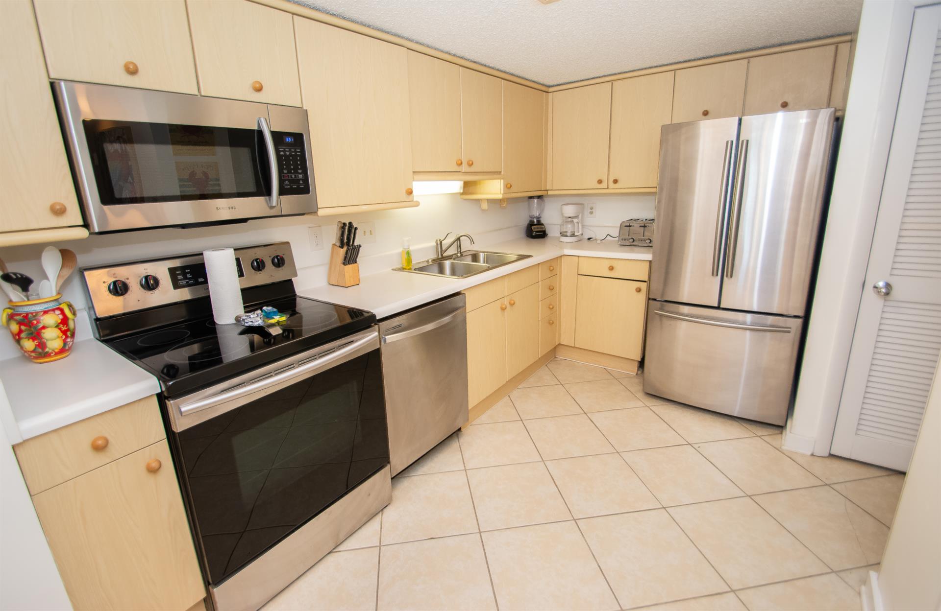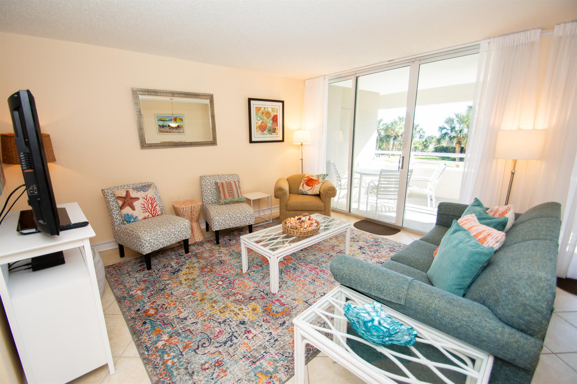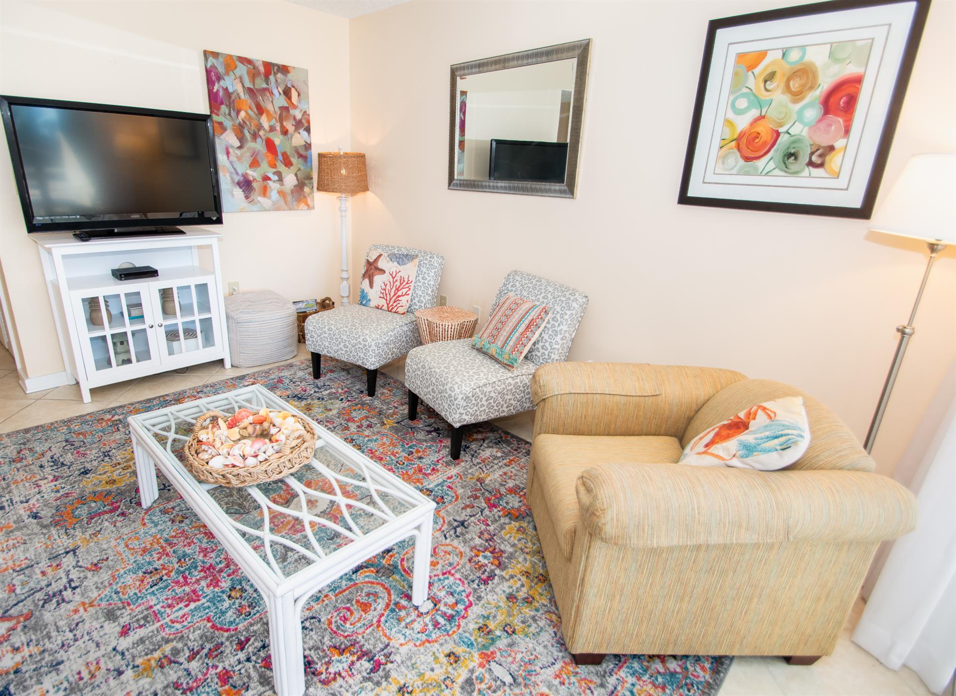 On the second floor of North Hampton 124, you will find the peaceful master and second bedroom suites. Sleep in bliss in your master king-size bed with incredible ocean views. In the master bathroom, you will find an extended vanity area and bath/tub shower combo. The shabby-chic style of the second bedroom comes with two twin size beds and an ample amount of space for your vacation belongings. The second bathroom next to this bedroom comes with a shower/tub combo too.