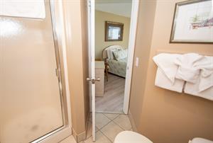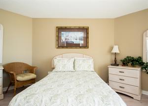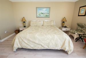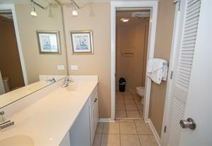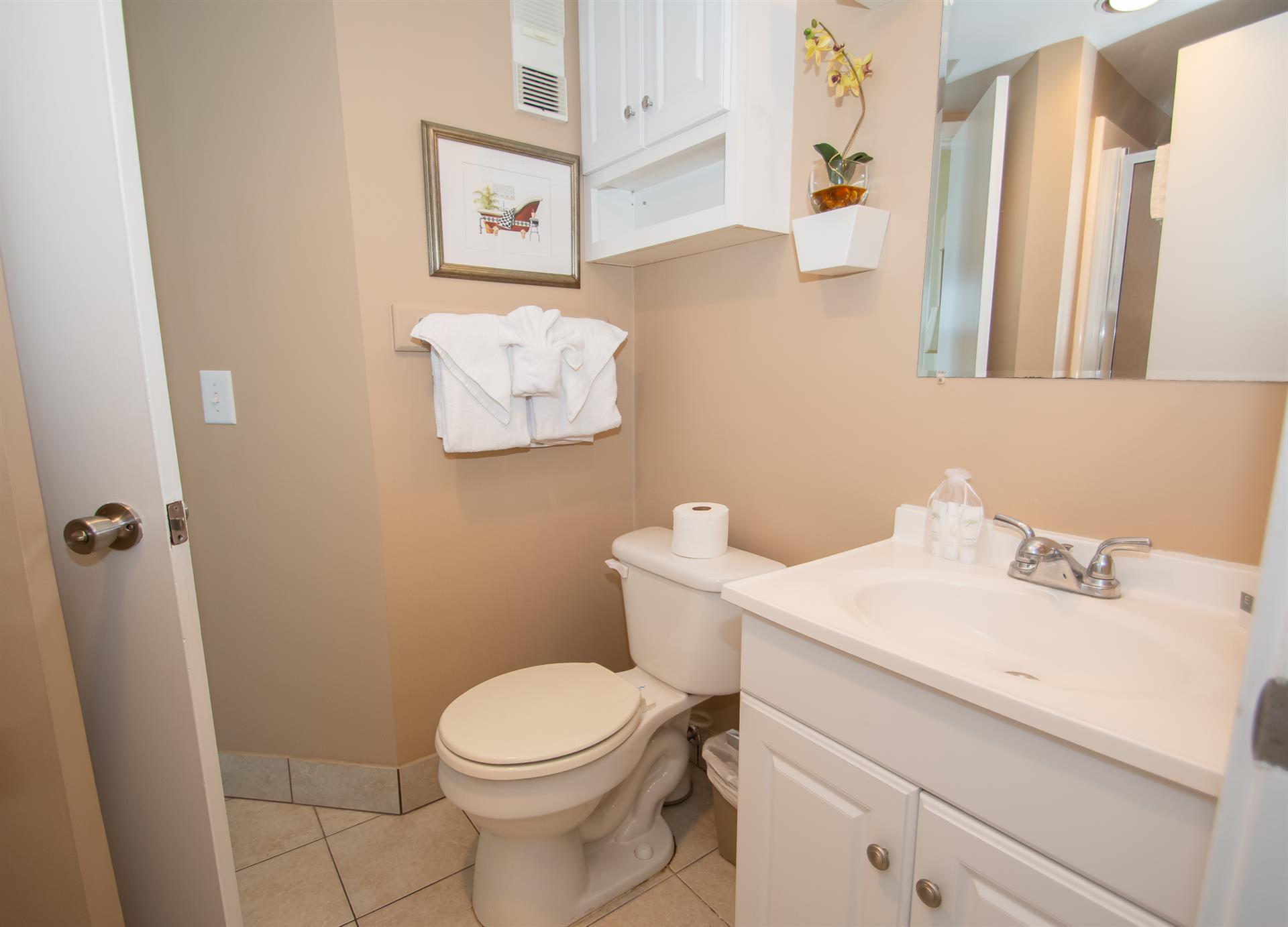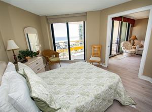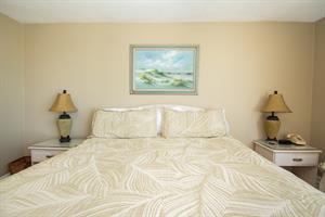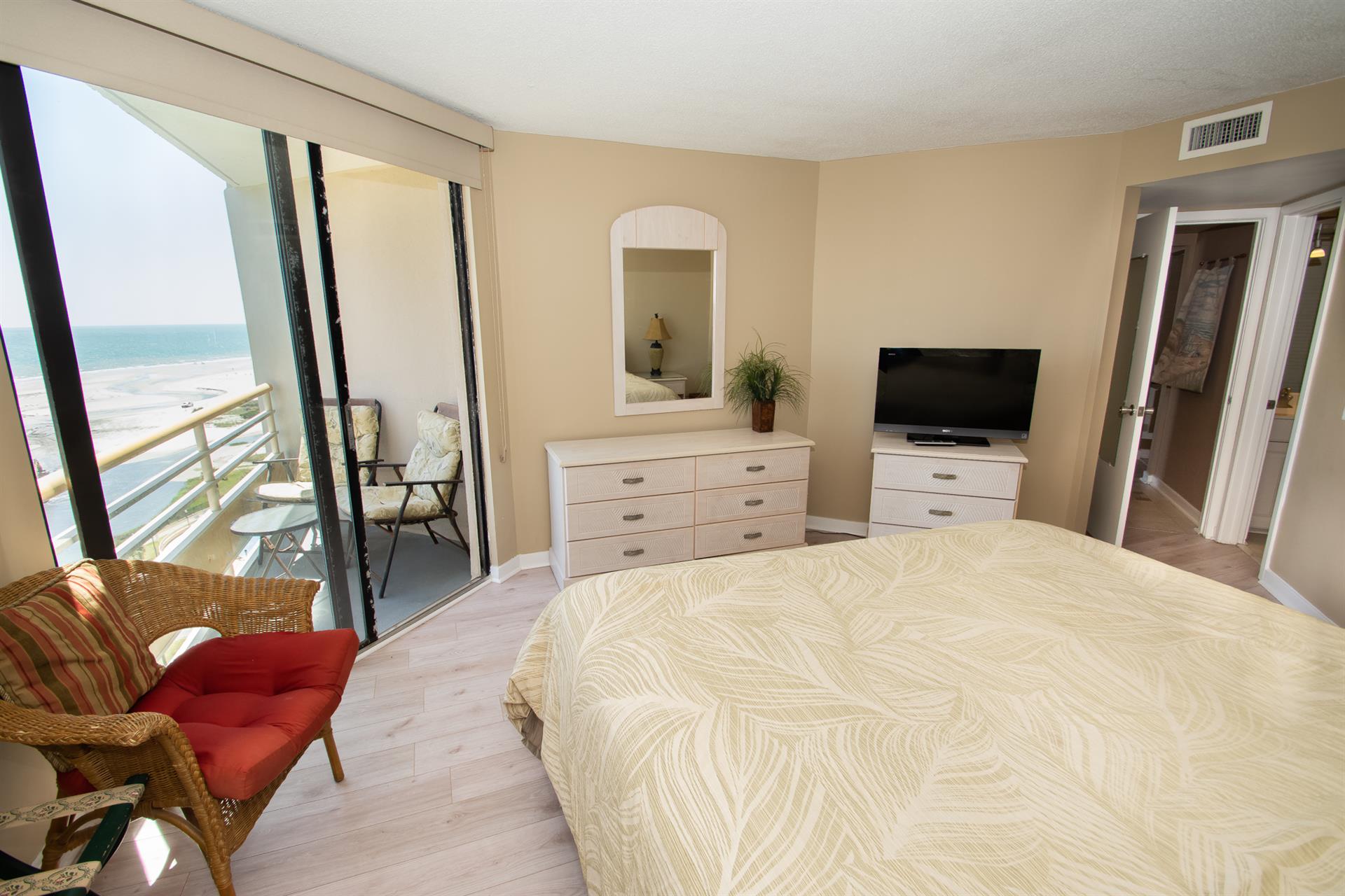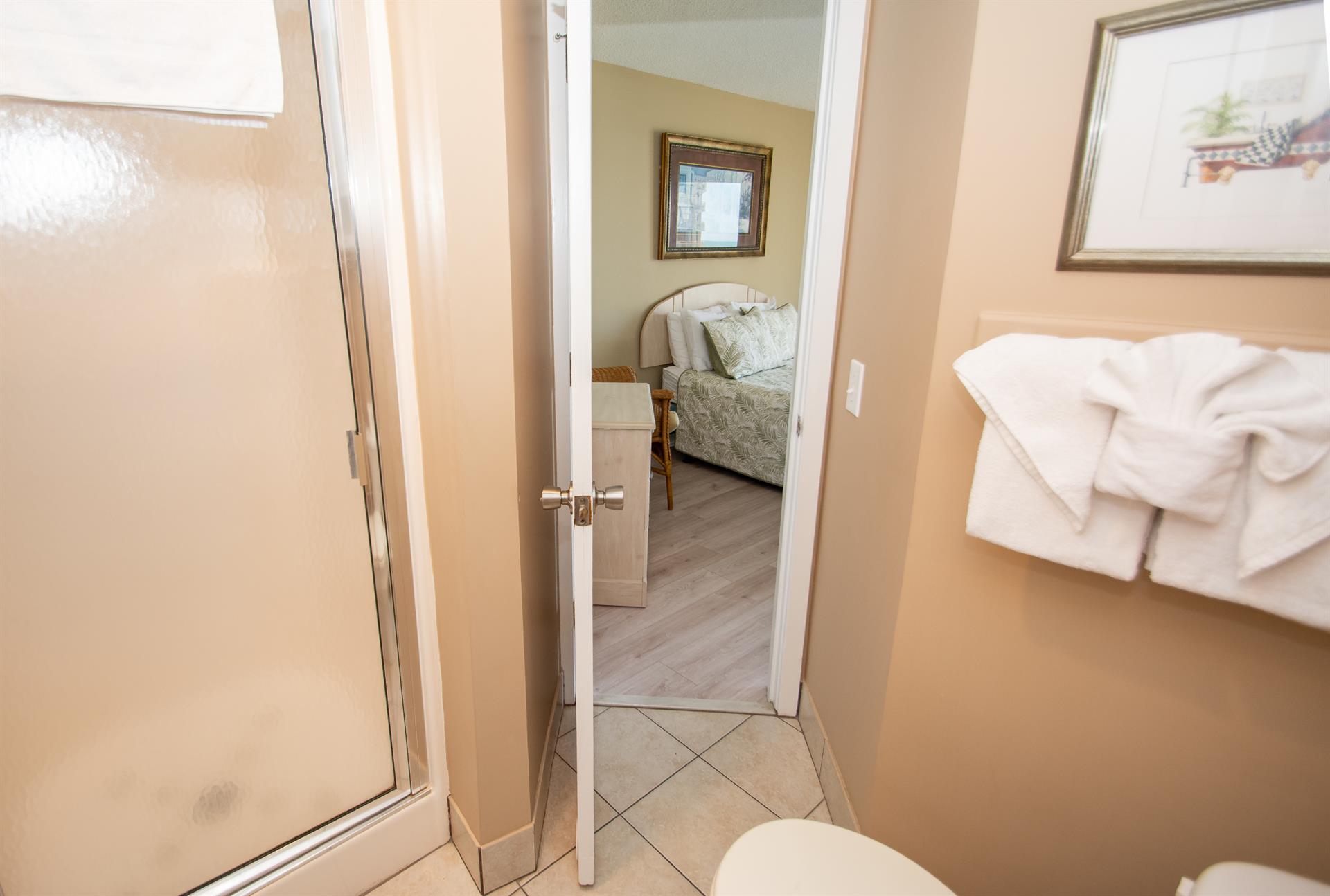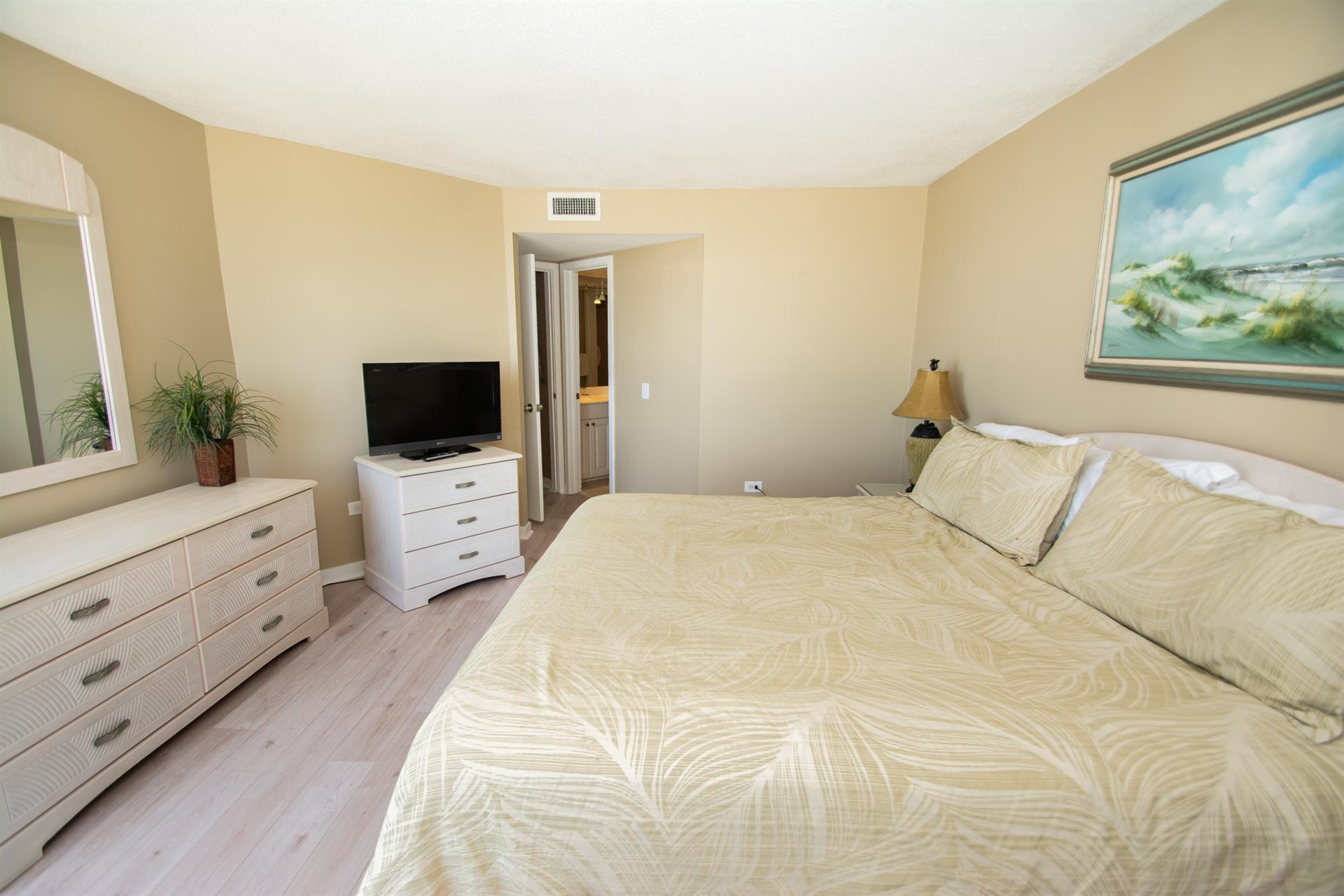 In the master bedroom in this North Myrtle Beach vacation rental, you will find a queen-size bed with access to a private ocean view balcony! In the master bathroom, you will find a spacious two-sink vanity area with a standup glass shower.