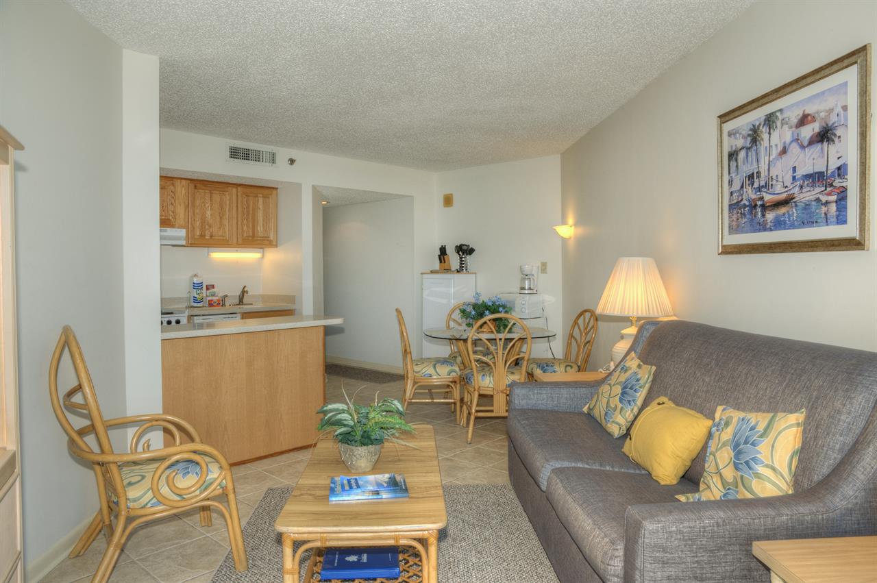 In the master bedroom, you will find two double-size beds with an attached vanity and private bathroom! In the master bathroom, there is a shower/bath combo. There is a sleeper sofa available in Ocean Forest Plaza 1204. This comfortable Myrtle Beach condo can host up to four guests!