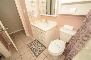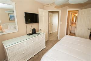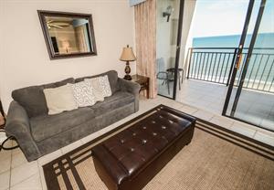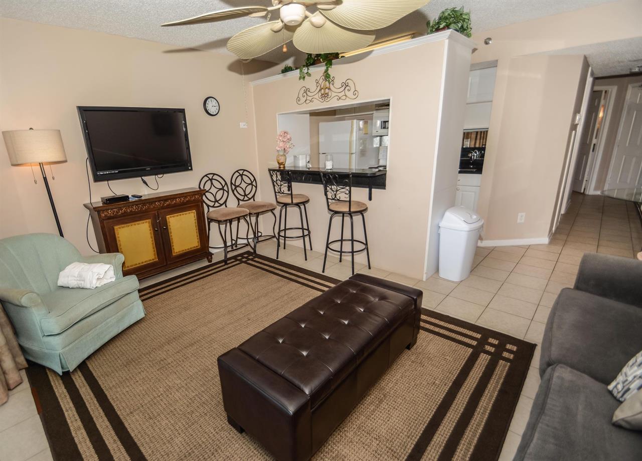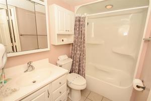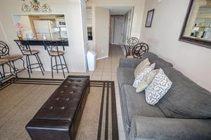 In Ocean Forest Plaza 1611, you will find a king-size bed with an attached vanity, a bathroom with a shower/bath combo, and a sleeper sofa. This comfortable Myrtle Beach condo can accommodate up to four guests.