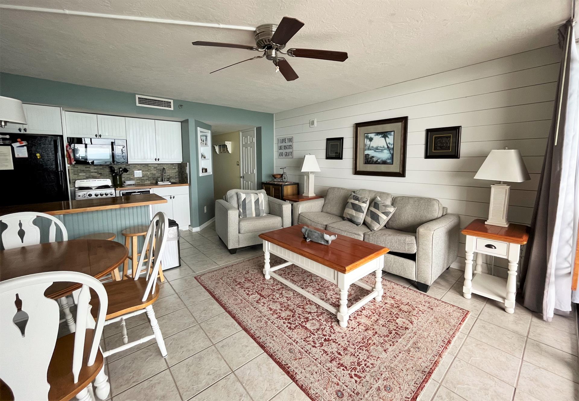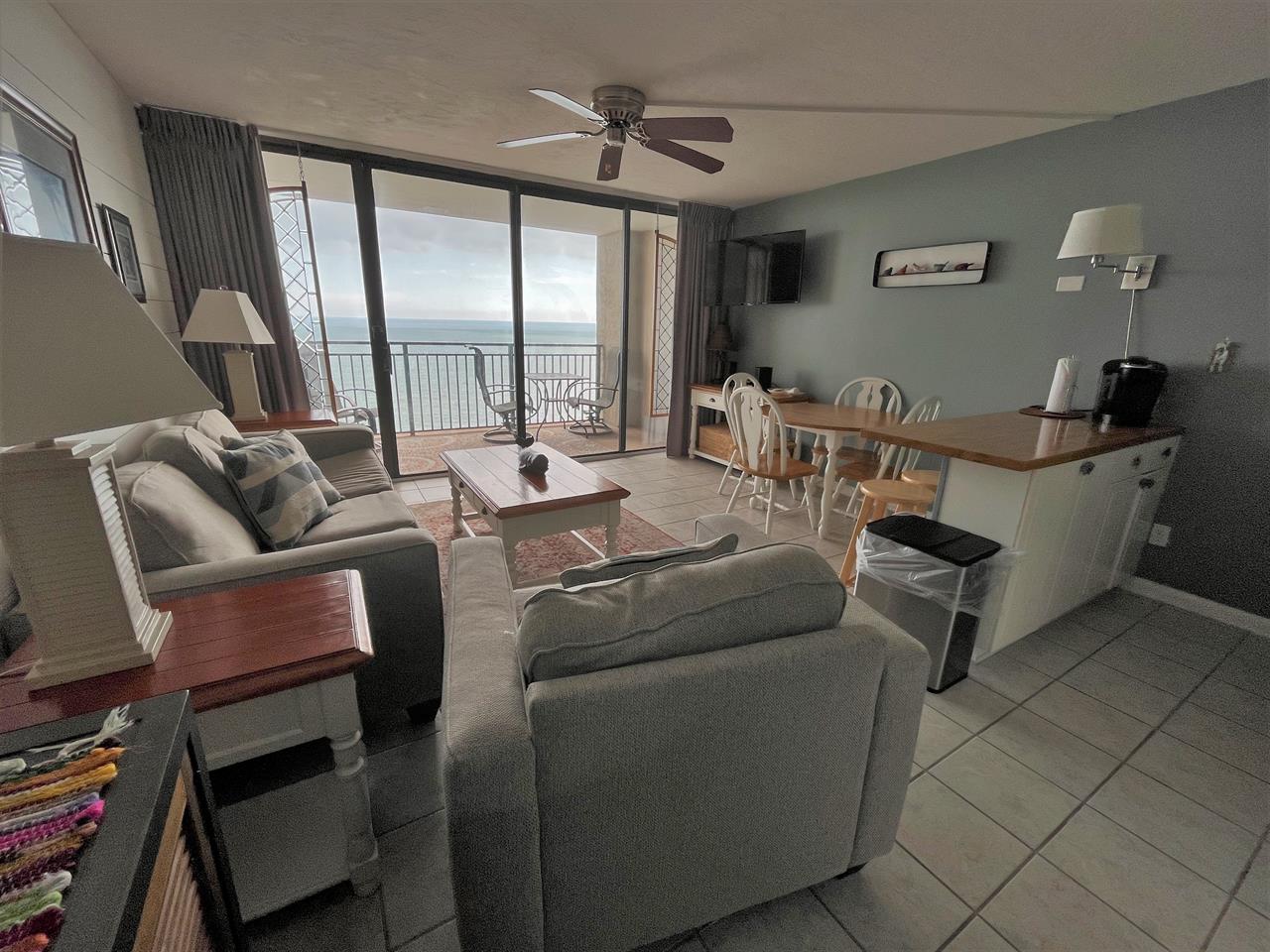 The master bedroom has a beautiful king-size bed with an ample amount of space for your belongings. There is a full bathroom that is accessible through the master bedroom and living area. Fully equipped kitchen. But the best place to be is on the patio of Ocean Forest Plaza 2011! It offers views up and down the coast with wonderful sounds of the ocean waves crashing the beach. You will feel right at home in this comfortable condo!