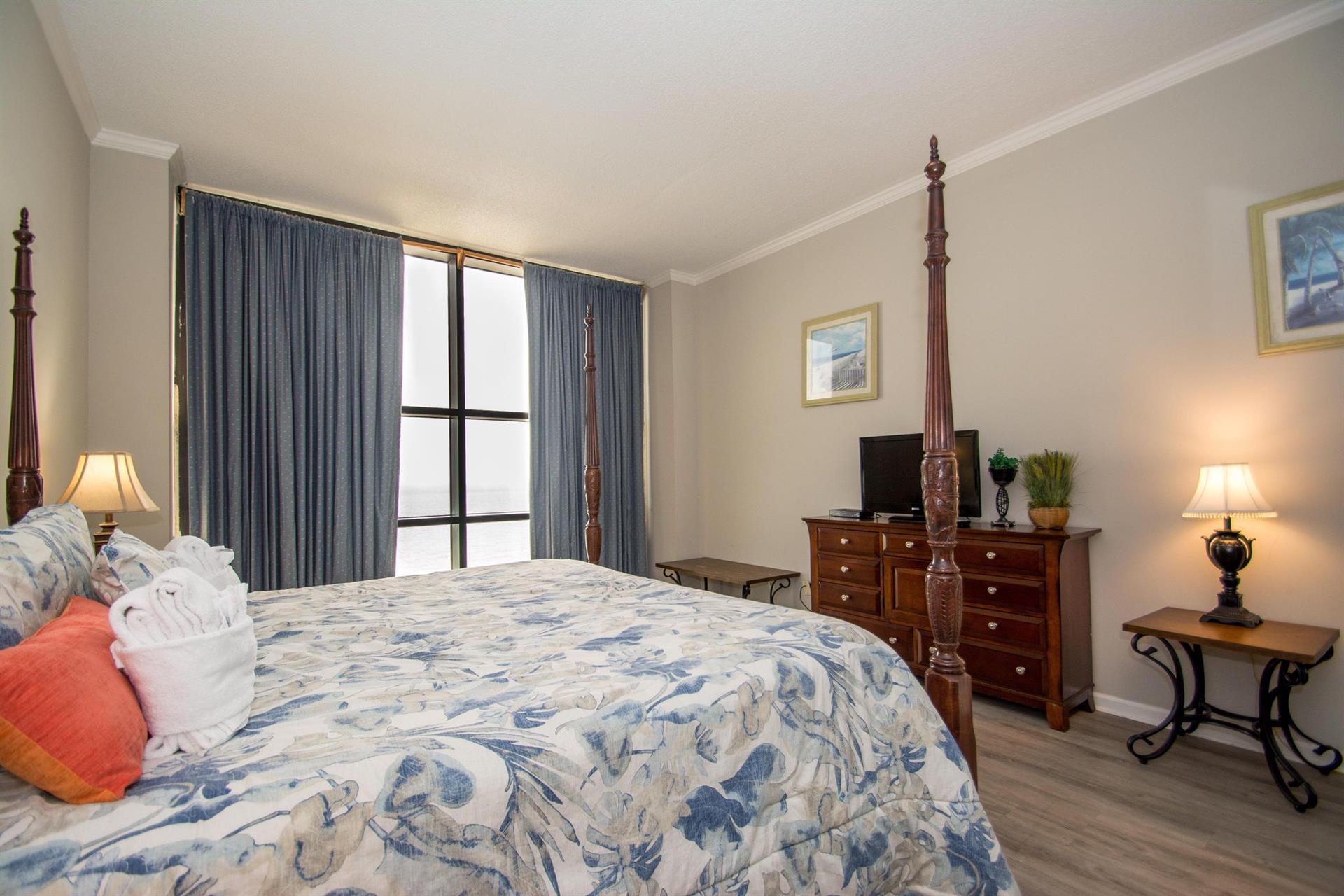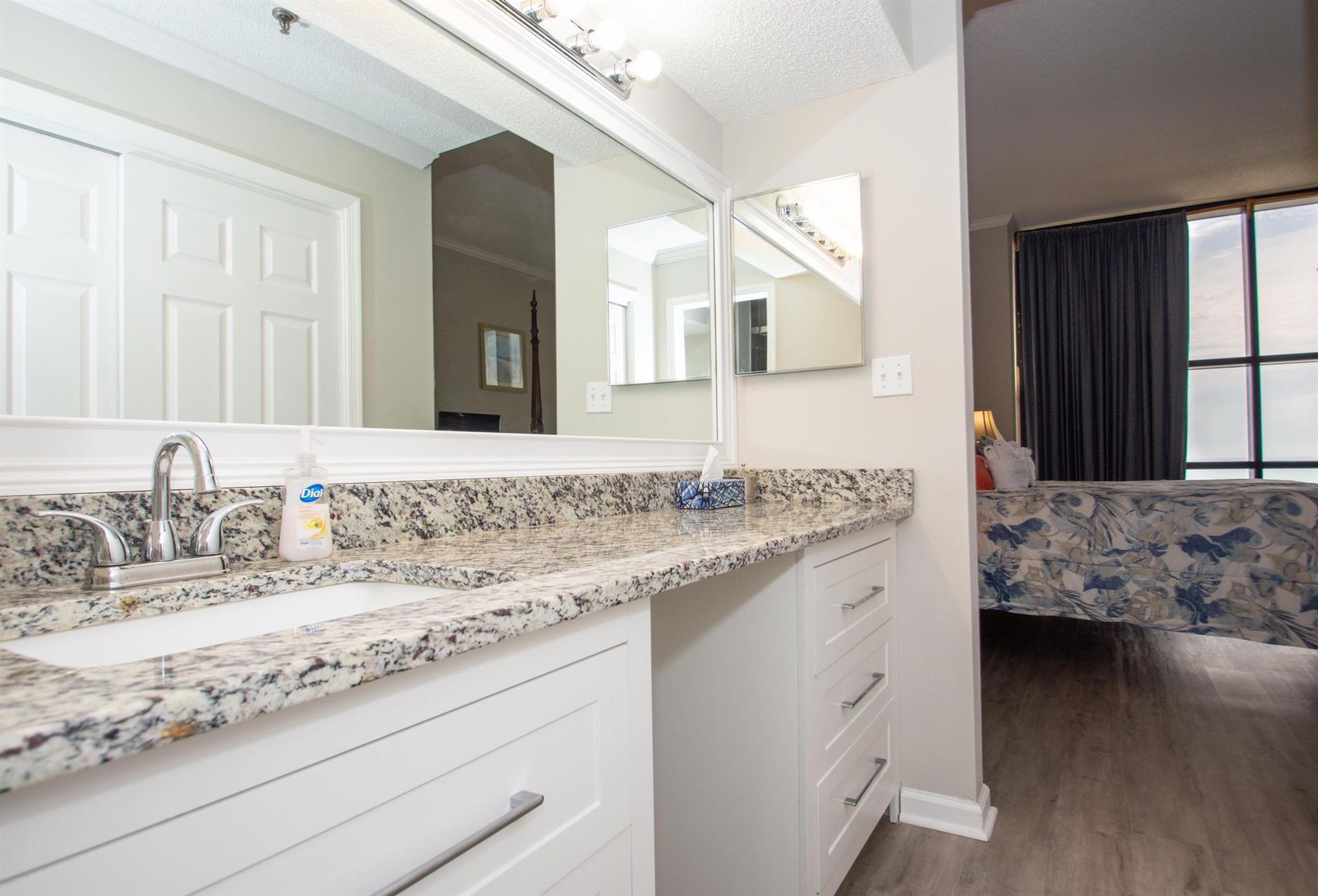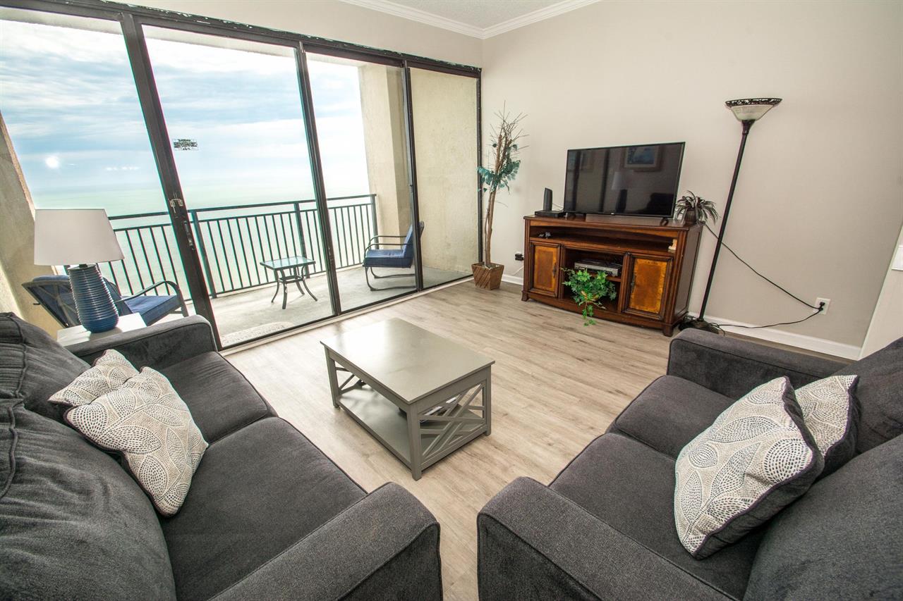 Located on the 23rd floor in the “cabana district” this condo was right on the ocean overlooking the beach. The huge bedroom window was amazing for waking up to the sunrise every morning. The bedrooms are spacious and the kitchen and living room were good. Check in with Palmetto was quick and easy, very friendly people.