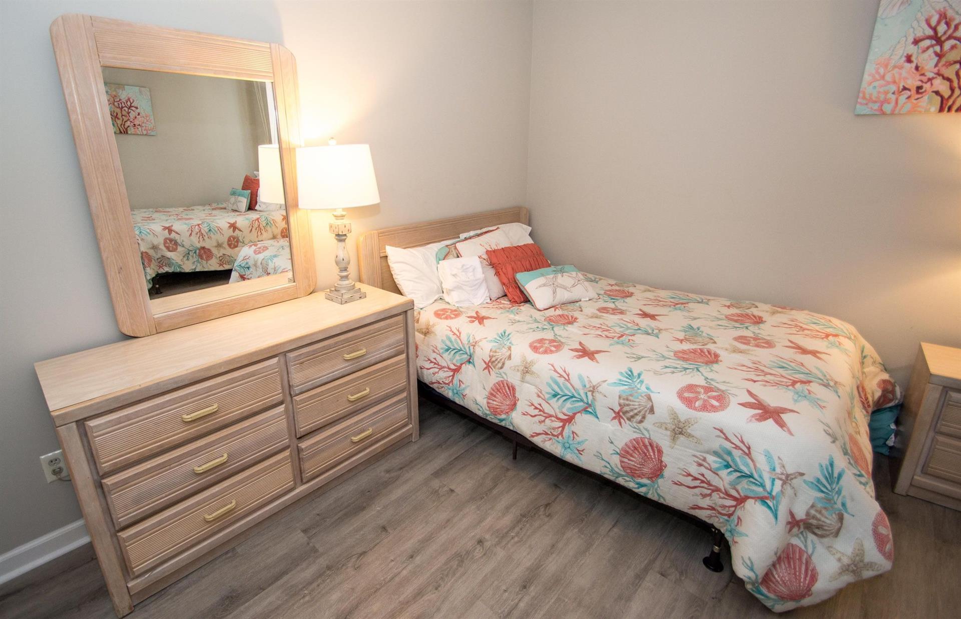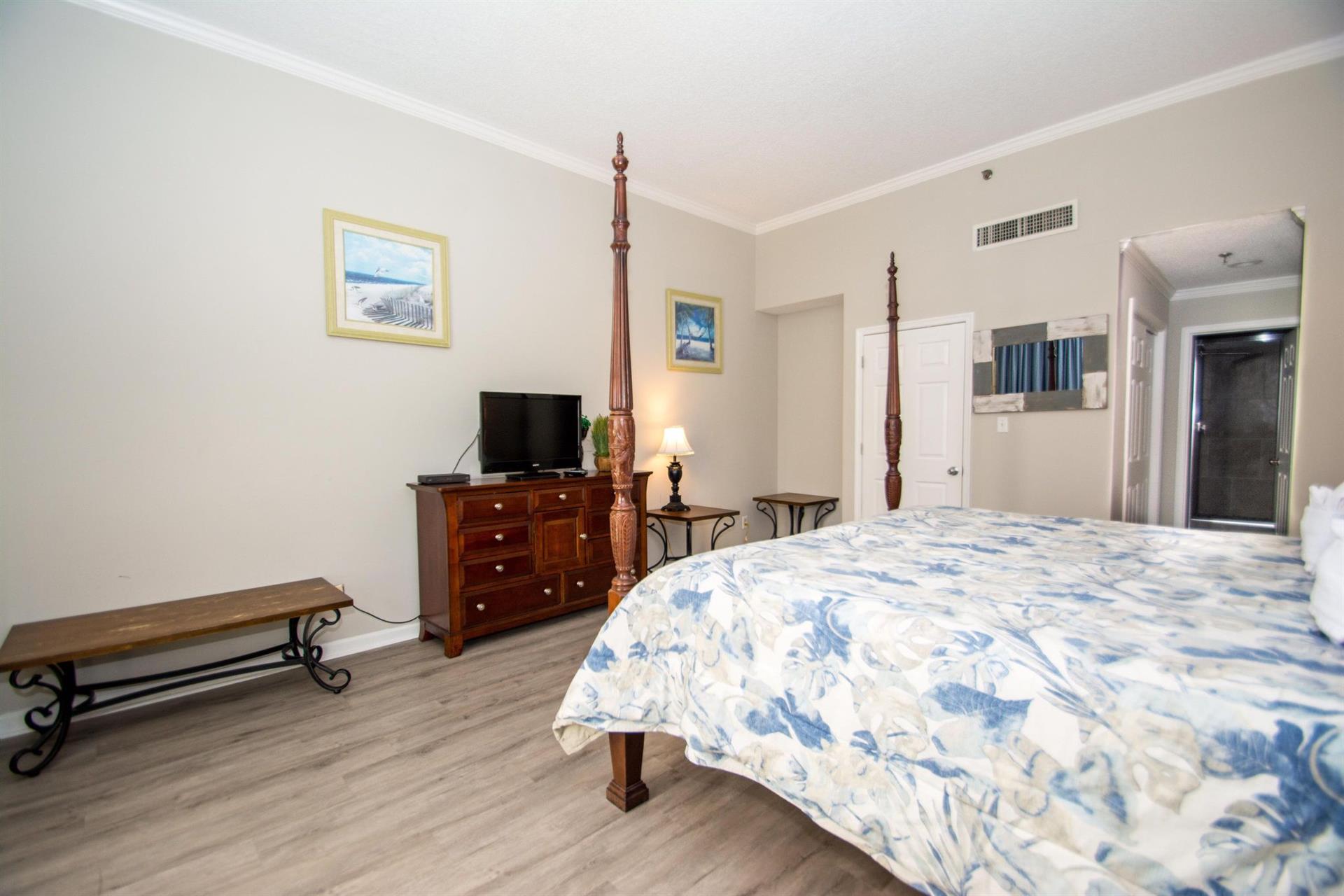 The rental was nice with a Gorgeous view from the living area as well as the Master bedroom. There needs to be a few updates. One being the beds. They were very noisy. They need to be replaced. We couldn’t get the television to work in the living area. During my stay we had an category 1 Hurricane. The place held up well. We loss power and water over night. No fault of Palmetto rentals. Everything was restored quickly. I will return once the beds are updated. Great place. Roomy and a home away from home. 1 minute from beach access.
