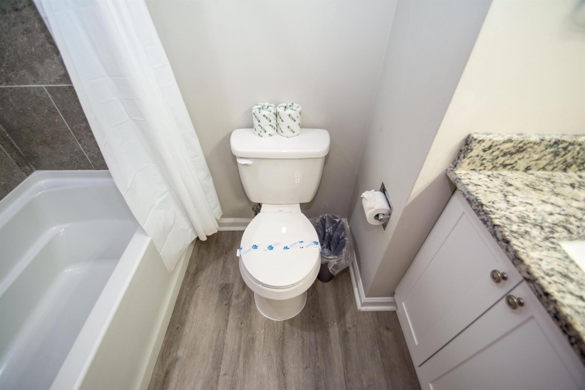 The unit was fantastic! We loved that there were 2 bedrooms in the unit, and that there was space for us all to have our own space during down time. The 4 things that we had complaints about are: 1) We were surprised that there was not any toilet paper in one of the bathrooms. With a 5 day stay, there was not enough toilet paper. 2) The garbage can is tiny. I would recommend one that is at least twice the size and would recommend providing garbage bags. 3) The sheets for the king bed did not fit the bed. The sheets came off every time we got on the bed. 4) We were very bummed that the pool was closed. This was a major bummer for our family.