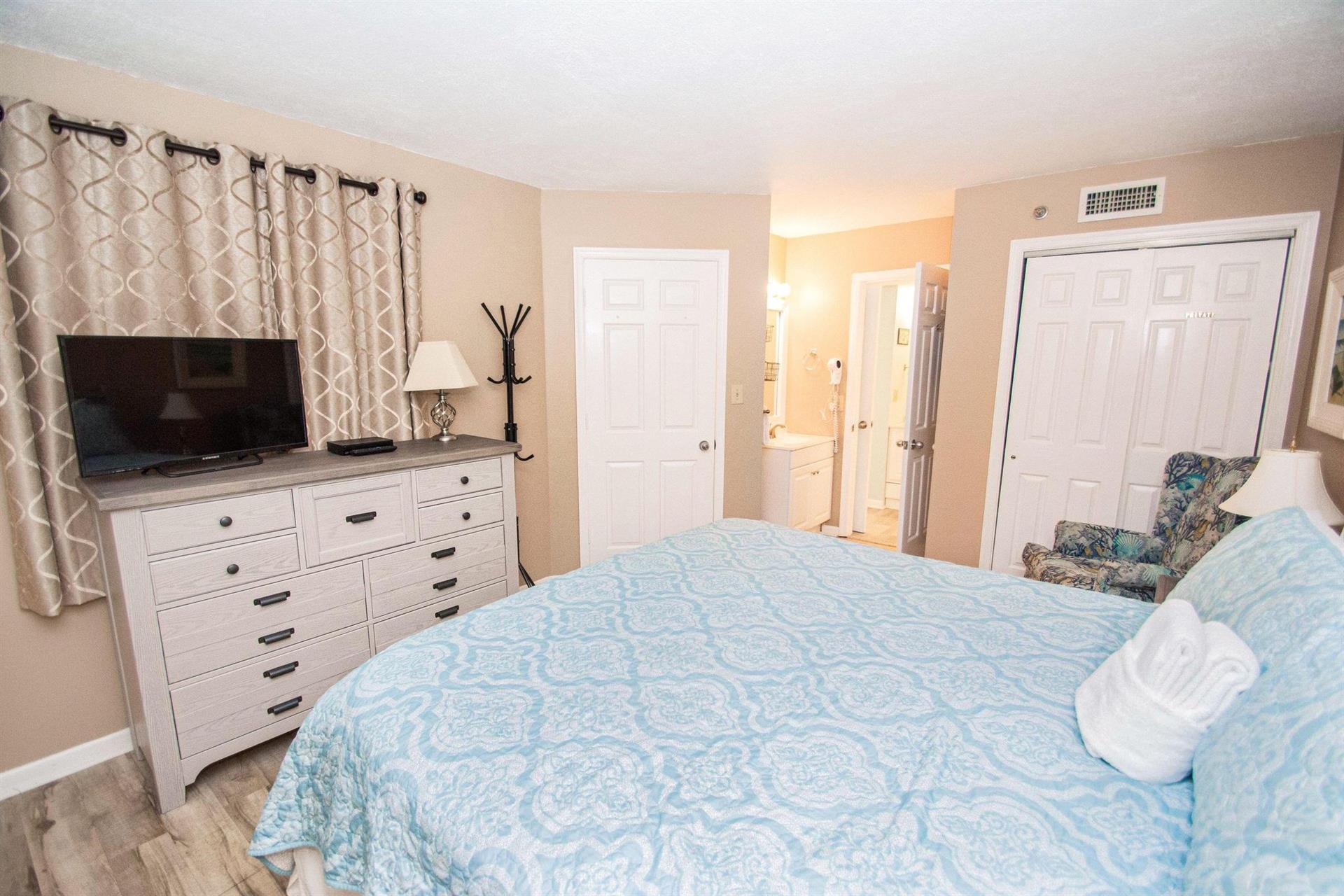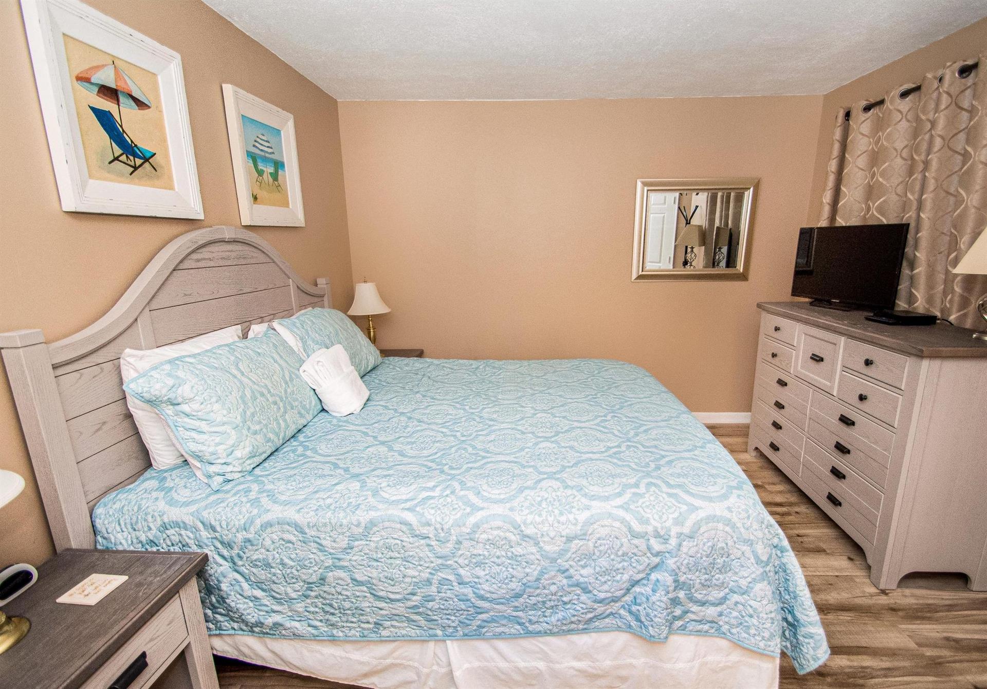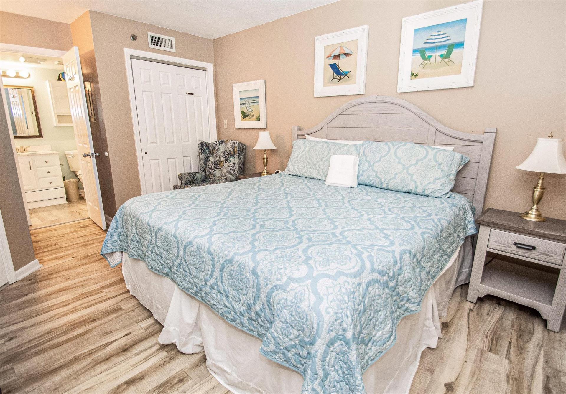 In the master bedroom, you will find a king-size bed with an attached vanity and private bathroom! In the master bathroom, there is a beautiful stand-up shower! There is a sleeper sofa available in Ocean Forest Plaza 609. This comfortable Myrtle Beach condo can host up to four guests!