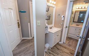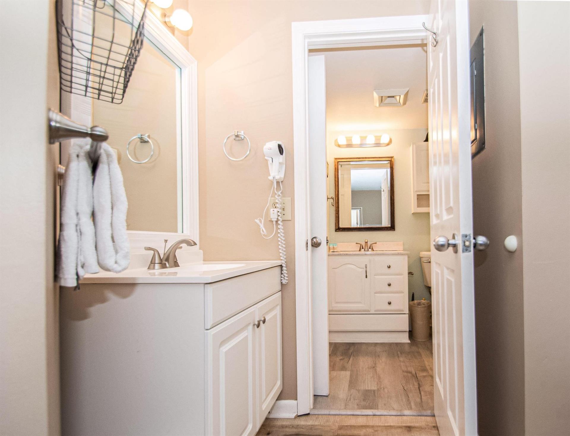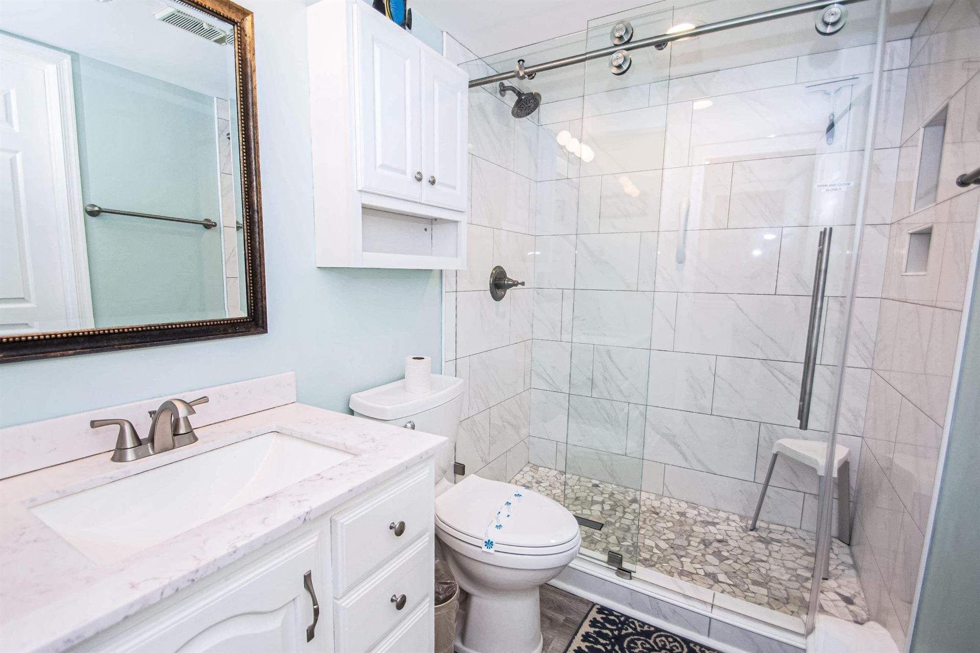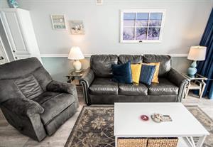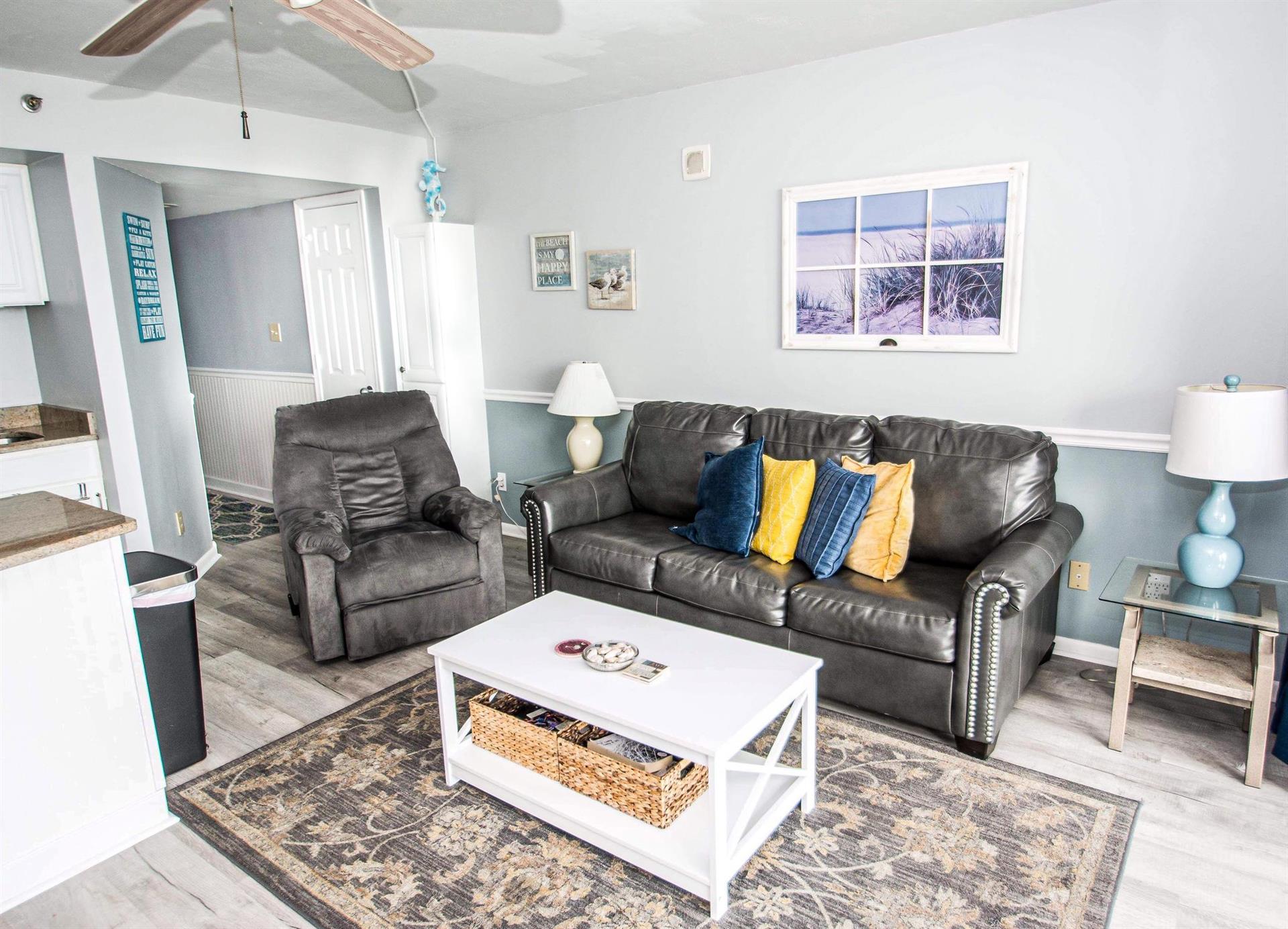 In the master bedroom, you will find a king-size bed with an attached vanity and private bathroom! In the master bathroom, there is a beautiful stand-up shower! There is a sleeper sofa available in Ocean Forest Plaza 609. This comfortable Myrtle Beach condo can host up to four guests!