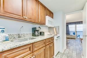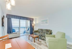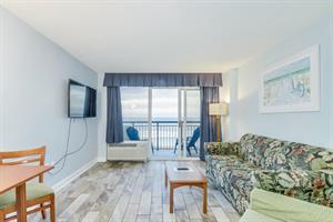 About This beautiful 1 bedroom condo with a private balcony is located straight on the ocean in the heart of Myrtle Beach, SC. This lively condo has a bright and cozy living, dining area with lots of sitting space and a great kitchen with wood cabinets. You'll be either steps or a short ride away from a vast array of attractions, restaurants, and shops, including Broadway at the Beach, Pelicans Baseball Stadium, Nascar Speed Park, Pavilion Nostalgia Amusement Park, and the Convention Center.