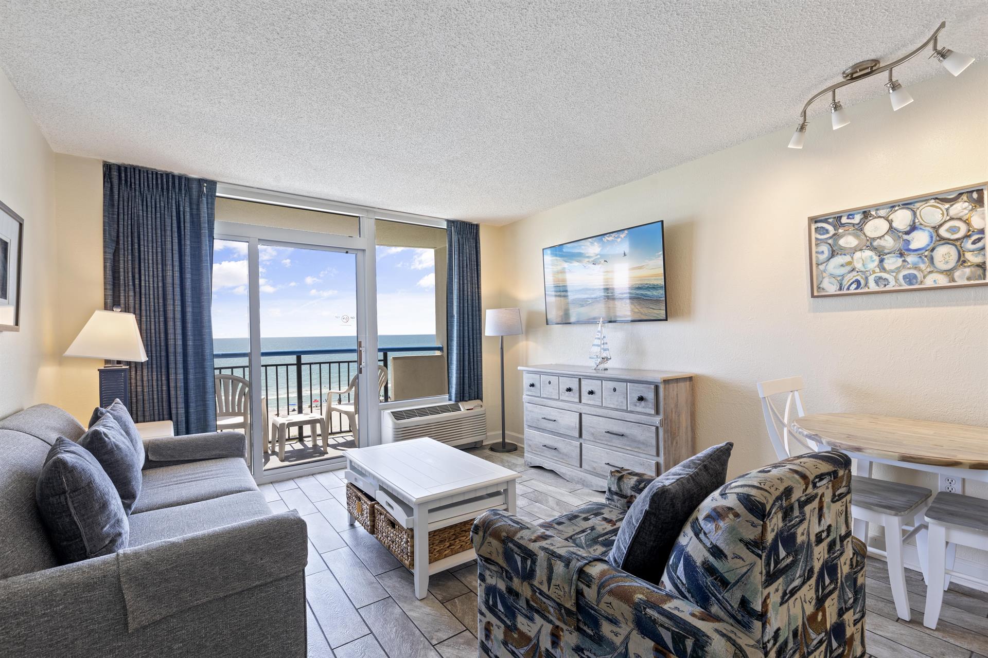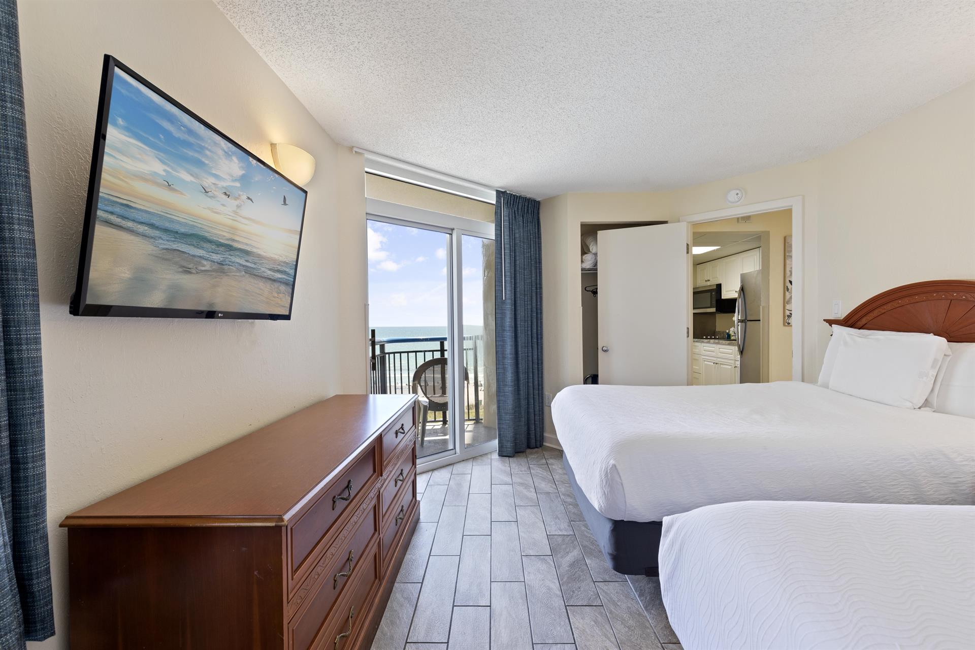 About This is a larger end unit, oceanfront condo with 677 sq. ft. of room. It features a private master suite with a full bath and a side balcony, so you don't have to walk through a bedroom to get to the kitchen like most units. Having a second full bath with tub/shower is the ultimate in privacy and convenience.