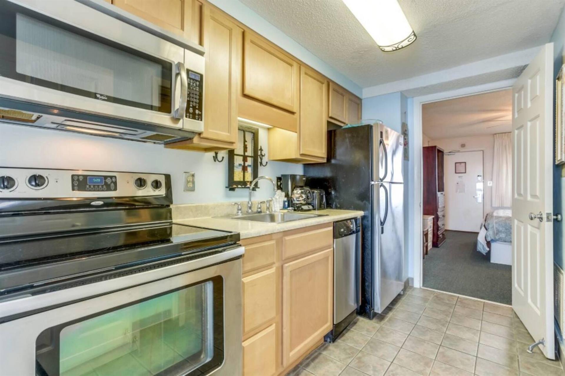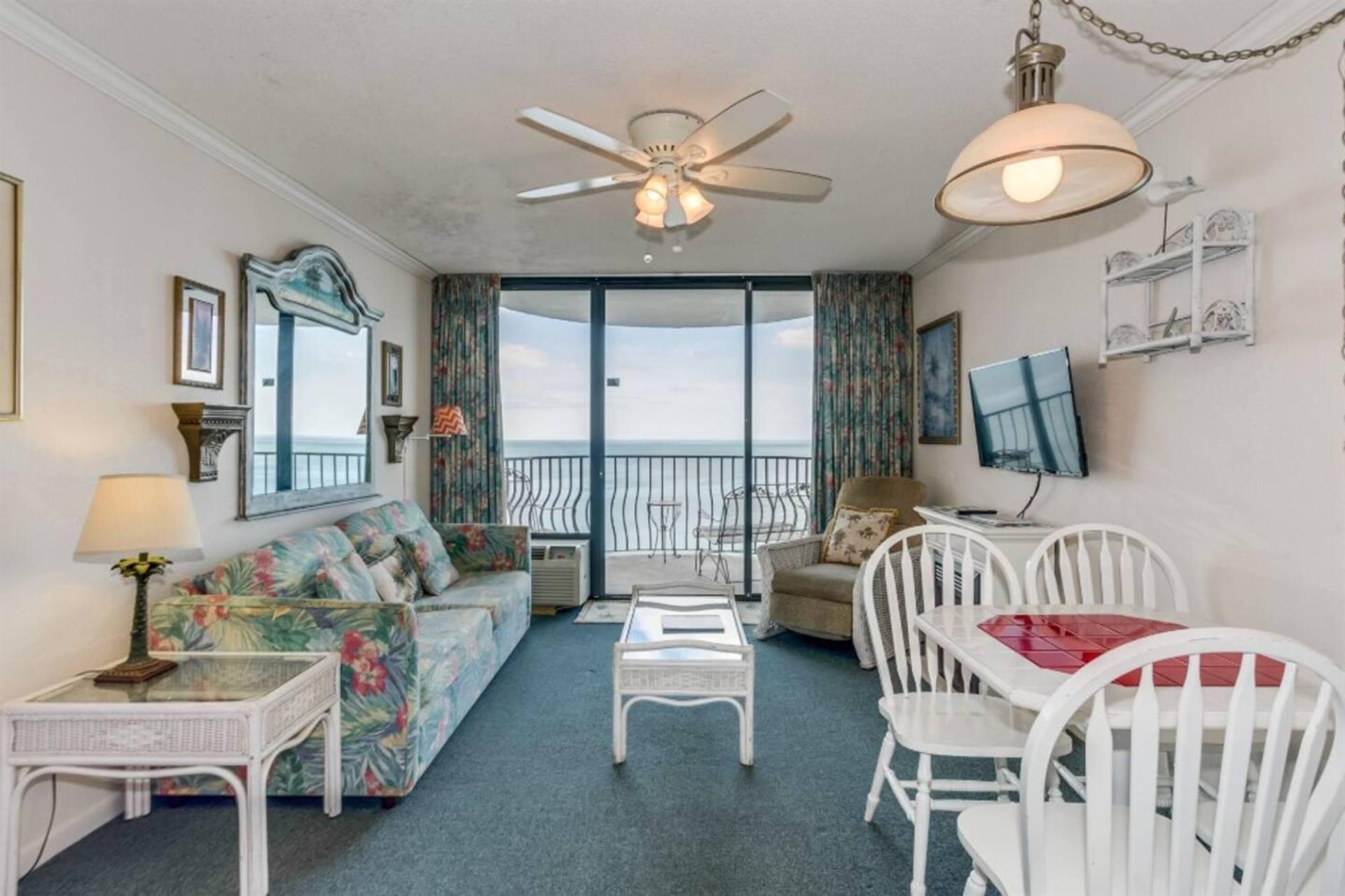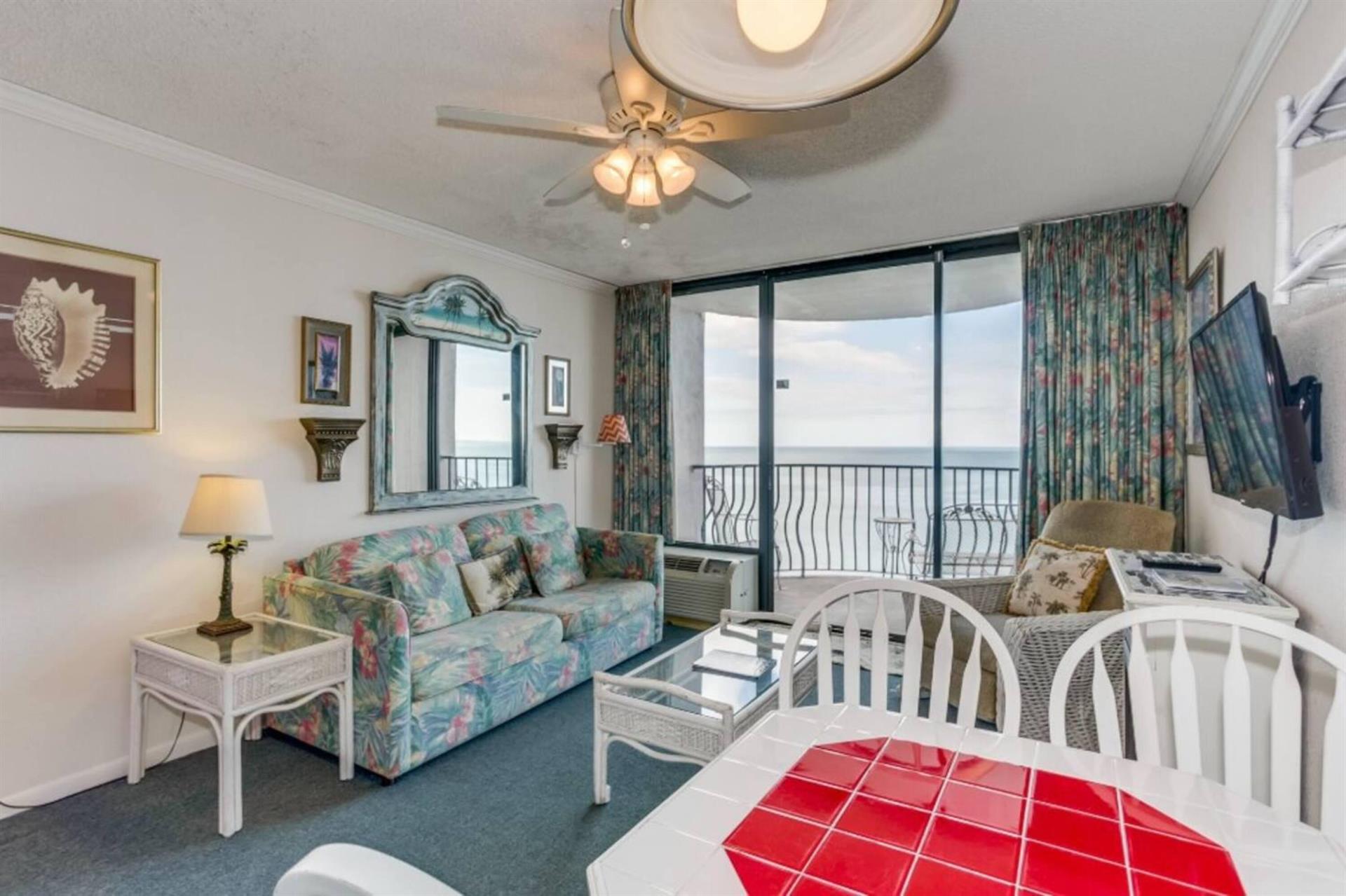 Your oceanfront 1 bedroom, 1 bathroom condo comes with a furnished balcony, a living room with a sleeper sofa and a murphy bed, a fully equipped kitchen with cookware and dishes.Features and amenities • Indoor/ Outdoor pool