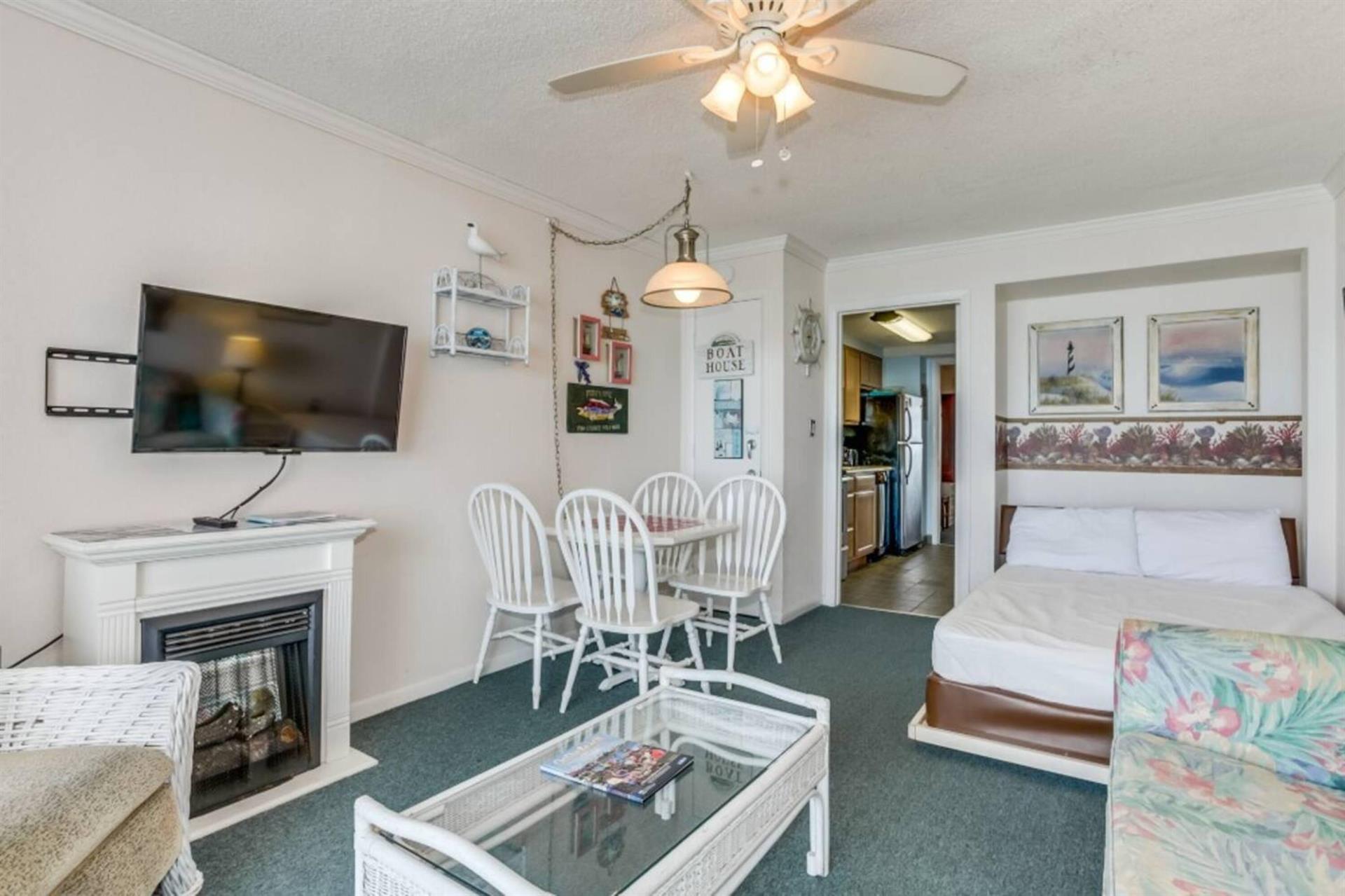 • Flat TVParking • Garage parking across the street is only for one carThings to know • Please note: Coastline Pest Control performs preventative treatments in every unit on the 3rd Tuesday of each month. This is mandatory to insure you have a wonderful stay and to make sure you do not take home any unwanted guests. Thank you for your patience and understanding!
