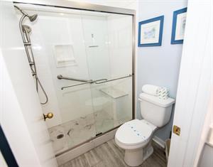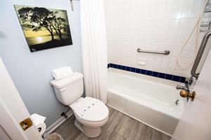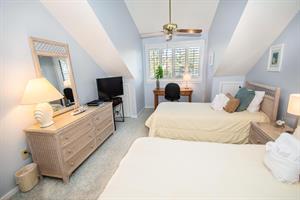 In the master bedroom at West Hyde Park 2-E, there is a large king-size bed with a full bathroom attached. The master bathroom has an extended vanity area with a private shower/tub area. In the second bedroom, there are two twin-size beds with a flat-screen television and an ample amount of space for your vacation belongings. The second bathroom has a bath/shower combo. This unit is a ten-minute walk to the beach.