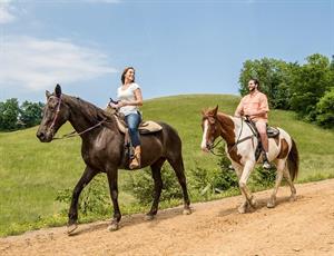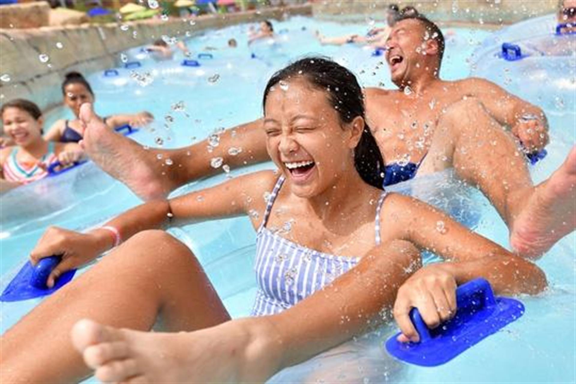 Forge, driving over a picturesque bridge and past the tranquil outdoor pool,