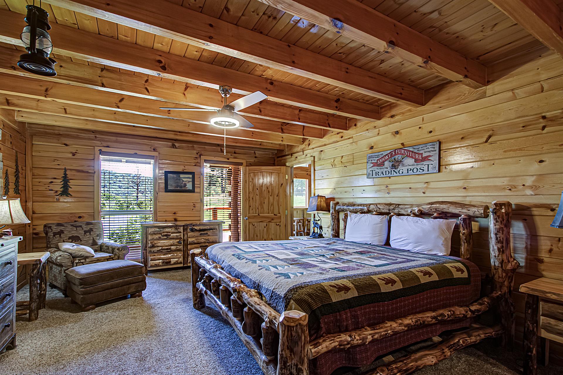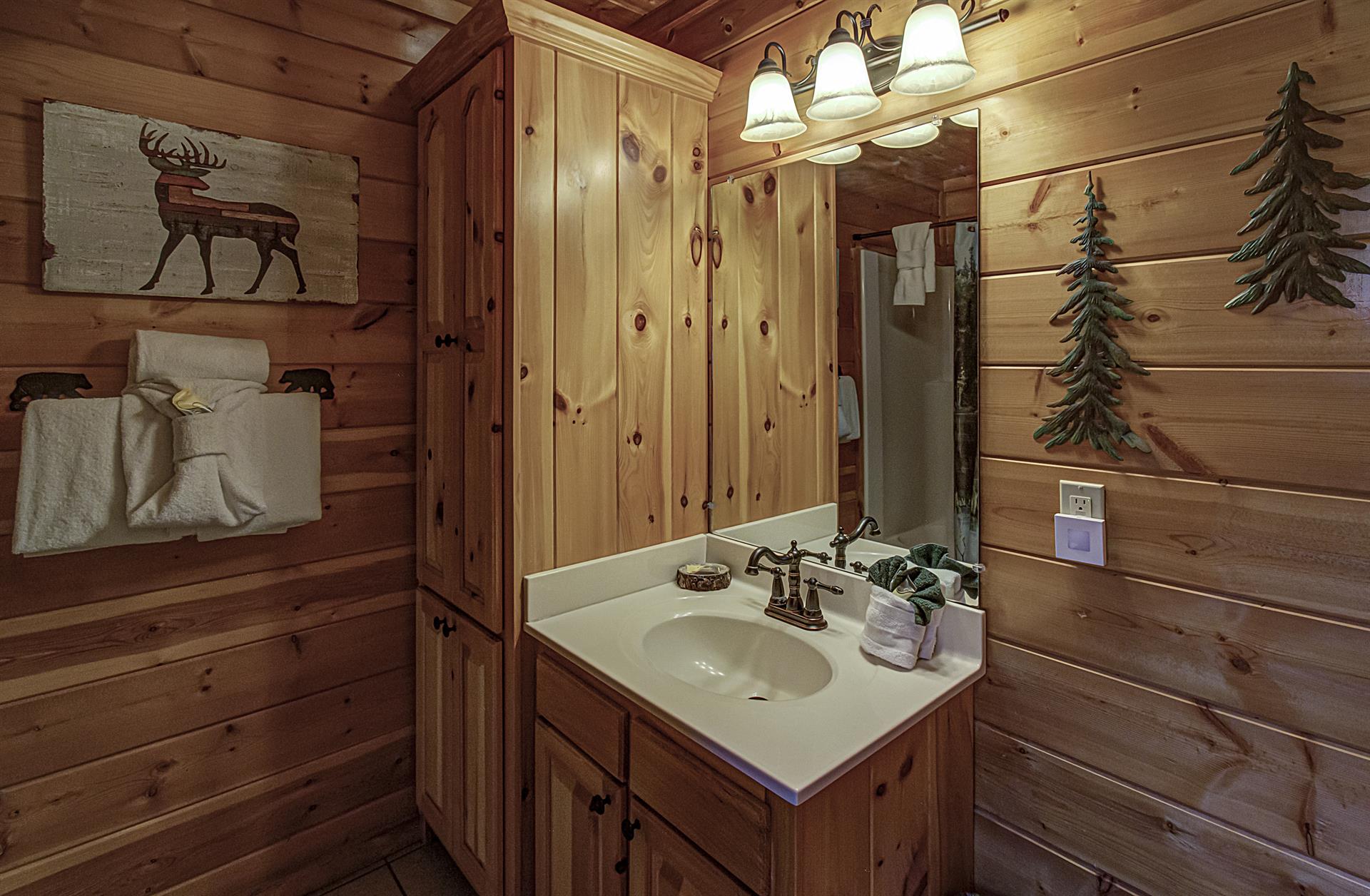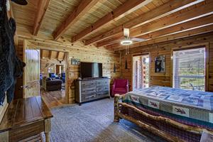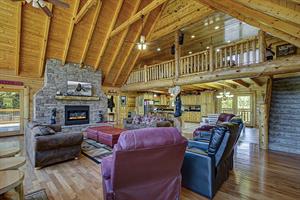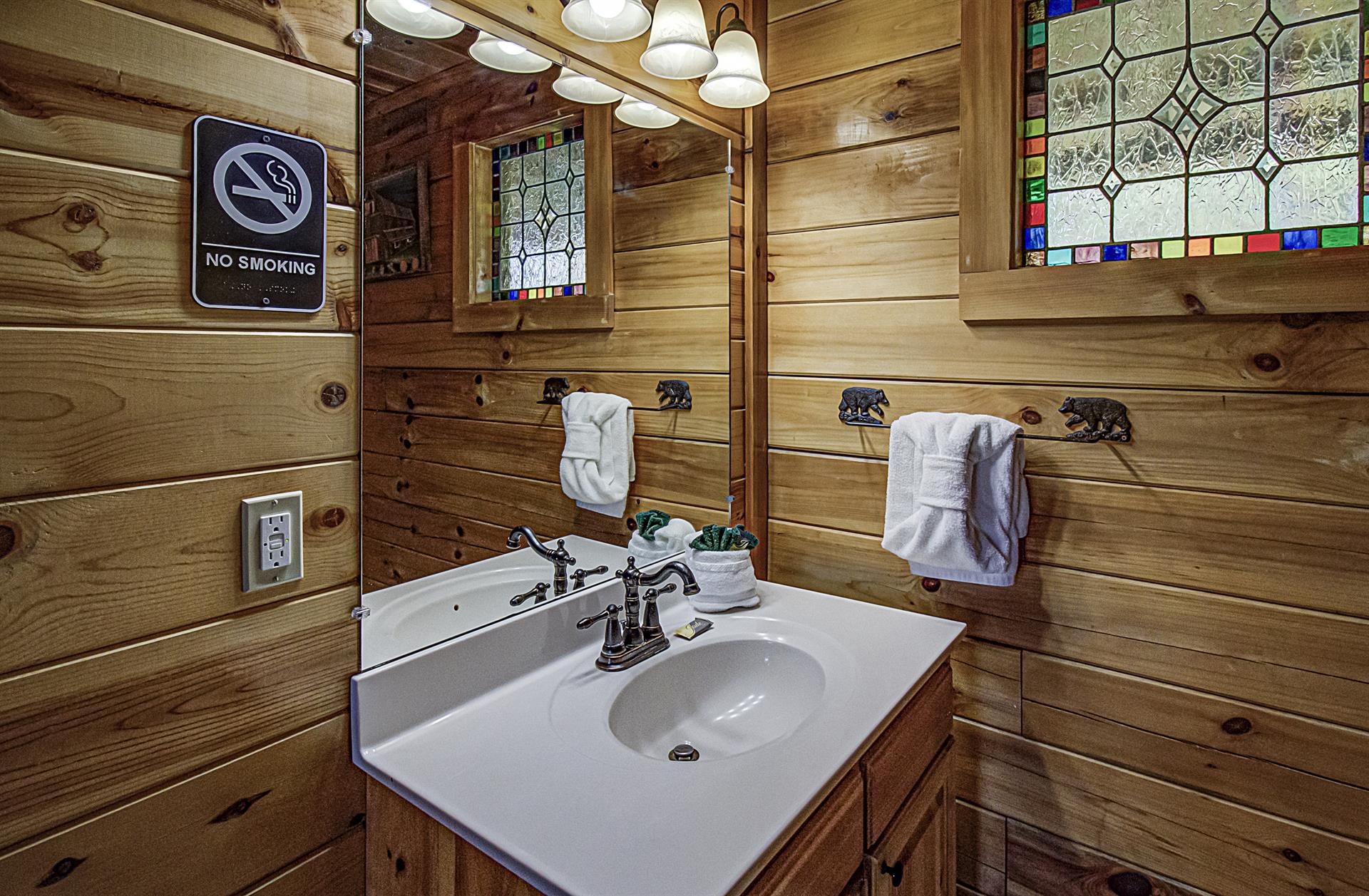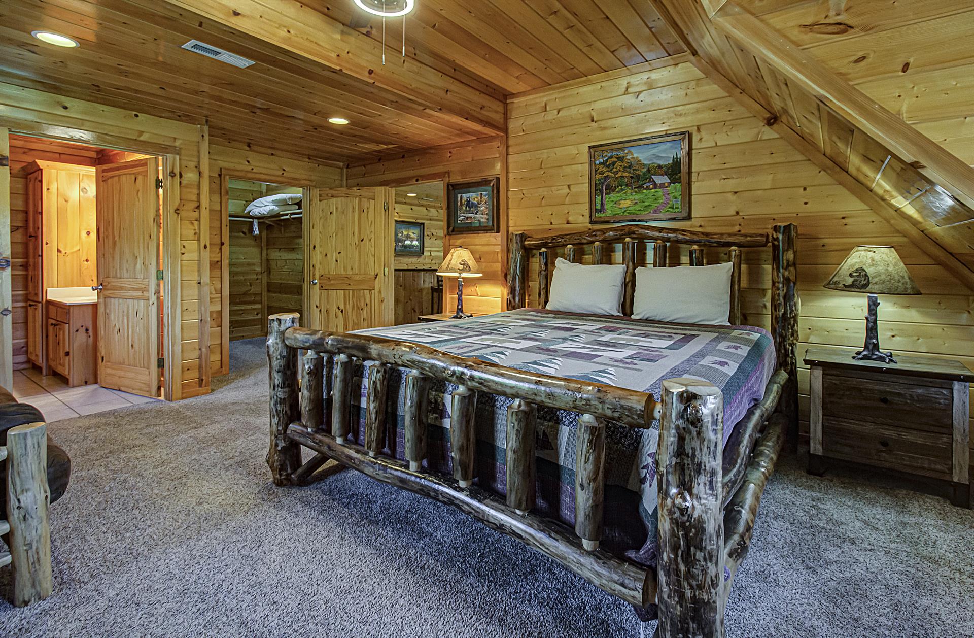 Your Dream vacation starts here with this beautifully decorated, spacious 4 bedroom cabin with all King size Log beds, offering 4 full bathrooms and 2 half bathrooms. Always Dreaming is exactly what you've been dreaming of when you imagine a Smoky Mountain Vacation. Offering a ramp-style entry way for easy access. Oversized for wheelchair accessibility. This luxury cabin is just minutes from Downtown Pigeon Forge and Dollywood. This cabin is furnished with spectacular furniture and all the amenities including HD Cable, High Speed Internet with WIFI. Enjoy the spacious luxury seating in the living area on the main floor with a huge Flat screen TV that sits above a beautiful contemporary indoor fireplace with color changing flames for year-round enjoyment and a sleeper sofa. Features a full kitchen with stainless steel appliances and granite counter tops with an Eat in Bar for extra seating that is adjacent to the Dining Room with a beautiful wood table and chairs. There are also 2 King bedrooms with ensuites on the main floor and a large laundry room with folding table, iron, and ironing board provided. Upstairs you can enjoy the game room equipped with a Pool Table and Bar and for your enjoyment! A futon is located in the game room with a half bath. Two King suites are located on the second floor too, one also has a futon. You may also enjoy the outdoor private covered hot tub and a spacious deck area with Rocking Chairs, a Park Grill located on the concrete outdoor patio area with seating for up to 12 guests, and a fire pit for your enjoyment. Let your Dream Begin!. Must be 25 years old to rent.