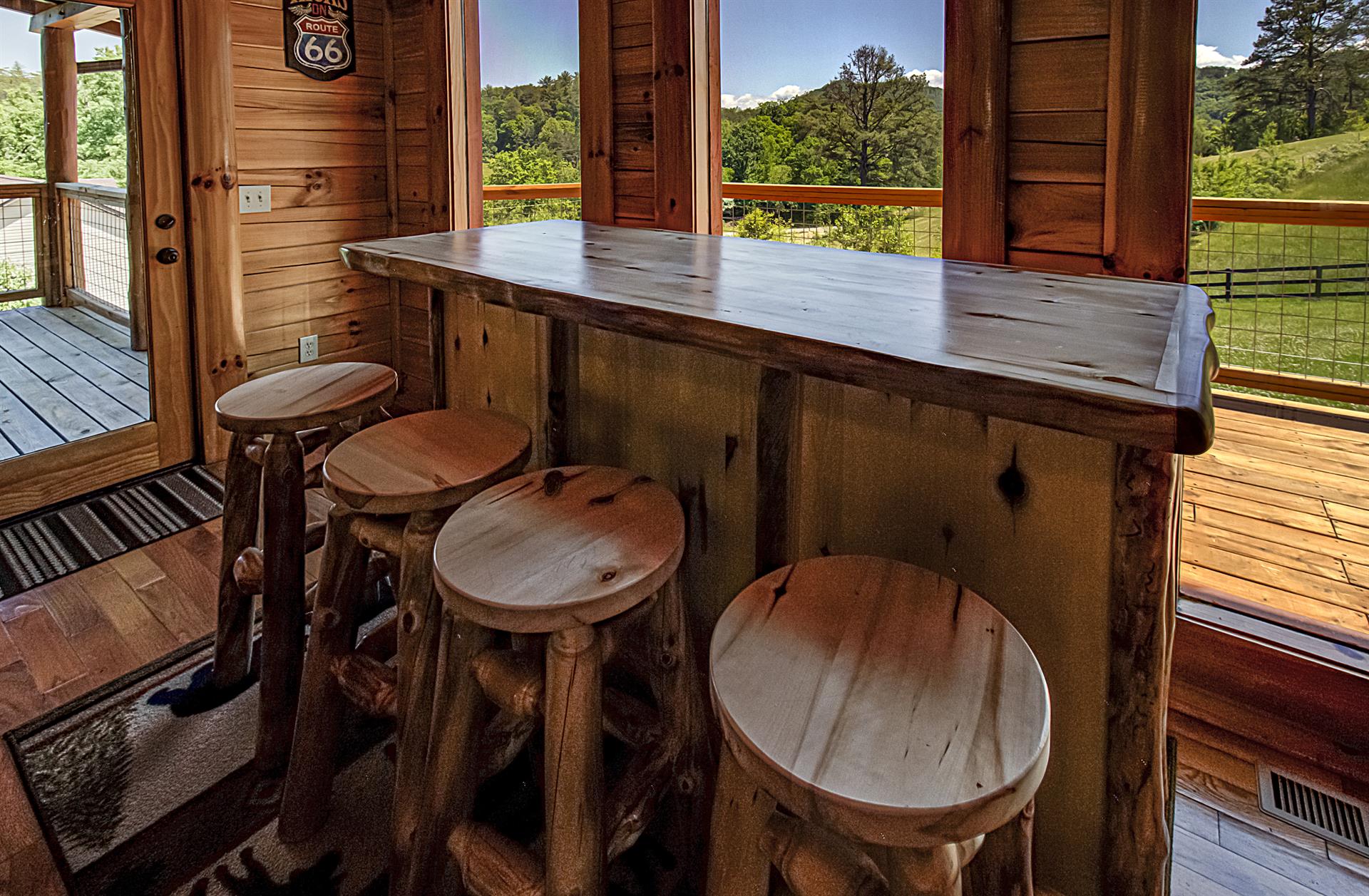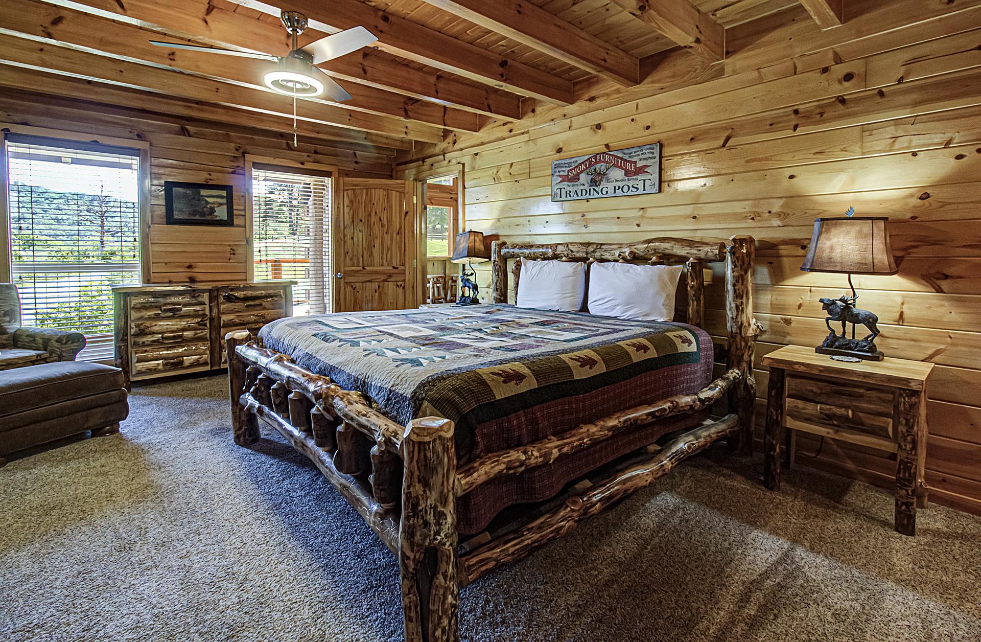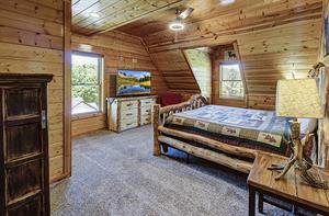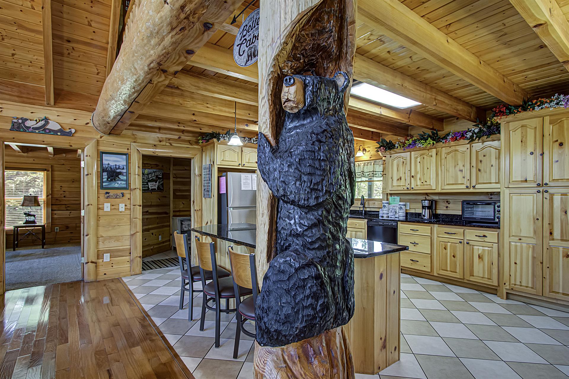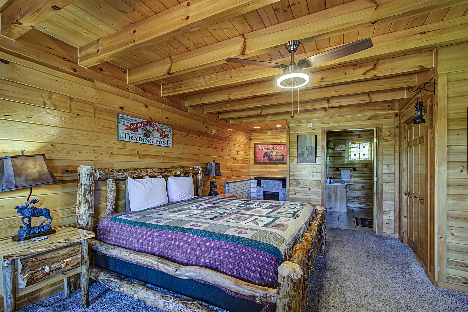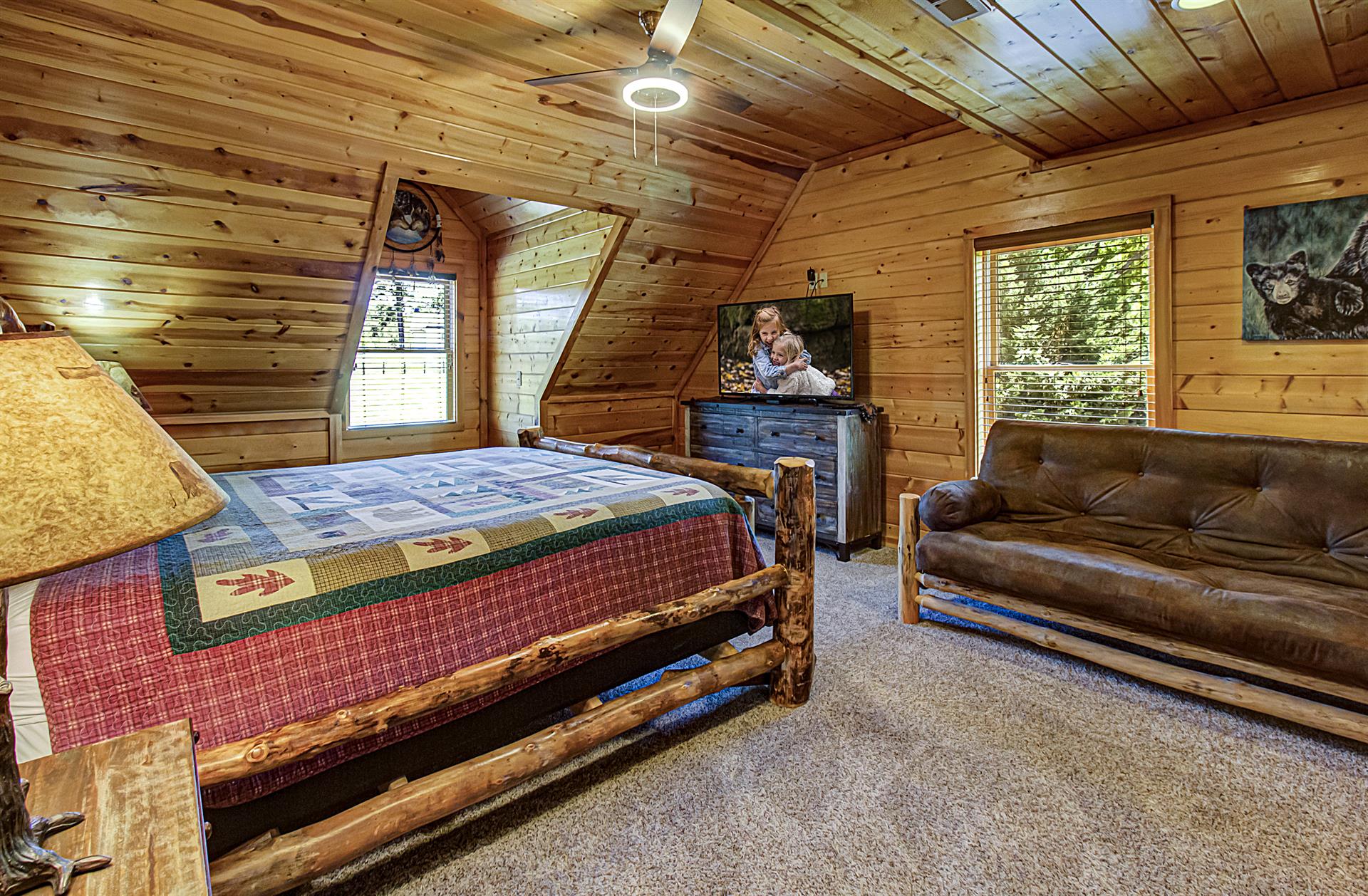 Your Dream vacation starts here with this beautifully decorated, spacious 4 bedroom cabin with all King size Log beds, offering 4 full bathrooms and 2 half bathrooms. Always Dreaming is exactly what you've been dreaming of when you imagine a Smoky Mountain Vacation. Offering a ramp-style entry way for easy access. Oversized for wheelchair accessibility. This luxury cabin is just minutes from Downtown Pigeon Forge and Dollywood. This cabin is furnished with spectacular furniture and all the amenities including HD Cable, High Speed Internet with WIFI. Enjoy the spacious luxury seating in the living area on the main floor with a huge Flat screen TV that sits above a beautiful contemporary indoor fireplace with color changing flames for year-round enjoyment and a sleeper sofa. Features a full kitchen with stainless steel appliances and granite counter tops with an Eat in Bar for extra seating that is adjacent to the Dining Room with a beautiful wood table and chairs. There are also 2 King bedrooms with ensuites on the main floor and a large laundry room with folding table, iron, and ironing board provided. Upstairs you can enjoy the game room equipped with a Pool Table and Bar and for your enjoyment! A futon is located in the game room with a half bath. Two King suites are located on the second floor too, one also has a futon. You may also enjoy the outdoor private covered hot tub and a spacious deck area with Rocking Chairs, a Park Grill located on the concrete outdoor patio area with seating for up to 12 guests, and a fire pit for your enjoyment. Let your Dream Begin!. Must be 25 years old to rent.