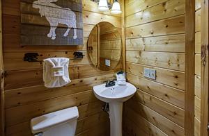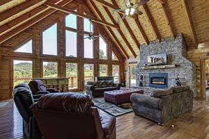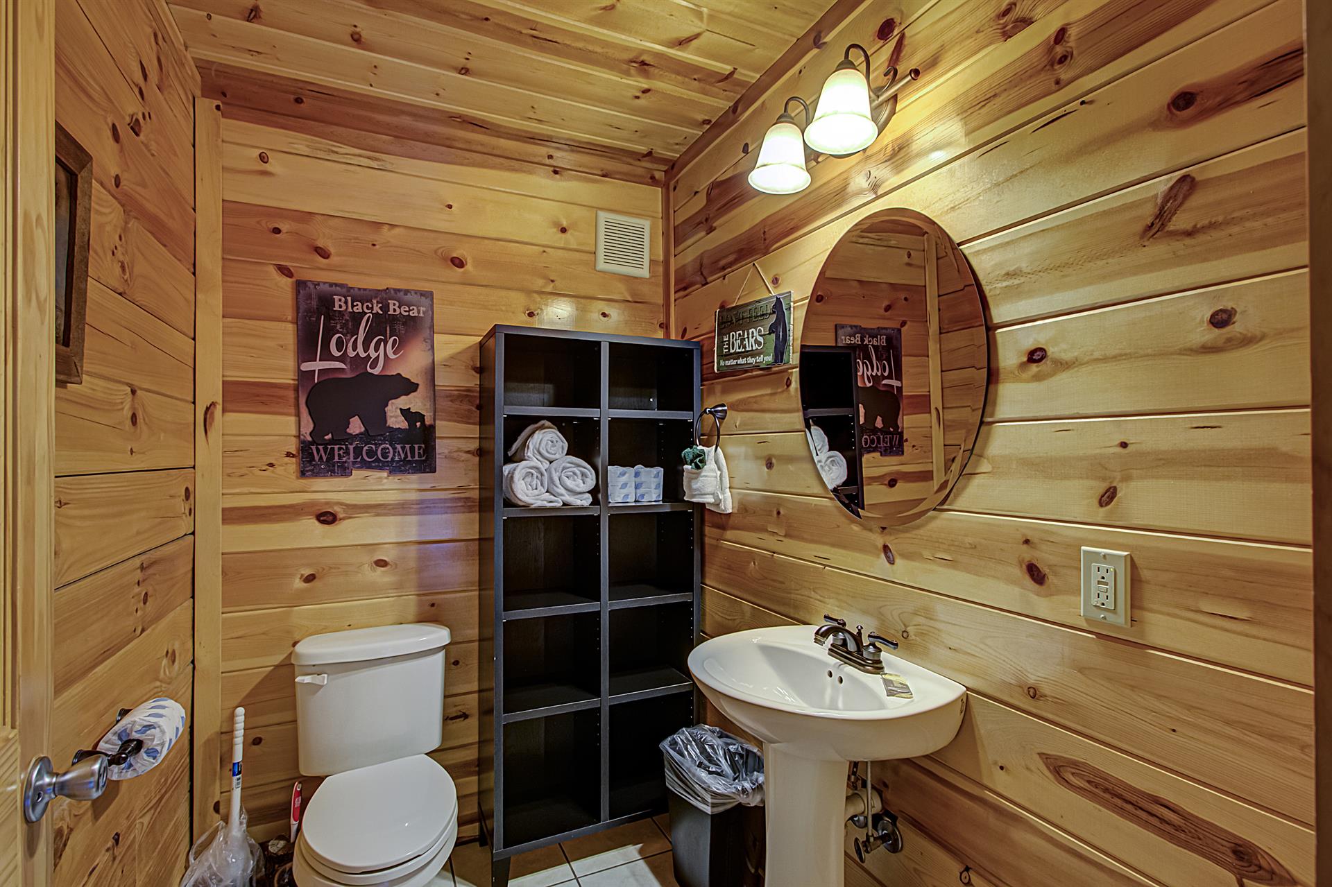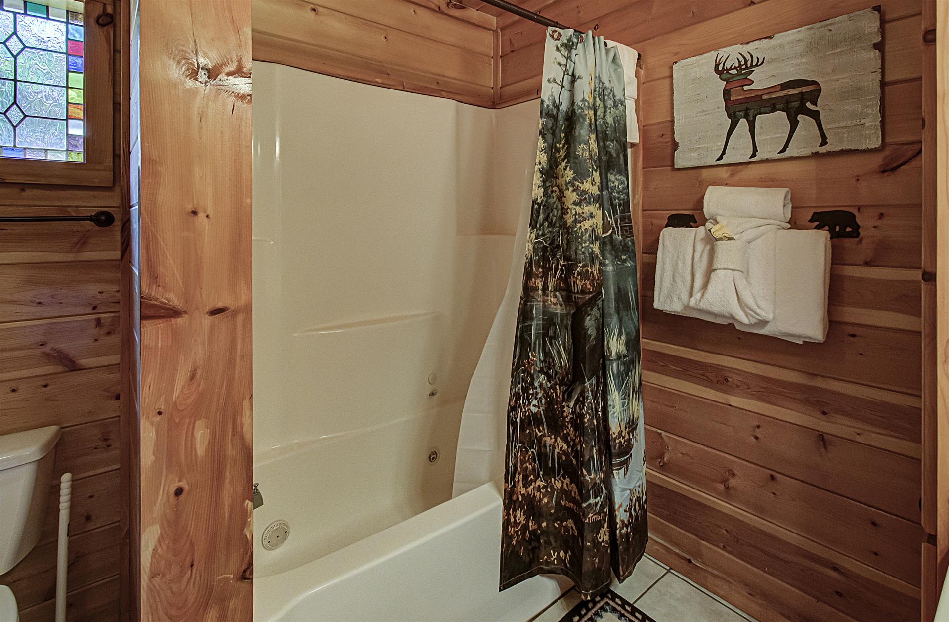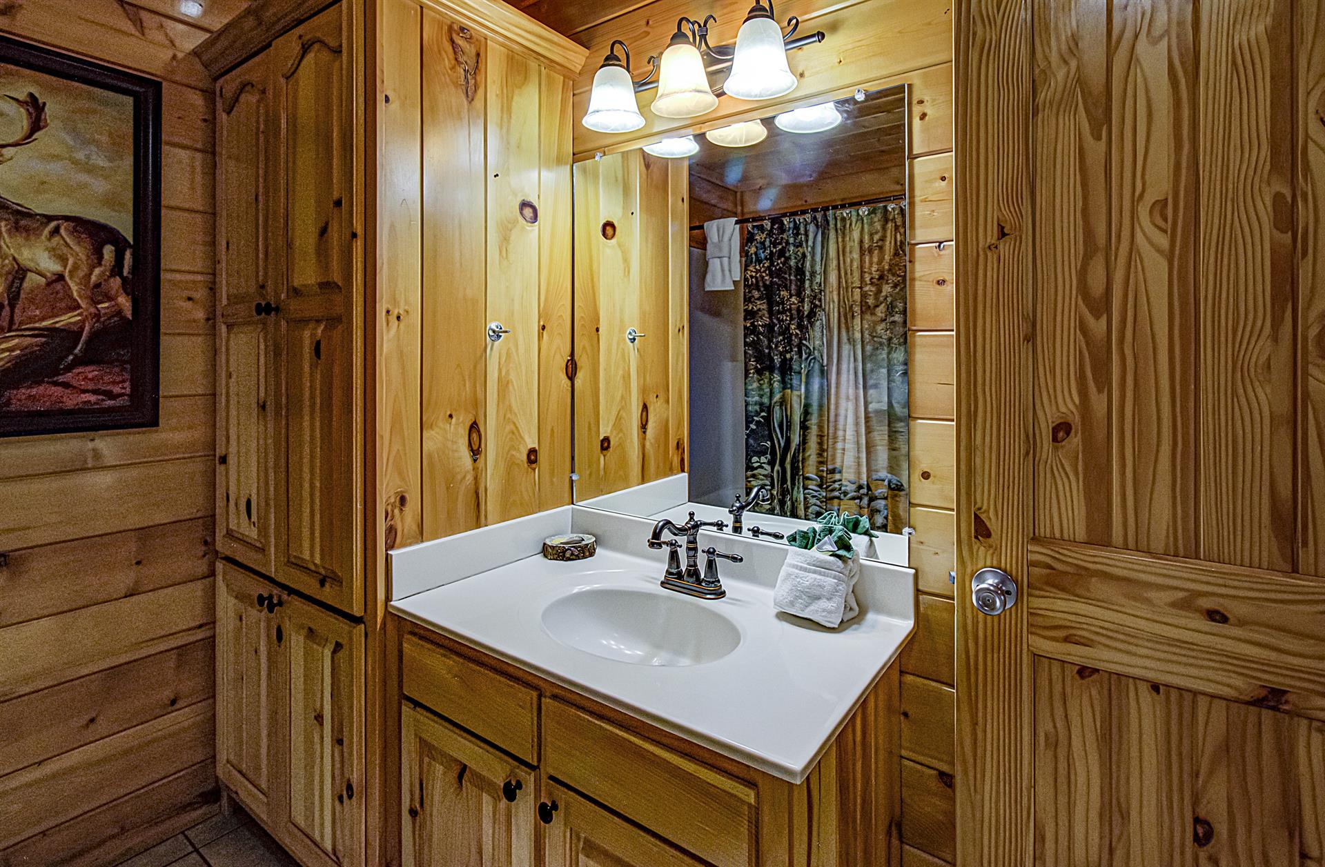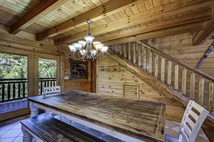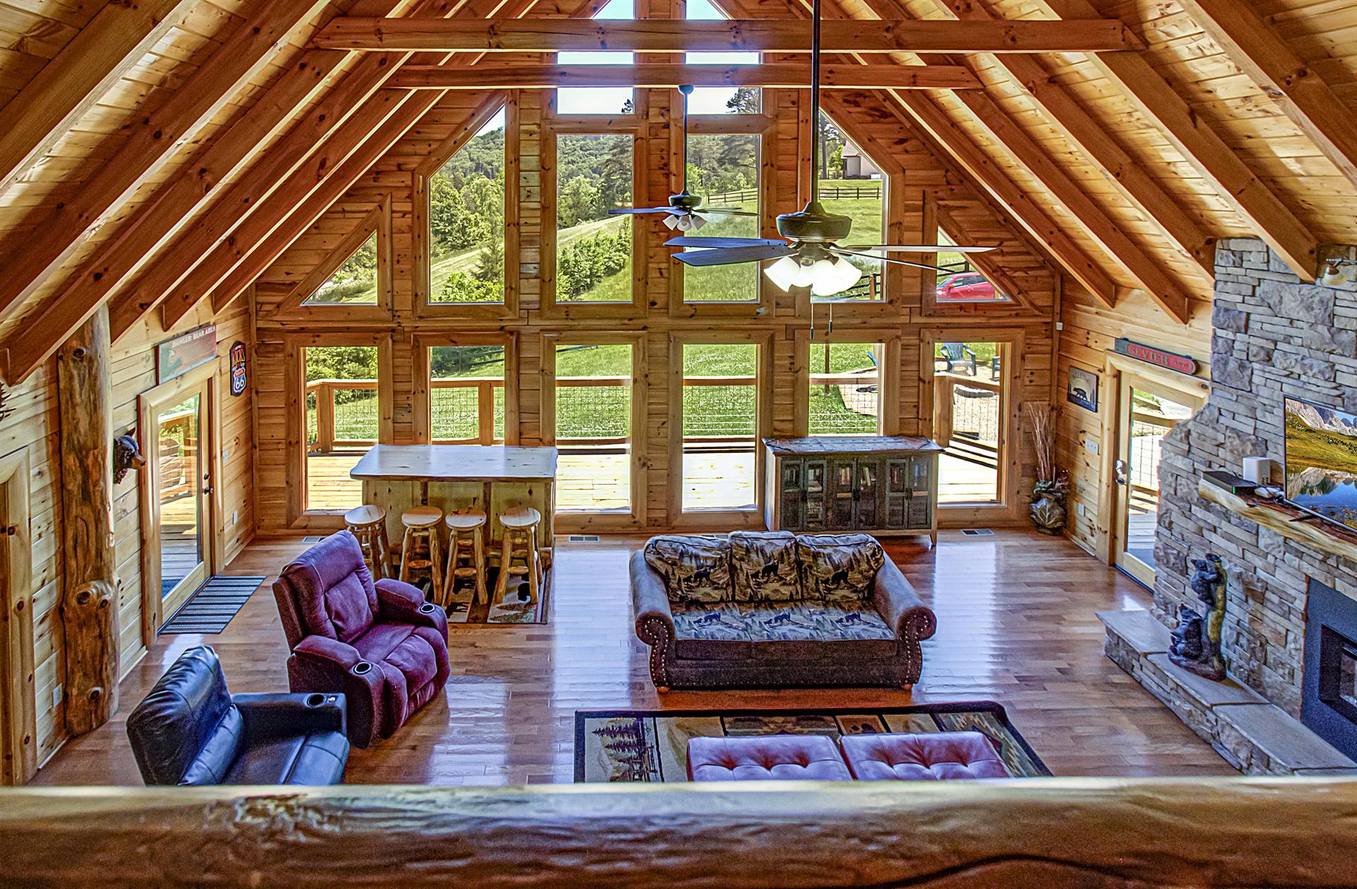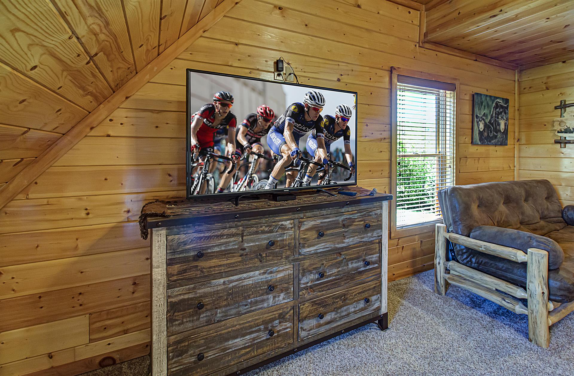 Your Dream vacation starts here with this beautifully decorated, spacious 4 bedroom cabin with all King size Log beds, offering 4 full bathrooms and 2 half bathrooms. Always Dreaming is exactly what you've been dreaming of when you imagine a Smoky Mountain Vacation. Offering a ramp-style entry way for easy access. Oversized for wheelchair accessibility. This luxury cabin is just minutes from Downtown Pigeon Forge and Dollywood. This cabin is furnished with spectacular furniture and all the amenities including HD Cable, High Speed Internet with WIFI. Enjoy the spacious luxury seating in the living area on the main floor with a huge Flat screen TV that sits above a beautiful contemporary indoor fireplace with color changing flames for year-round enjoyment and a sleeper sofa. Features a full kitchen with stainless steel appliances and granite counter tops with an Eat in Bar for extra seating that is adjacent to the Dining Room with a beautiful wood table and chairs. There are also 2 King bedrooms with ensuites on the main floor and a large laundry room with folding table, iron, and ironing board provided. Upstairs you can enjoy the game room equipped with a Pool Table and Bar and for your enjoyment! A futon is located in the game room with a half bath. Two King suites are located on the second floor too, one also has a futon. You may also enjoy the outdoor private covered hot tub and a spacious deck area with Rocking Chairs, a Park Grill located on the concrete outdoor patio area with seating for up to 12 guests, and a fire pit for your enjoyment. Let your Dream Begin!. Must be 25 years old to rent.