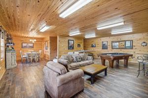 Wood Floors! There's also a wet bar, dining table, large screen TV, Pool Table