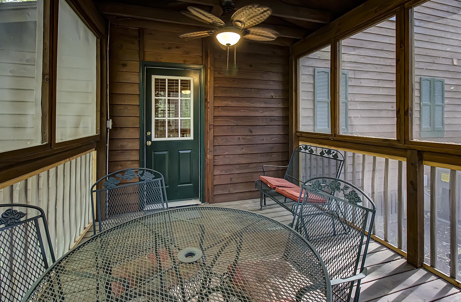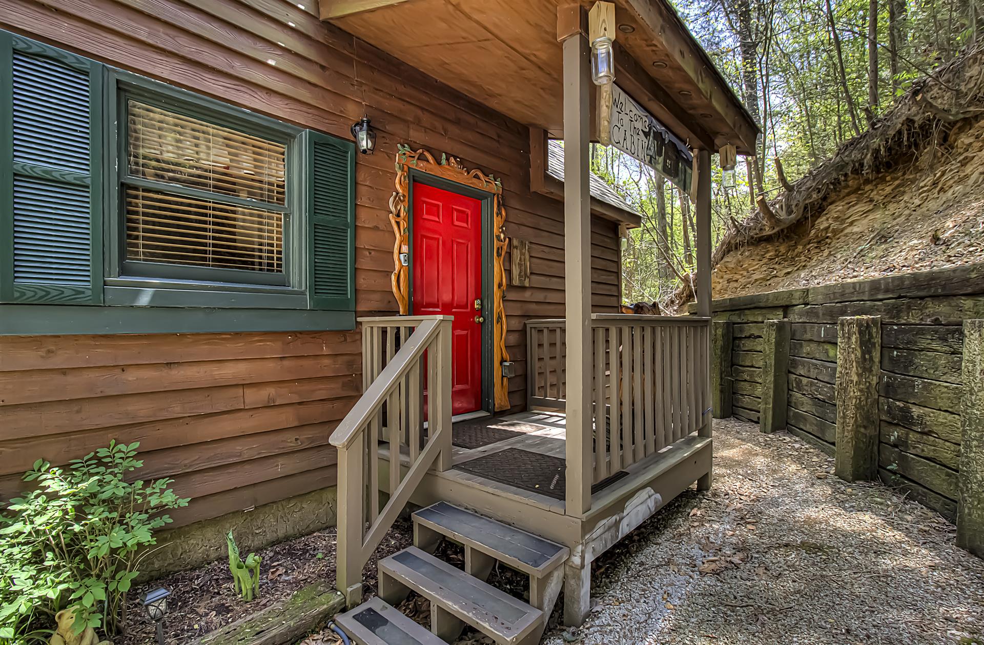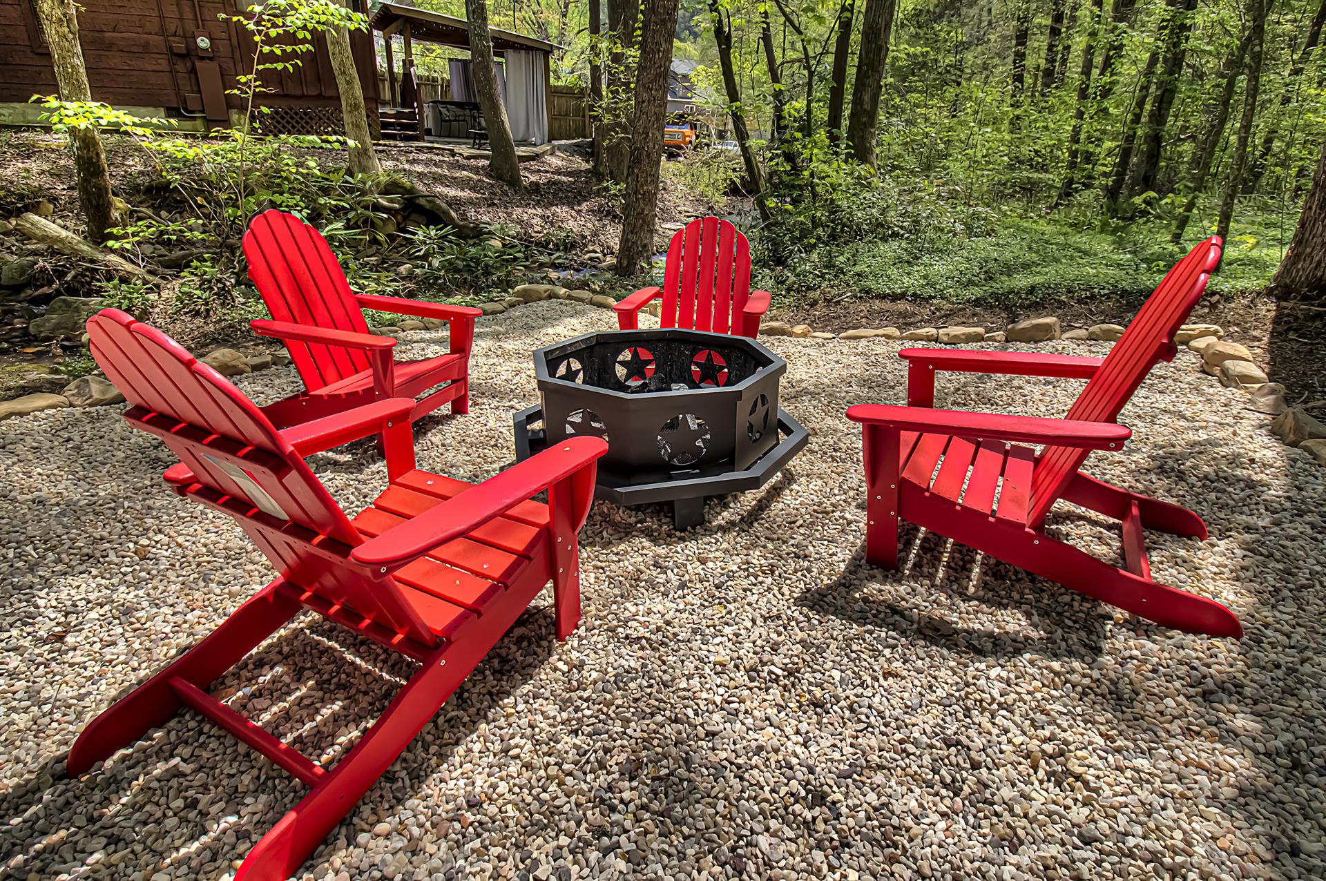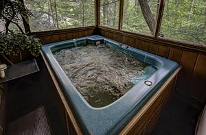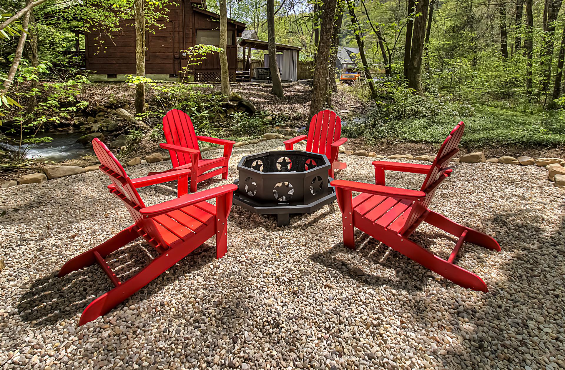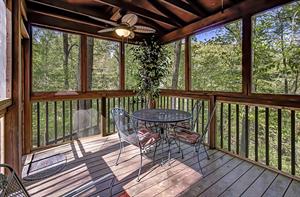When you're ready to vacation in the Great Smokies, Bear Creek Ridge is your cabin! Located off of beautiful Wears Valley in Pigeon Forge, Bear Creek Ridge is a 2 bedroom - 2 bath log cabin in semi-private setting. Along with WIFI, Jacuzzi tub, and pool table. This cute two bedroom 2 bath cabin has it all with an enclosed Hot Tub and comfortable amenities. Beautiful NEW Firepit area to enjoy the relaxing sounds of the mountain brook and watch the stars. You will love sitting outside on the screened in deck in the comfy chairs - or use the stair access to a small creek below - or enjoy the big, bubbling hot tub - just soaking in the sights and sounds of nature surrounding you.