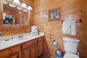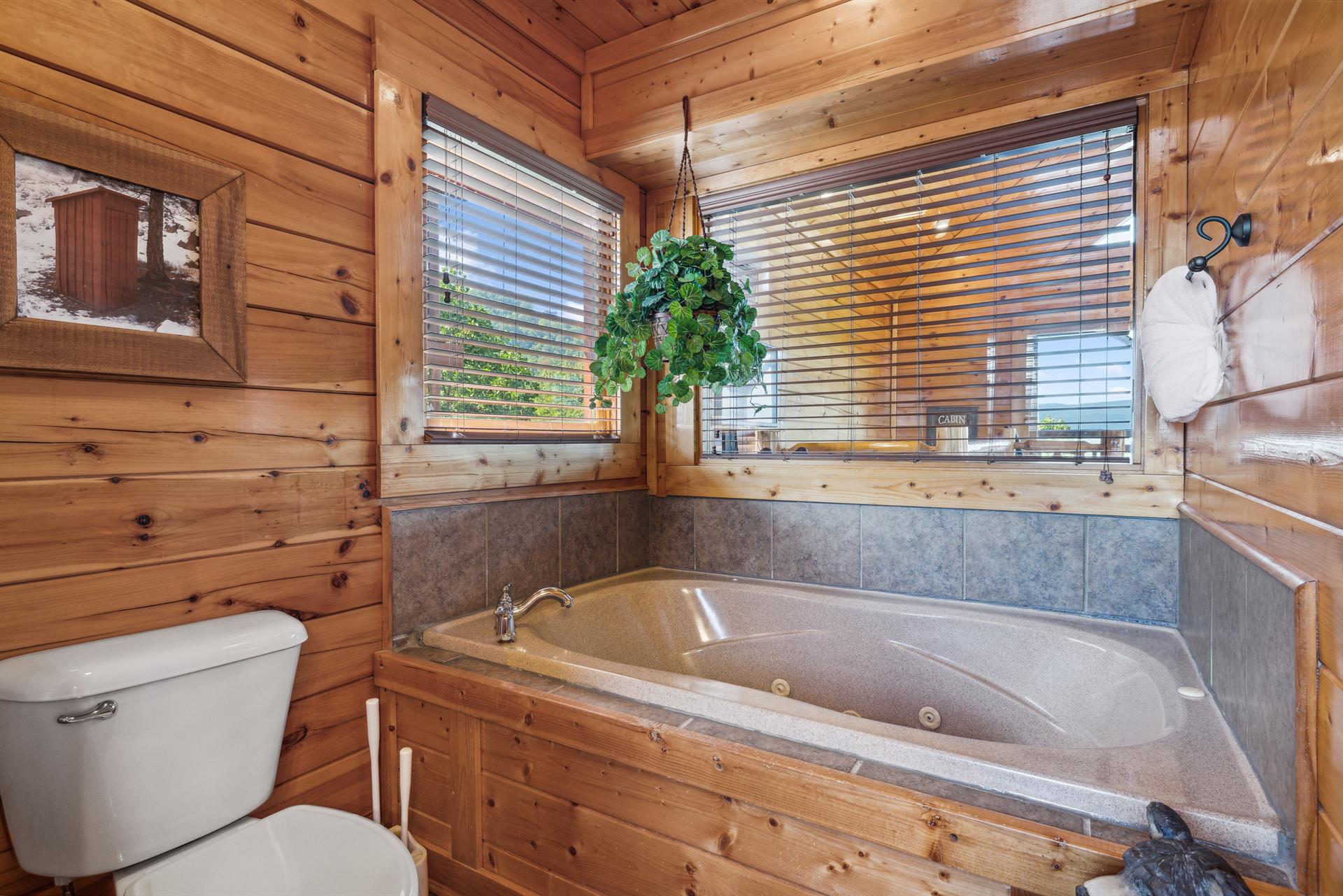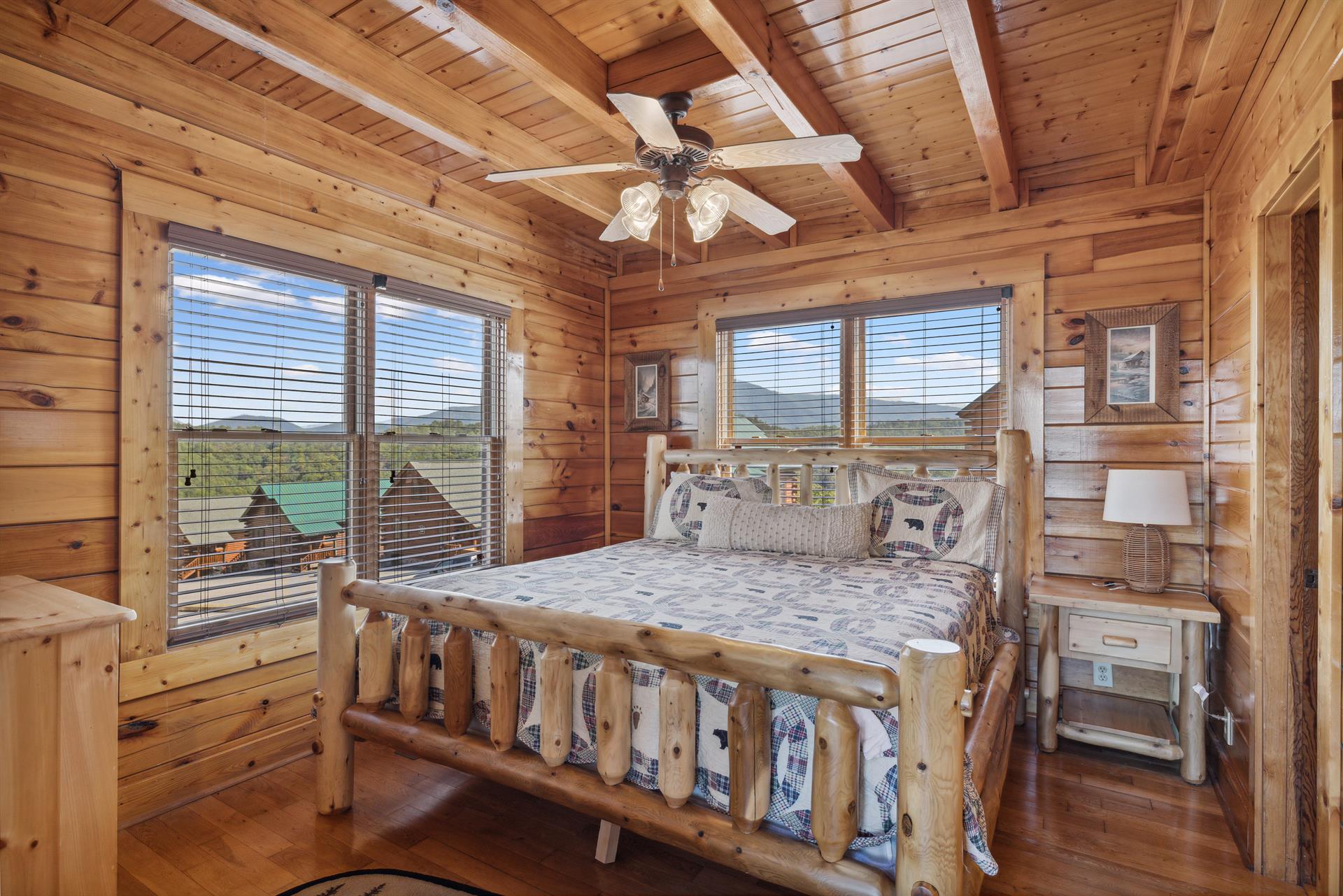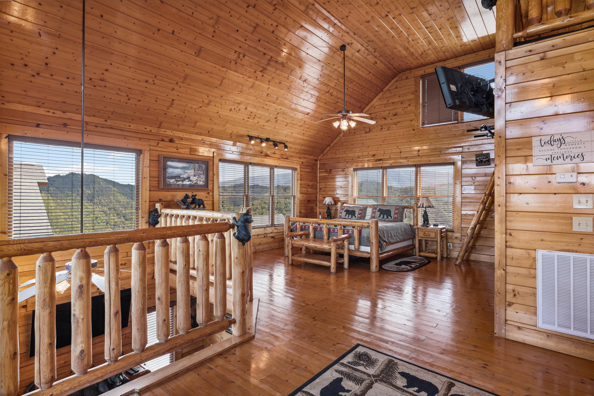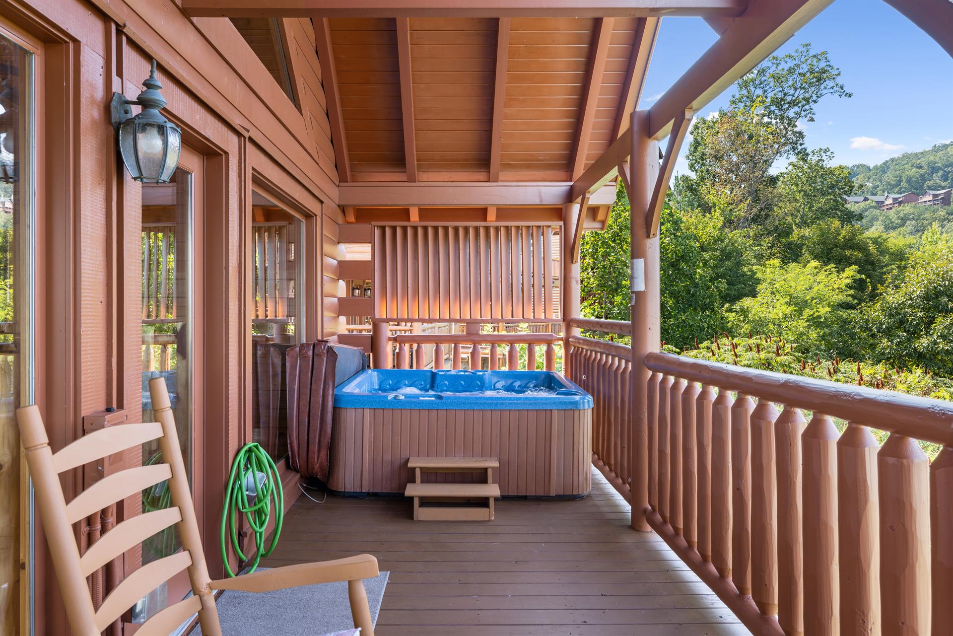 Heaven's Views is an amazing 2-bedroom mountain top cabin in The Preserve Resort that offers the most amazing majestic views around with views from every window in the cabin! The cabin features a bedroom on the main level with an en-suite bath, a great room with plenty of living space and elegant furniture, two sofa sleepers, a dining room and deck access to a huge covered porch! State of the art appliances in the kitchen that will bring out the chef in everyone and offers all the luxuries of home. Upstairs is a 2nd loft bedroom with an en-suite bath, a jetted tub and a ladder to a small sleeping loft for the kids. There is another deck on this level with a hot tub and rocking chairs with awesome views! Your family will enjoy a luxury hot tub with breath taking views of the Great Smoky Mountains. Heaven's Views will truly help you relax and enjoy your vacation with its coziness to make you feel right at home. Relax on the porch rockers or soak your worries away in the hot tub! Reserve Heaven's Views cabin today! The Preserve Resort is one of the top cabin rental resorts in the Smokies! With amazing views from the resort pool and hot tub, enjoy summer fun and a view. This amazing 2 bedroom is priced for 4 people, Each additional person is $12.50 nightly. No pets and no smoking allowed.