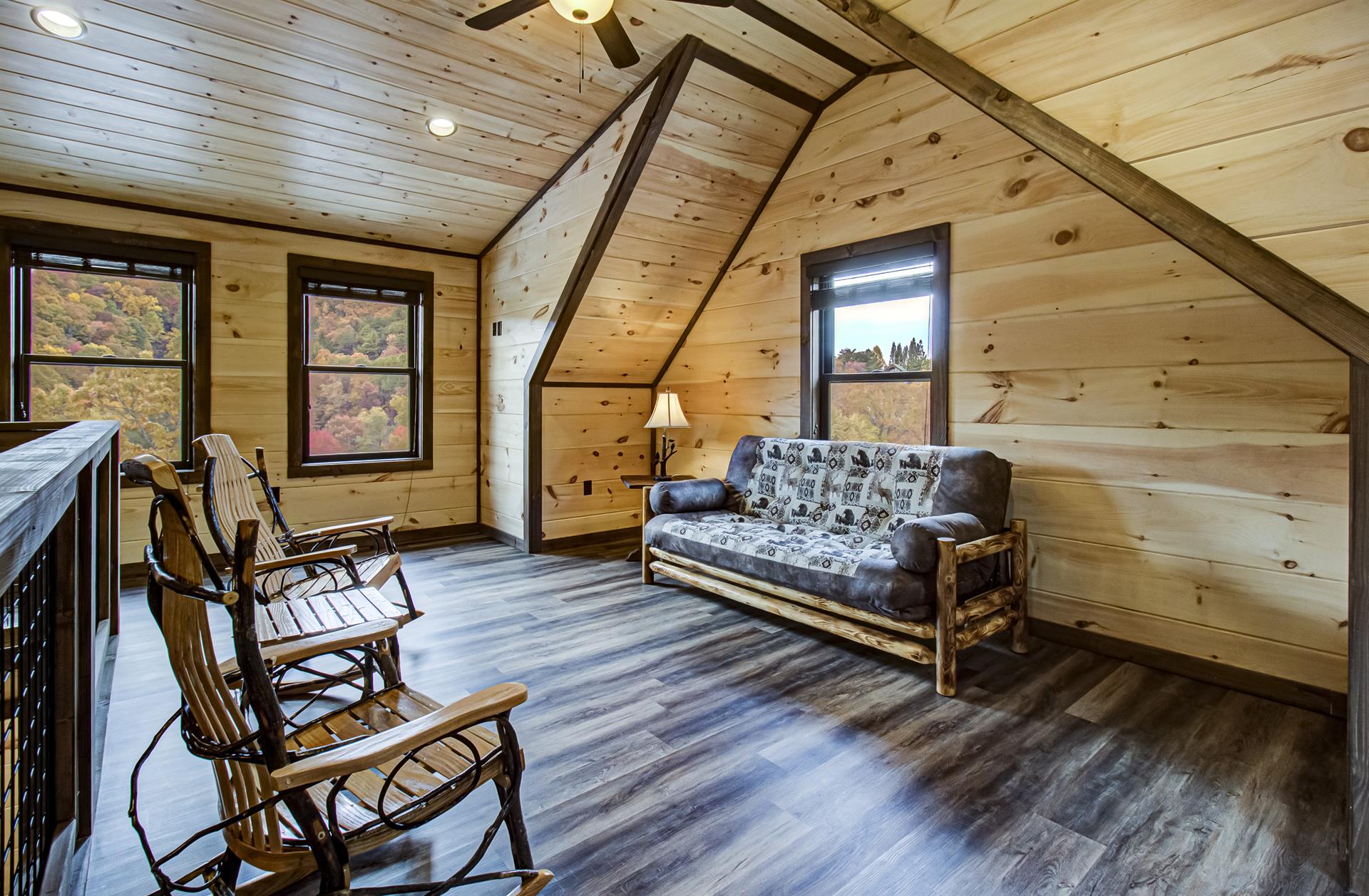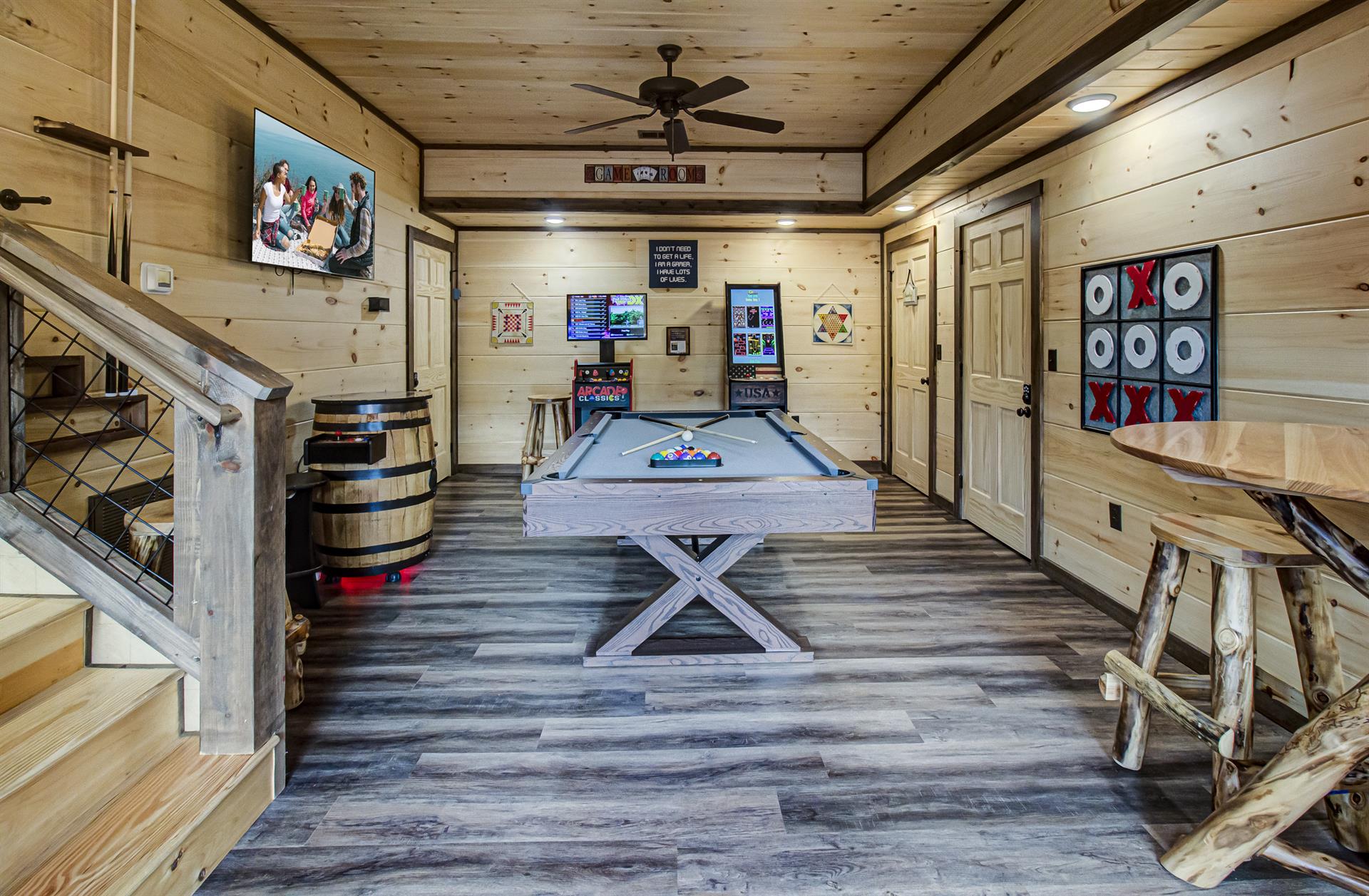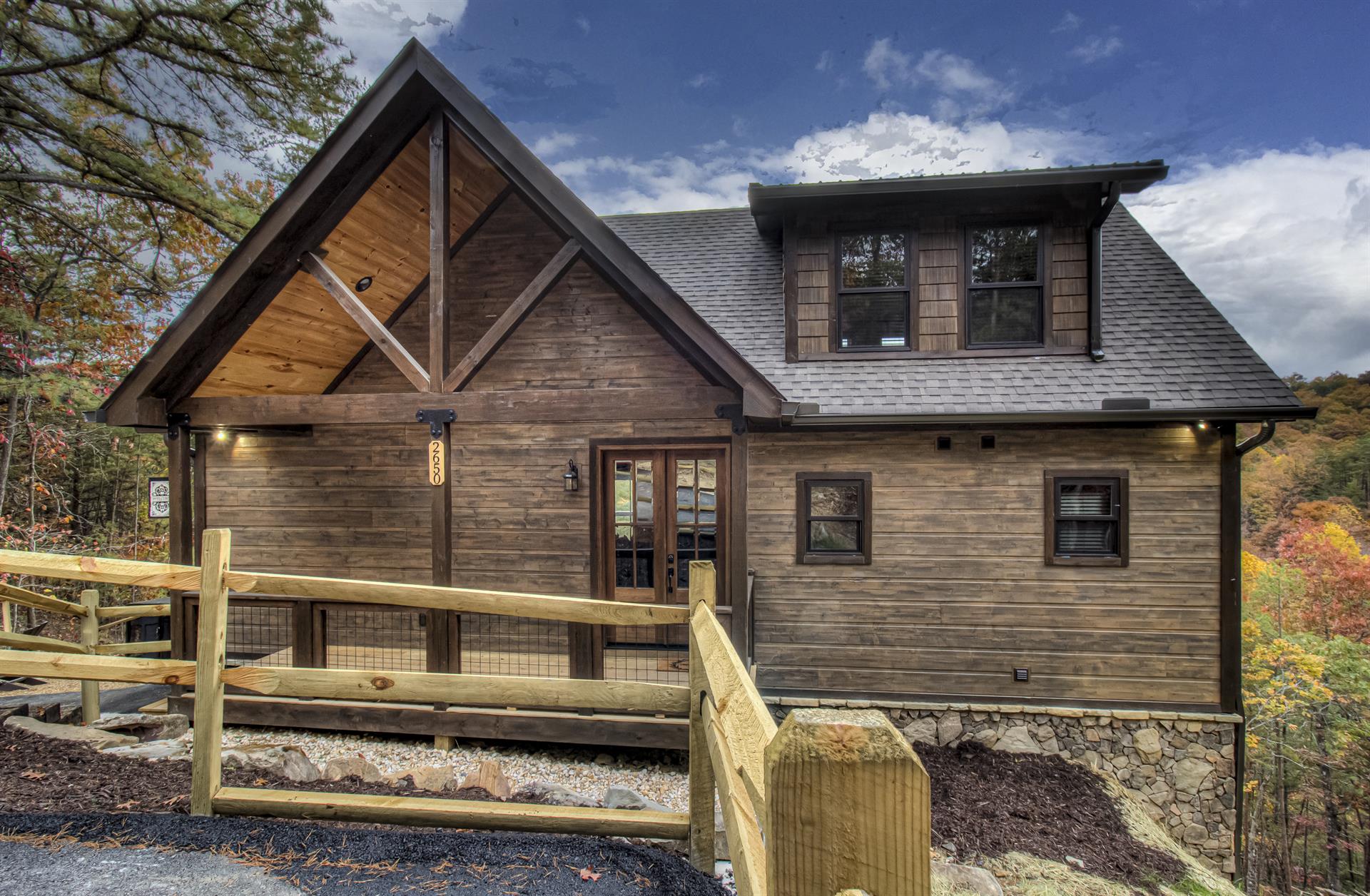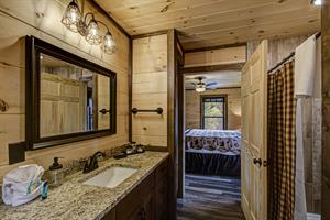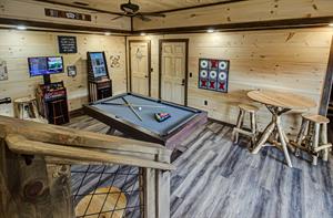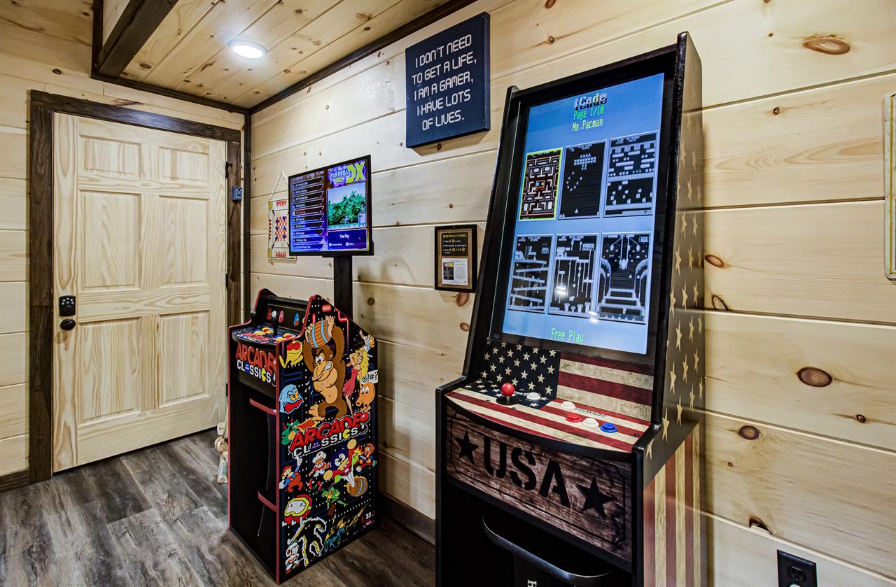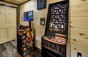 Our Newest Cabin! This amazing mountain cabin has a loft with rockers & log futon, giant game room with multiple arcades, Pool Table, Hot Tub, Wifi internet, ESPN Package, Hulu and Disney Channel! The King master suite is on the main level with a king size bed, sleepersofa in the living area, gas fireplace, custom kitchen with stainless appliances, private covered hot tub, parkstyle grill, professionally furnished log cabin, and so much more to enjoy the perfect family vacation in the Smokies! Reserve our newest cabin now for your family. One of the few BRAND-NEW log cabins offered in the Pigeon Forge area! This cabin has plenty of parking, located on one acre, and has sleeping area on 3 different levels for plenty of space for your travel group! You'll love "Honey Bear Hill" so book now!