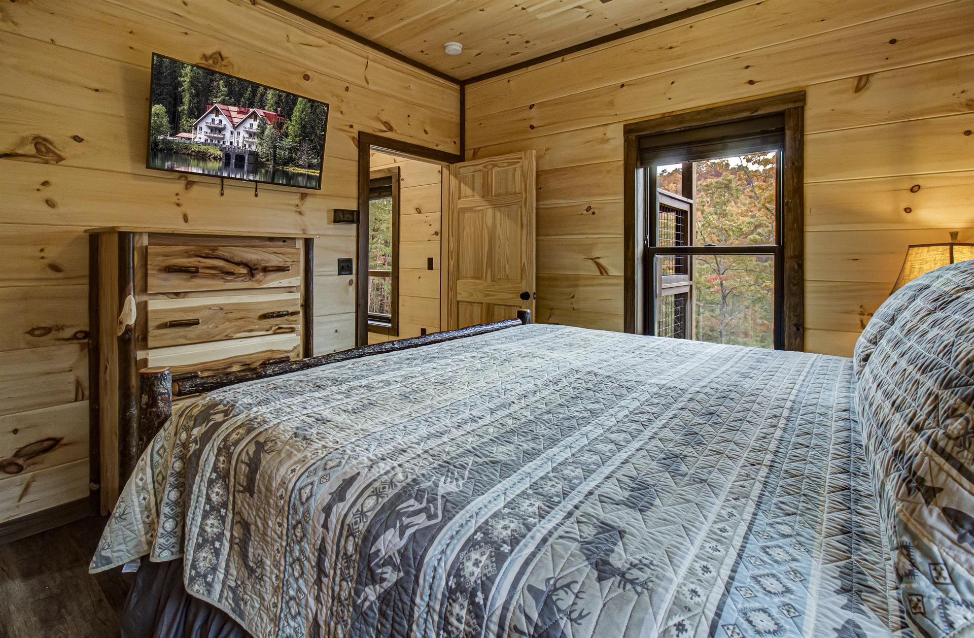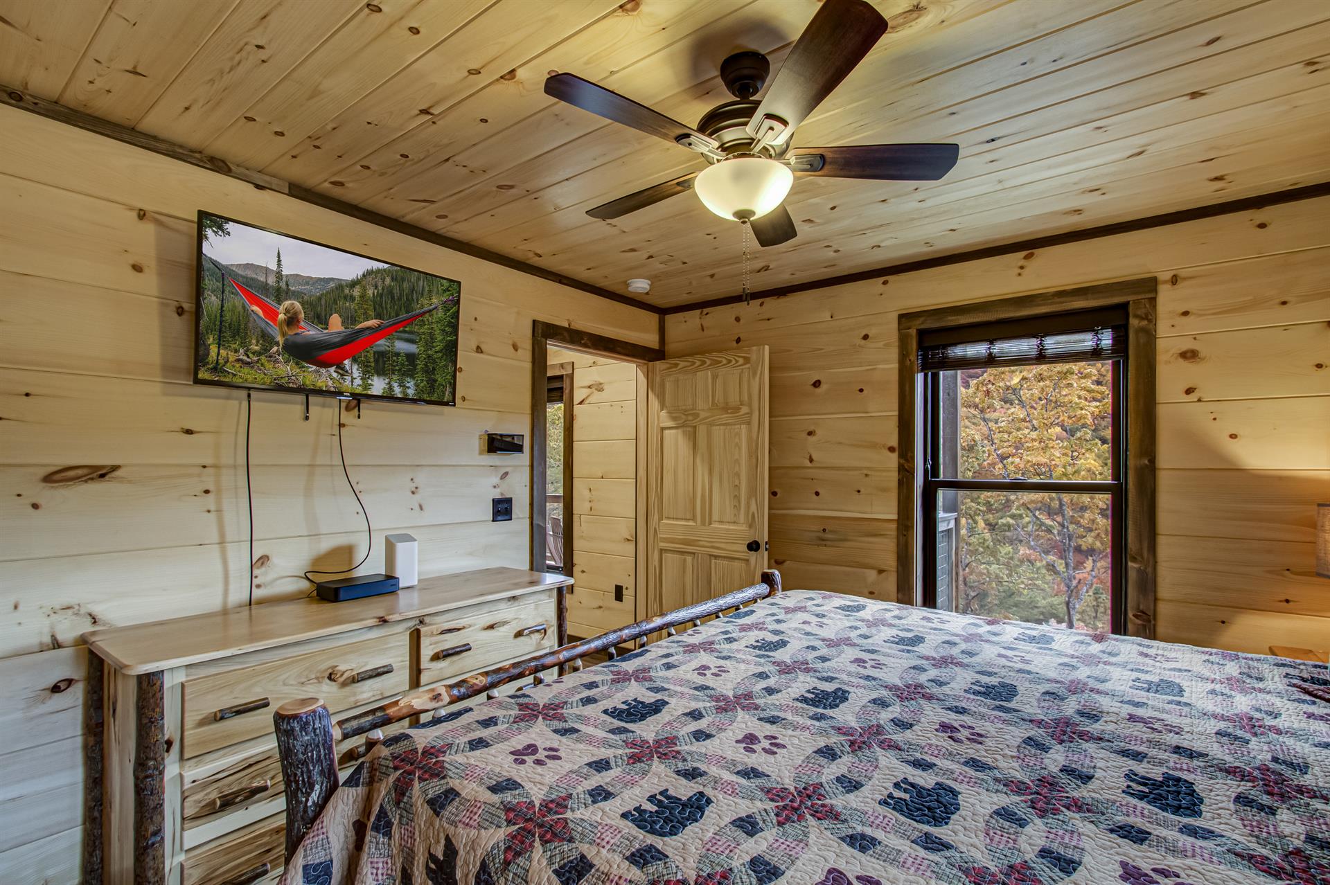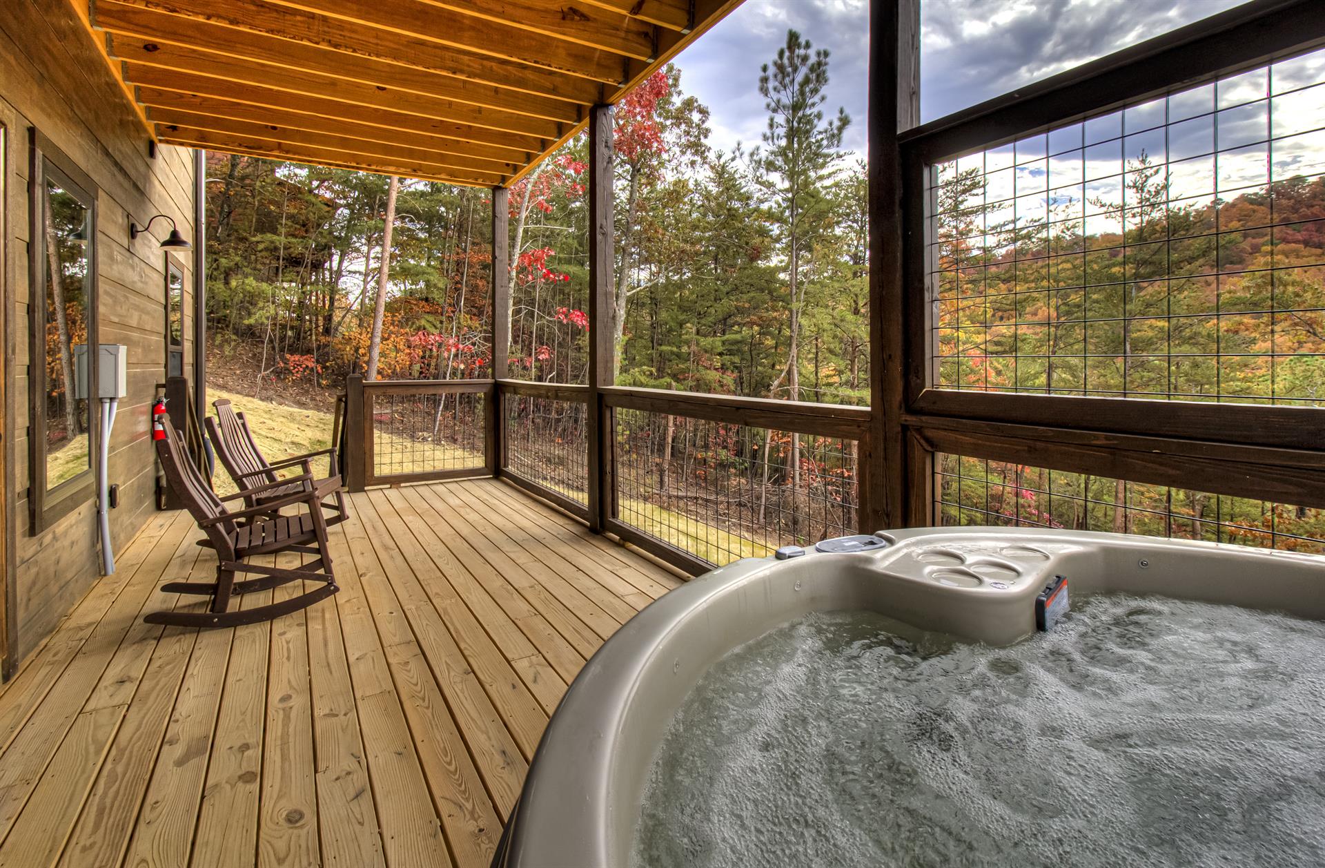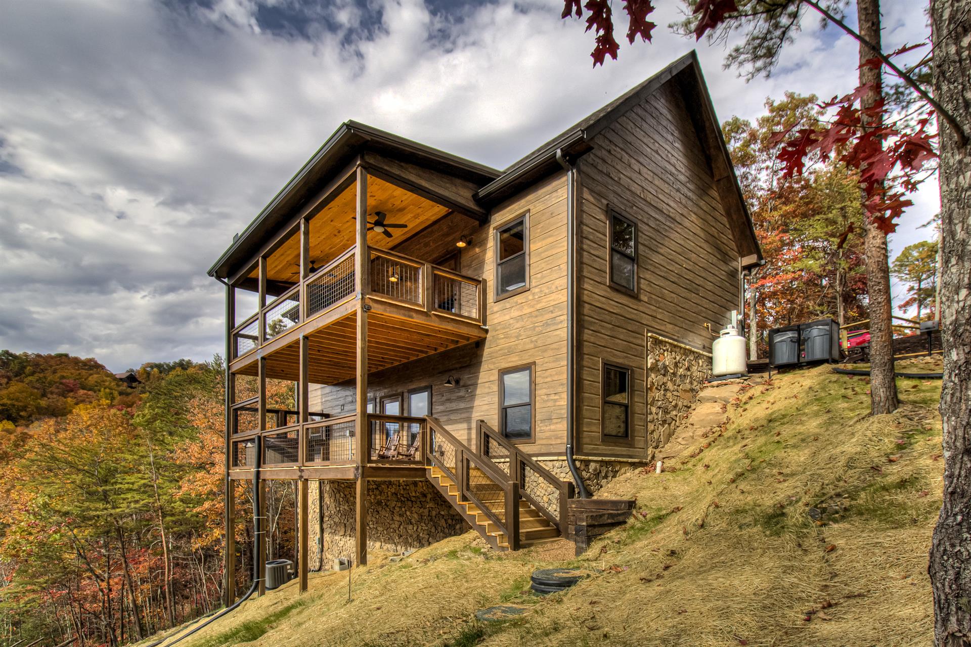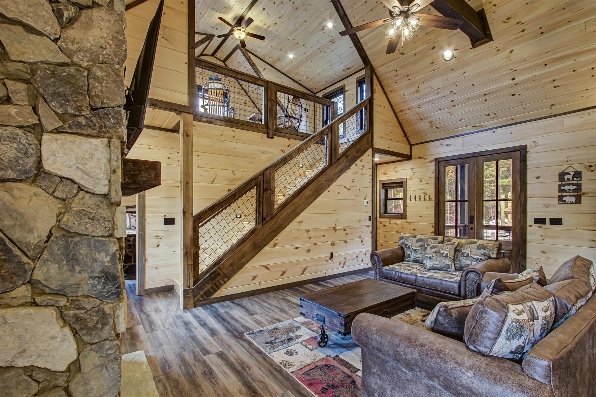 Our Newest Cabin! This amazing mountain cabin has a loft with rockers & log futon, giant game room with multiple arcades, Pool Table, Hot Tub, Wifi internet, ESPN Package, Hulu and Disney Channel! The King master suite is on the main level with a king size bed, sleepersofa in the living area, gas fireplace, custom kitchen with stainless appliances, private covered hot tub, parkstyle grill, professionally furnished log cabin, and so much more to enjoy the perfect family vacation in the Smokies! Reserve our newest cabin now for your family. One of the few BRAND-NEW log cabins offered in the Pigeon Forge area! This cabin has plenty of parking, located on one acre, and has sleeping area on 3 different levels for plenty of space for your travel group! You'll love "Honey Bear Hill" so book now!