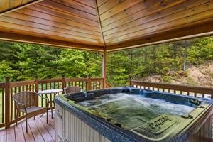 In addition to all of these wonderful features, the cabin also has a covered hot tub on the wrap-around porch, where you can relax and take in the serene mountain surroundings. Smoking is NOT allowed at this location. The prices include six people, with each additional person charged at a nightly rate of only $12.50. Book your stay at Mountain Music in advance and create unforgettable memories with your loved ones in this beautiful log cabin!