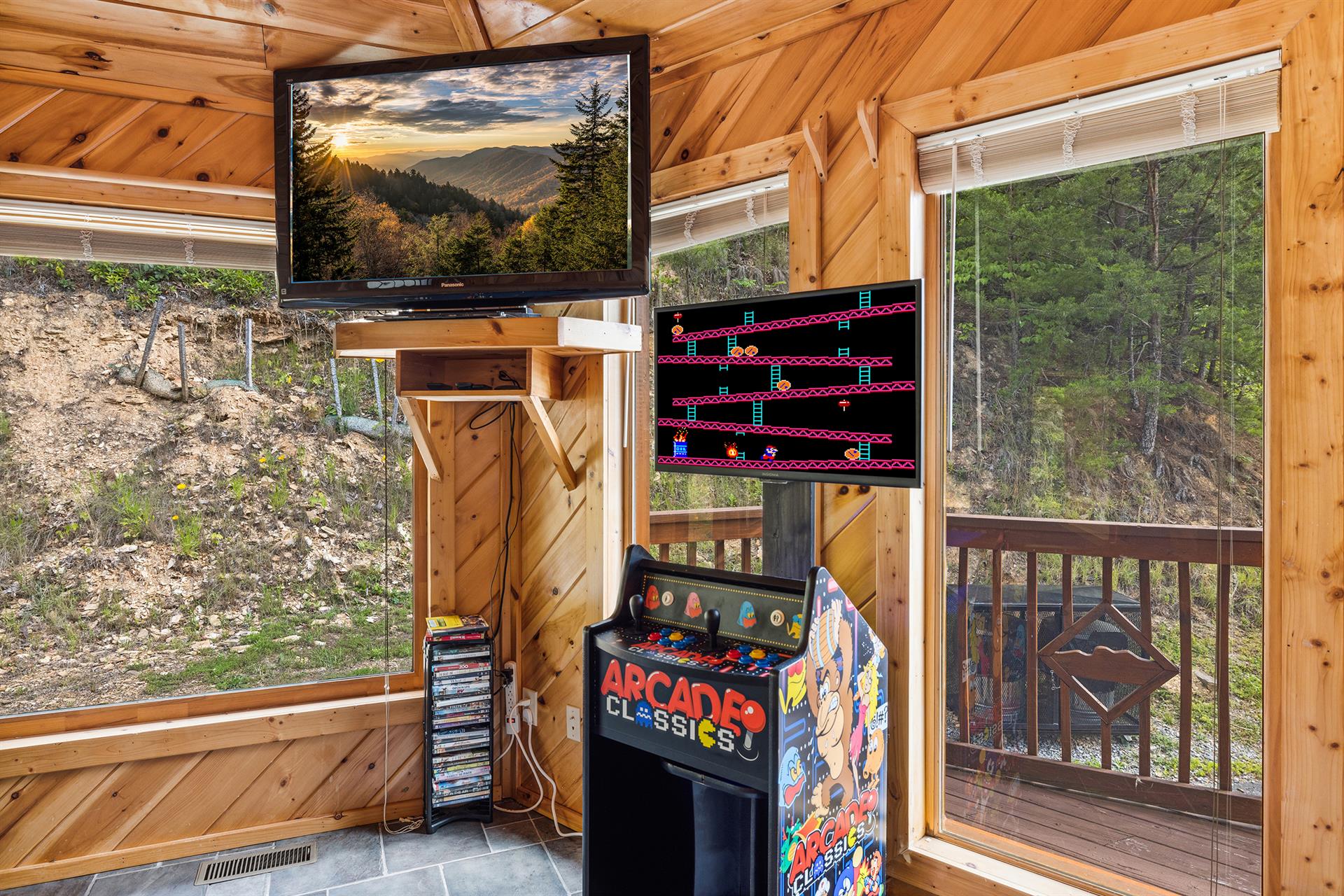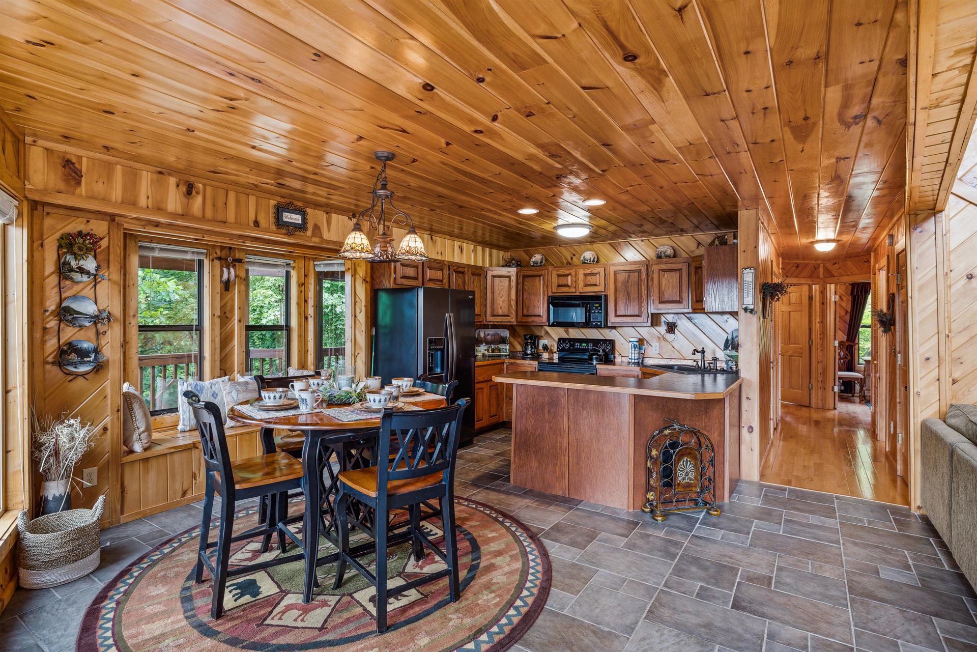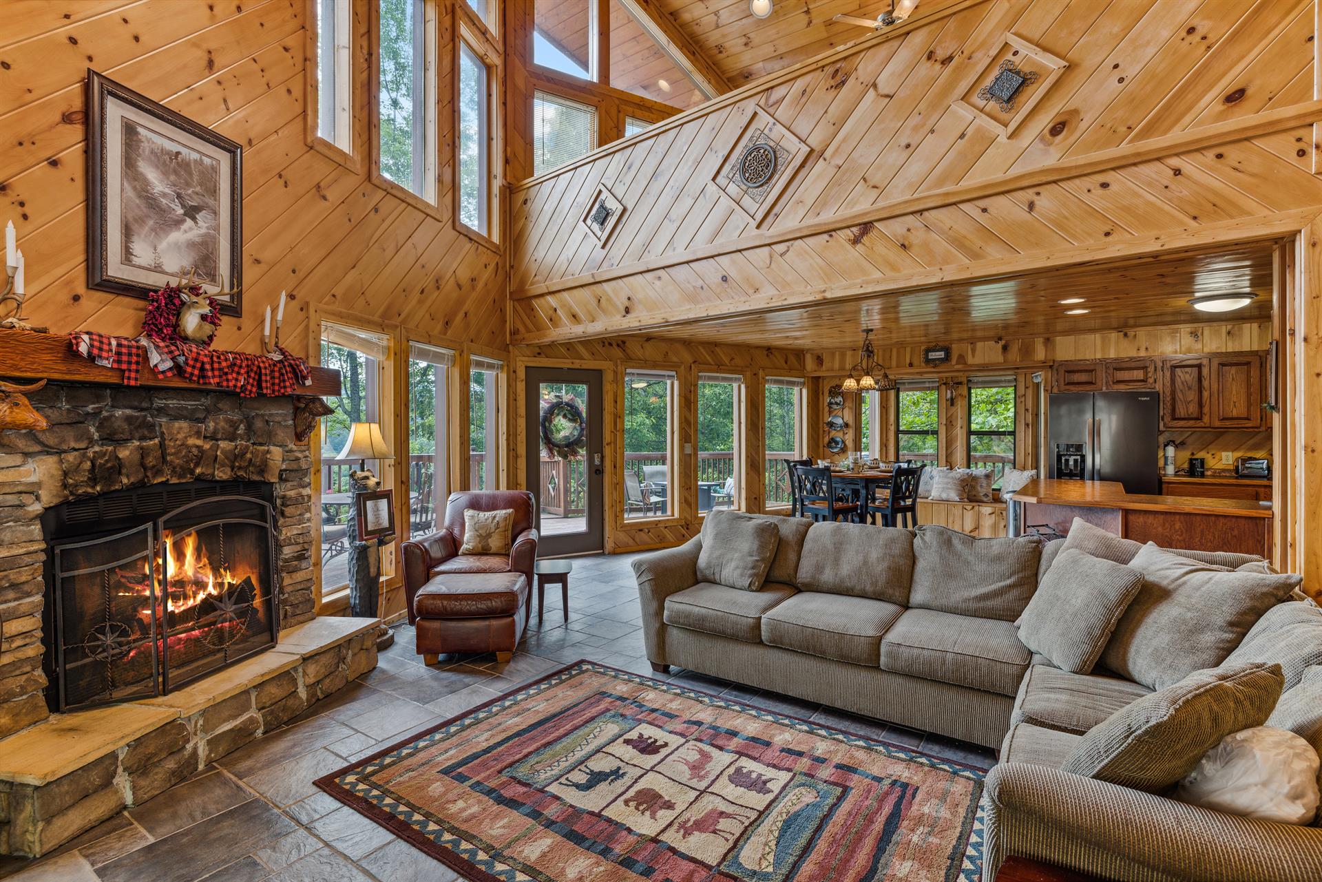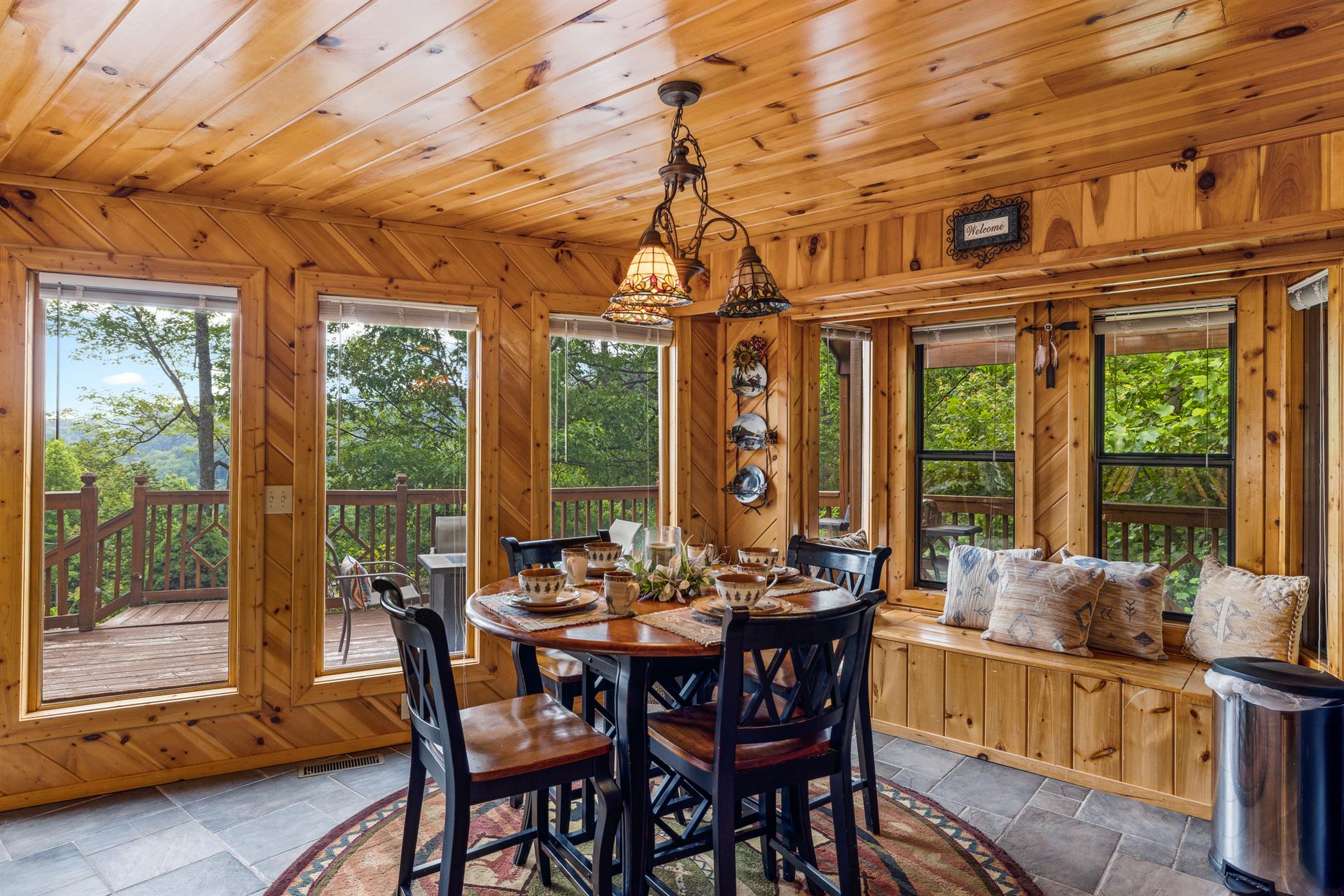 Mountain Music is a luxurious and elegantly decorated log cabin located in the Smoky Mountains. This stunning cabin features three spacious bedrooms, each with its own full in-suite bathroom, perfect for accommodating families and groups of friends. The wrap-around porches, cathedral ceilings, and a beautiful pool table sun-room with a huge flat screen TV provide ample space for relaxation and entertainment.